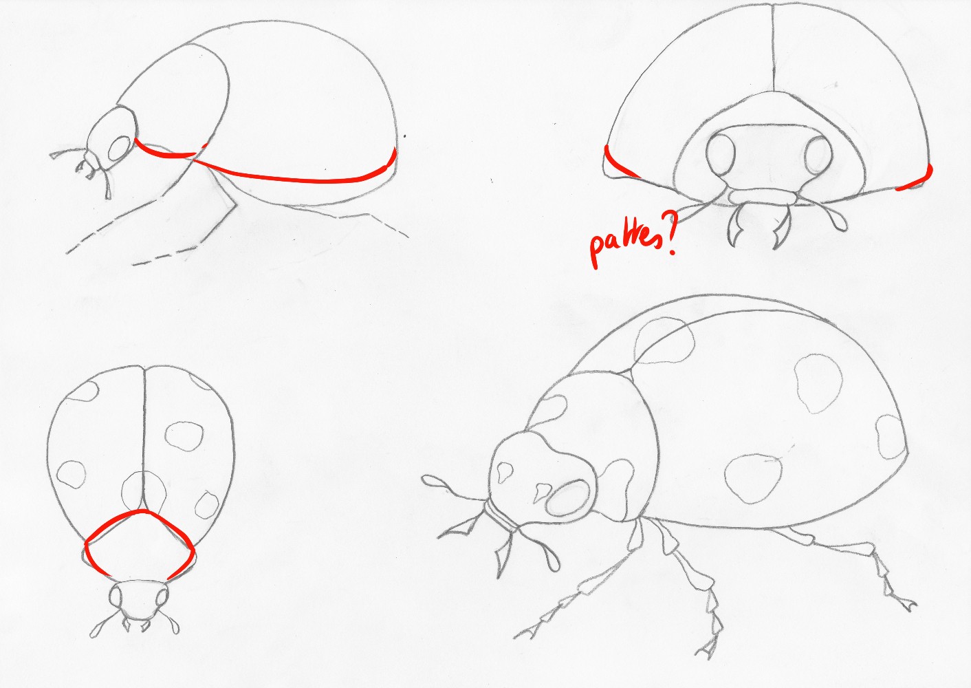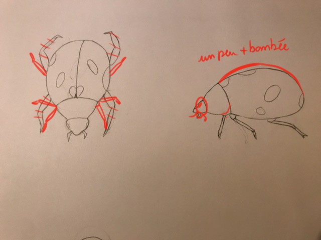 PAs facile de dessiner la coccinelle. mais voila mes essaies .