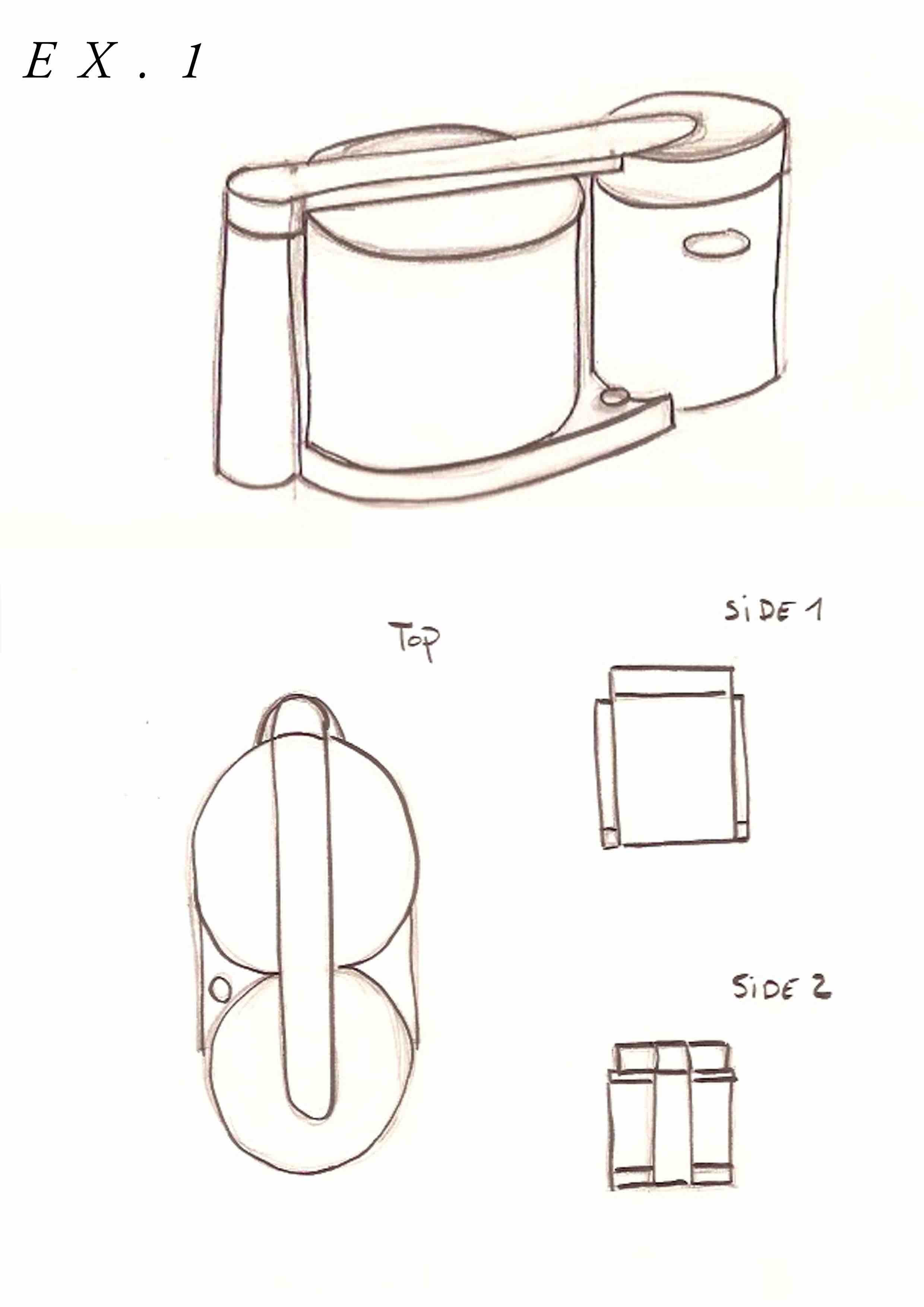Atadé el resultado de mi trabajo en el Exreado 2. Habiendo olvidado la vista desde el frente, lo agregué sin mantener las proporciones con las otras vistas. No he coloreado los elementos oscuros para evitar demasiadas partes negras en el dibujo: consideré que este no era el propósito del ejercicio. Gracias, nos vemos pronto.