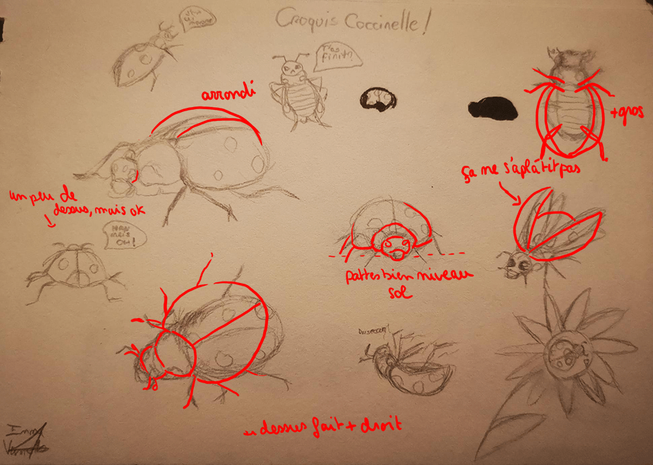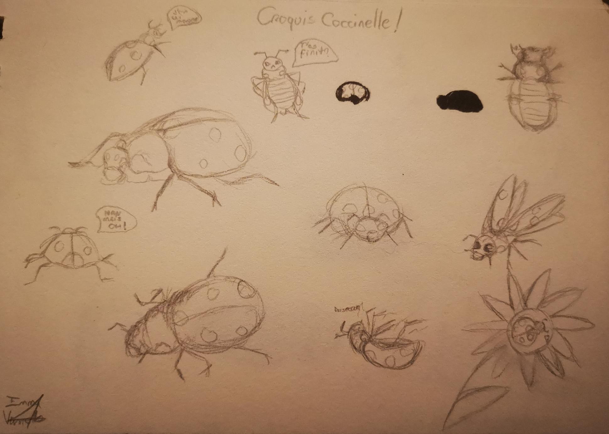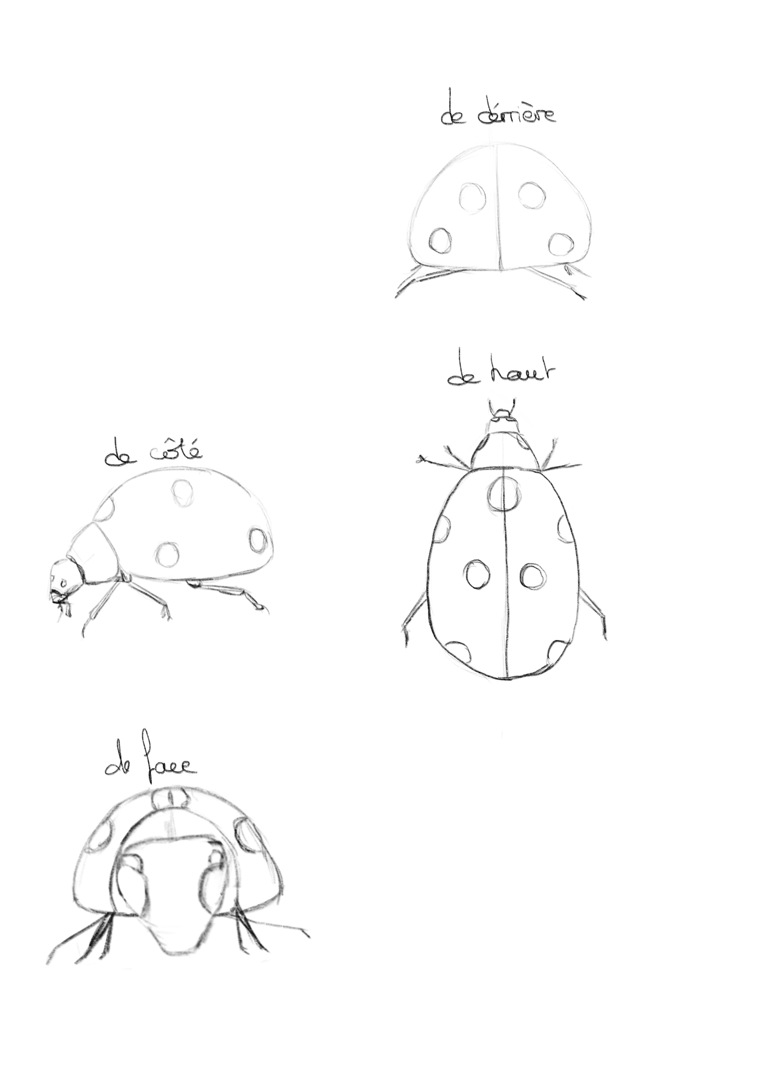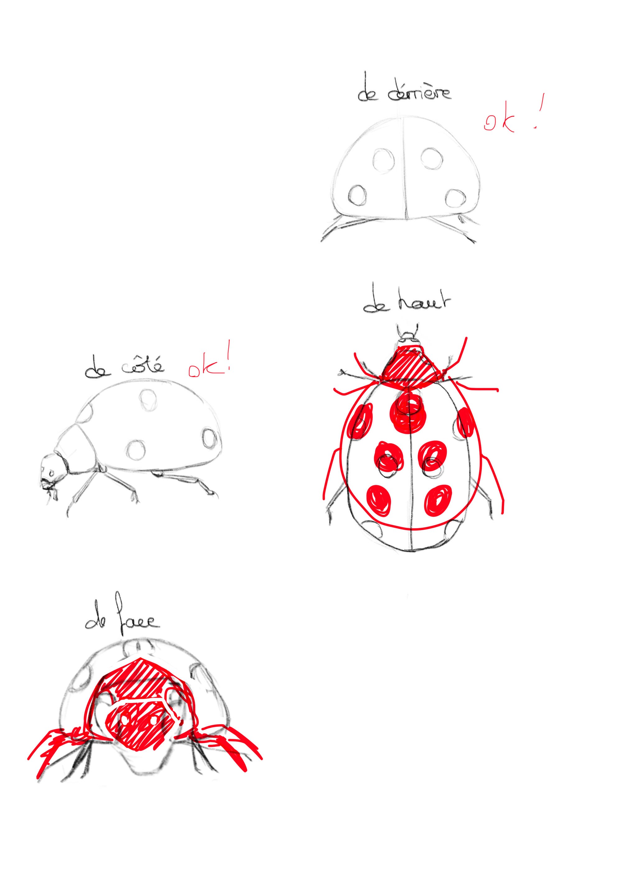 Voilà mes essais sur la coccinelle, pas facile facile! merci d'avance de la correction!