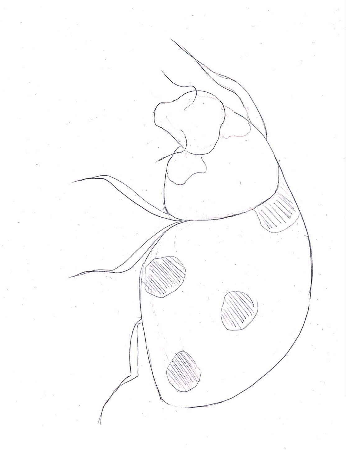 Voici ma coccinelle, j'ai essayé de faire le moins de trait mais c'est pas encore ça.