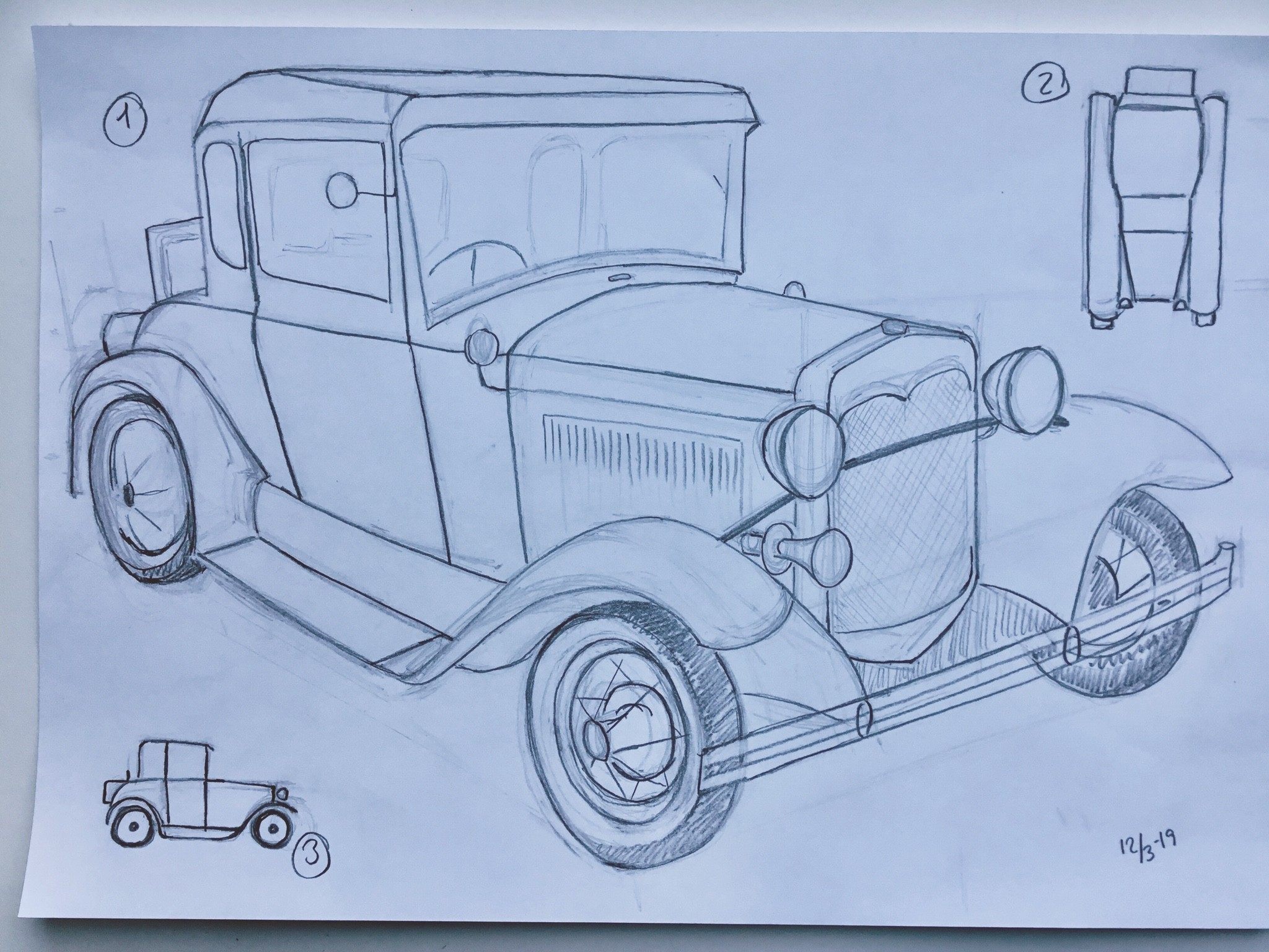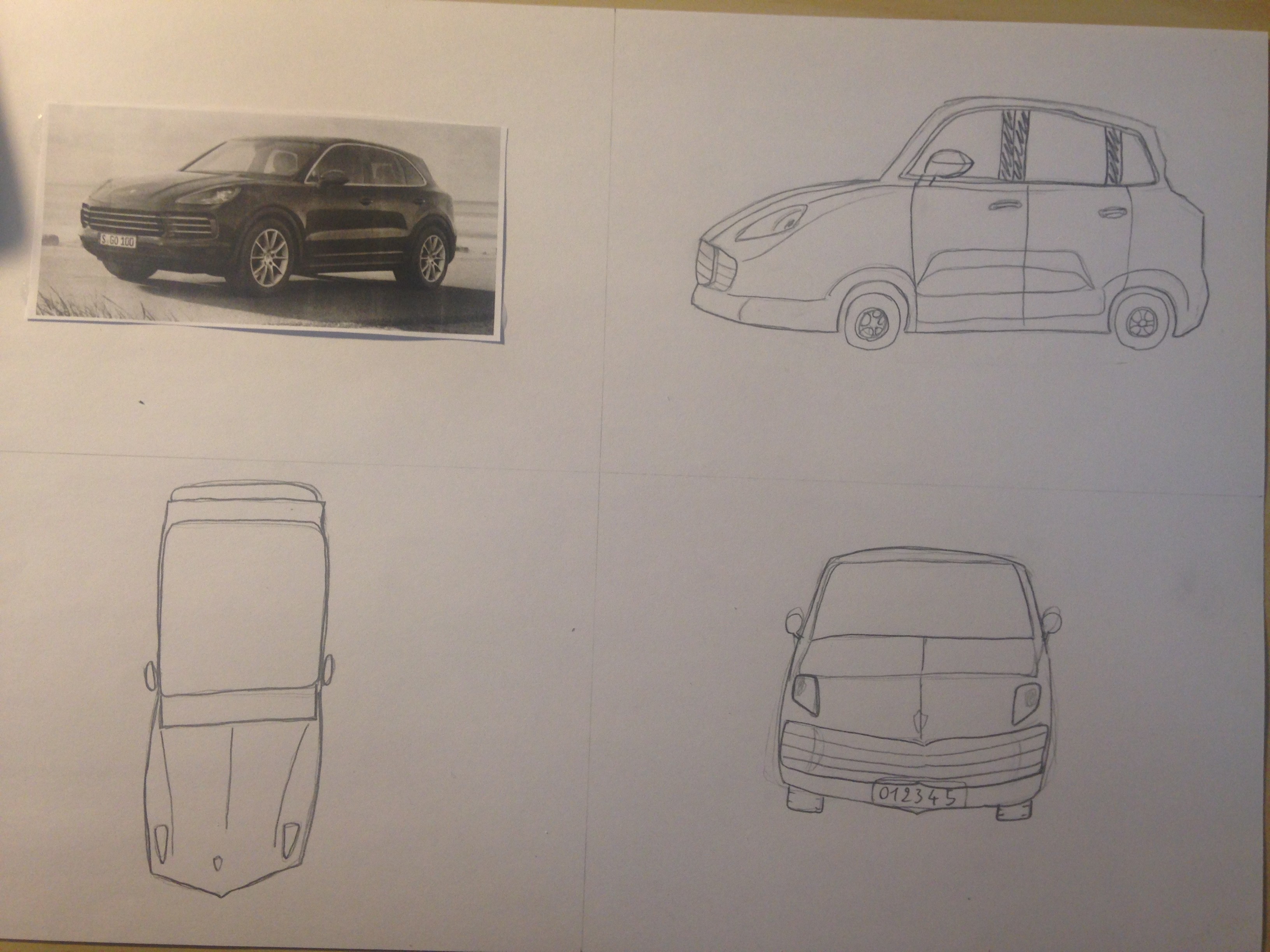Bonjour voici ma planche a dessin pour la voiture moi je crois que cest de dessiner touts les angles que jai de la difficulté je n’arrive pas tjrs a visualiser de face de côté quoi en penses tu merci a toi jessaie je débute comme on dit.
