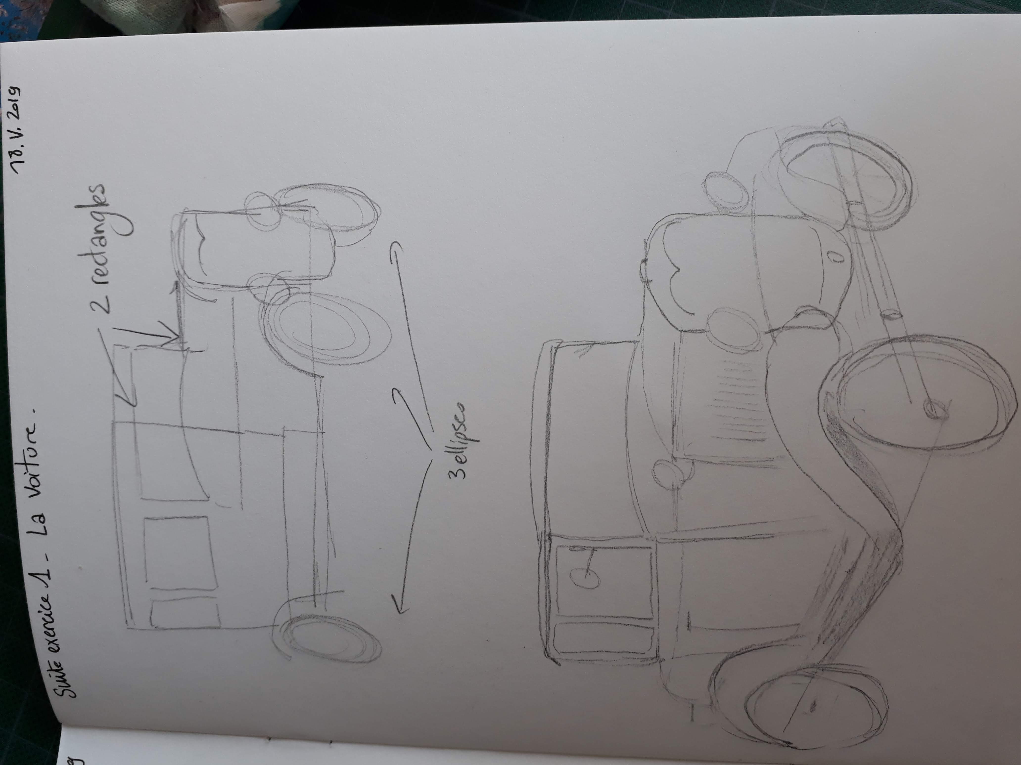 Al principio, el auto que doy en exo asusta a todos, pero en realidad no es tan complejo como descompuesto, porque sus grandes volúmenes parecen "anidados" el uno en el otro. Con autos más modernos, todo está en curvas y fluidez ... ¡difícil de descomponer e identificar grandes volúmenes e grandes formas!