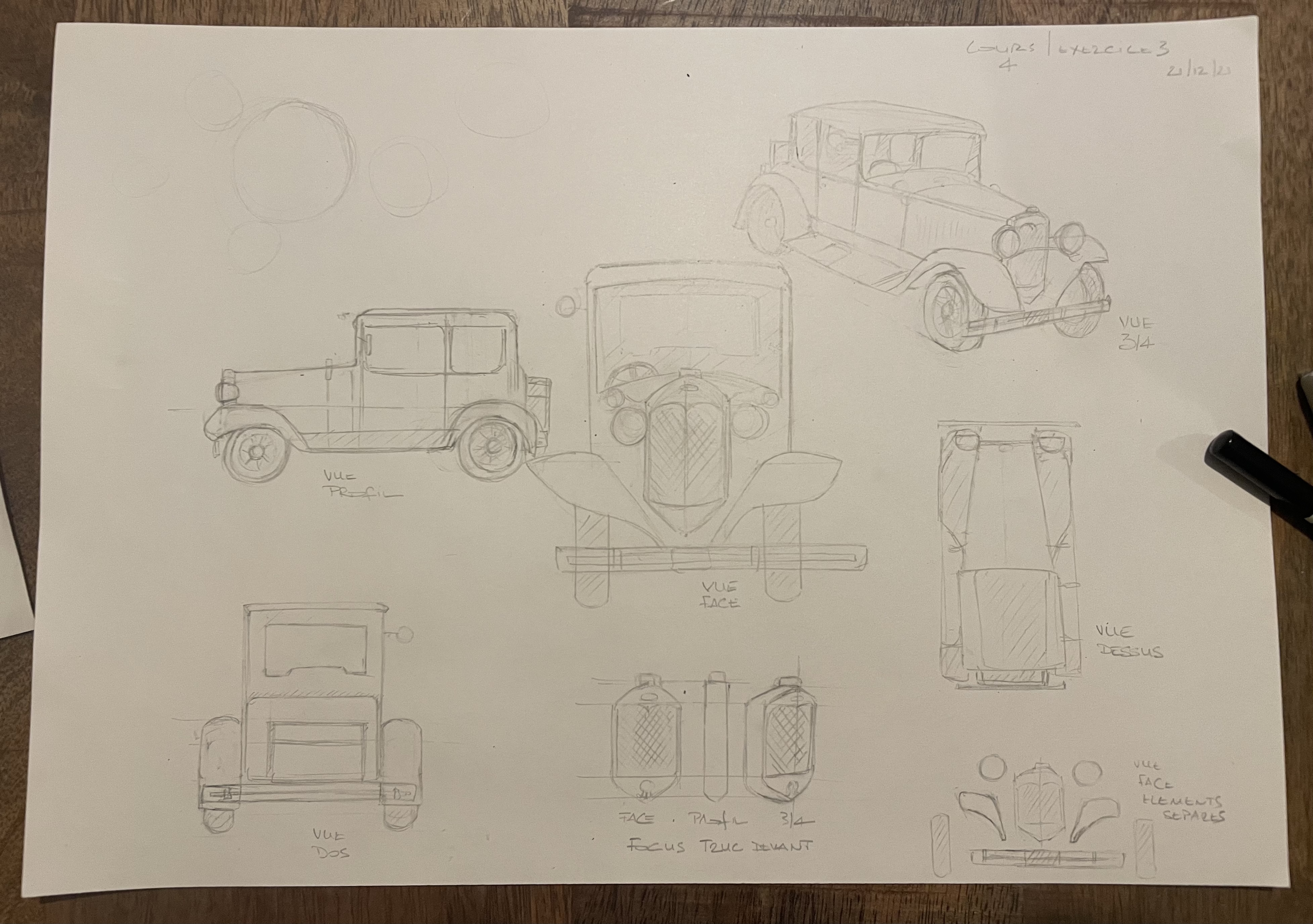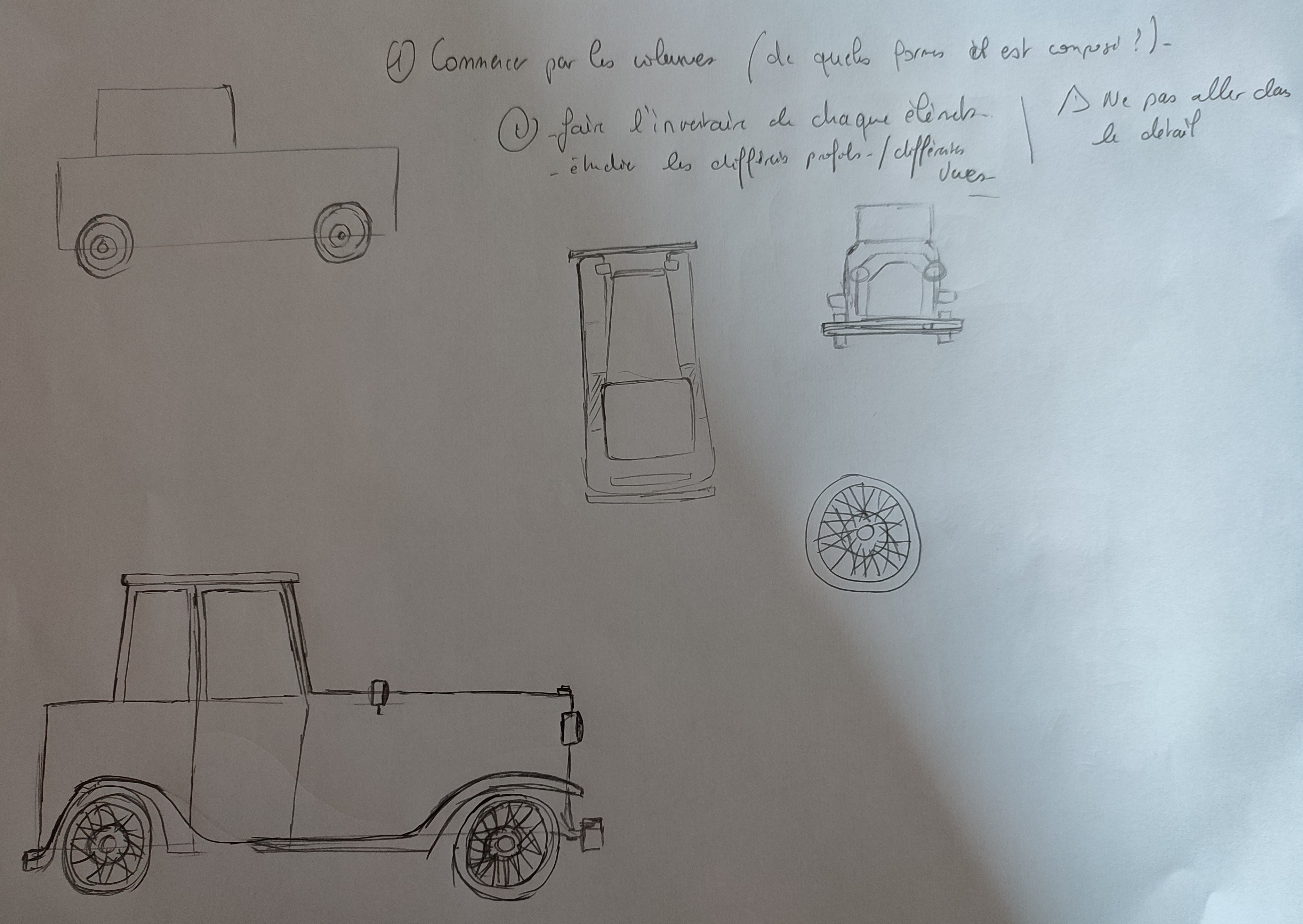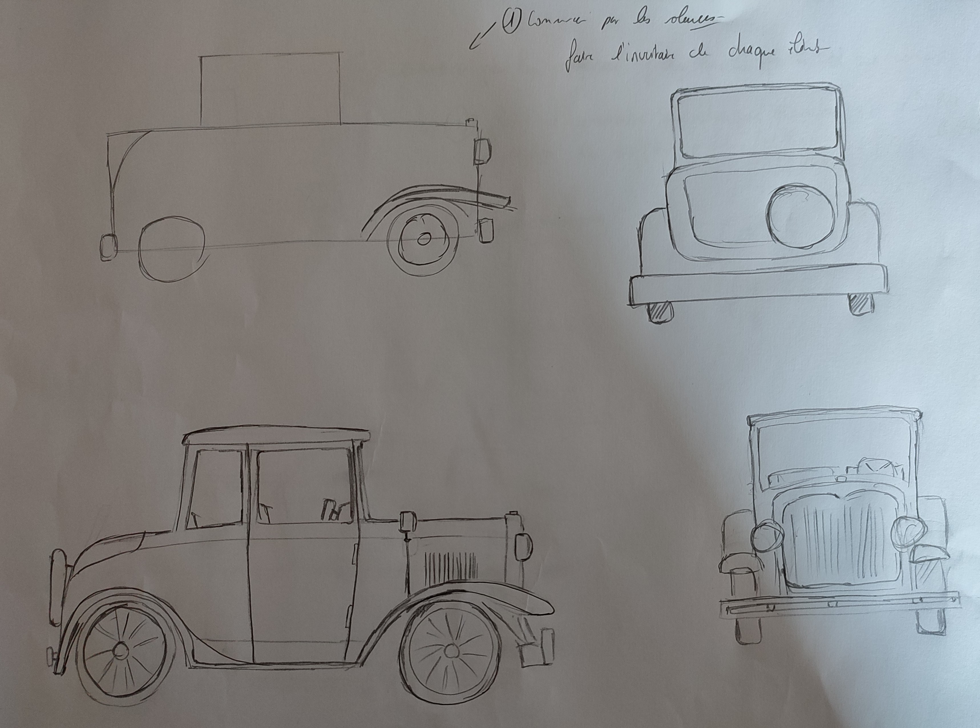 voici les esquisses pour l'exercice d'observation de la voiture !