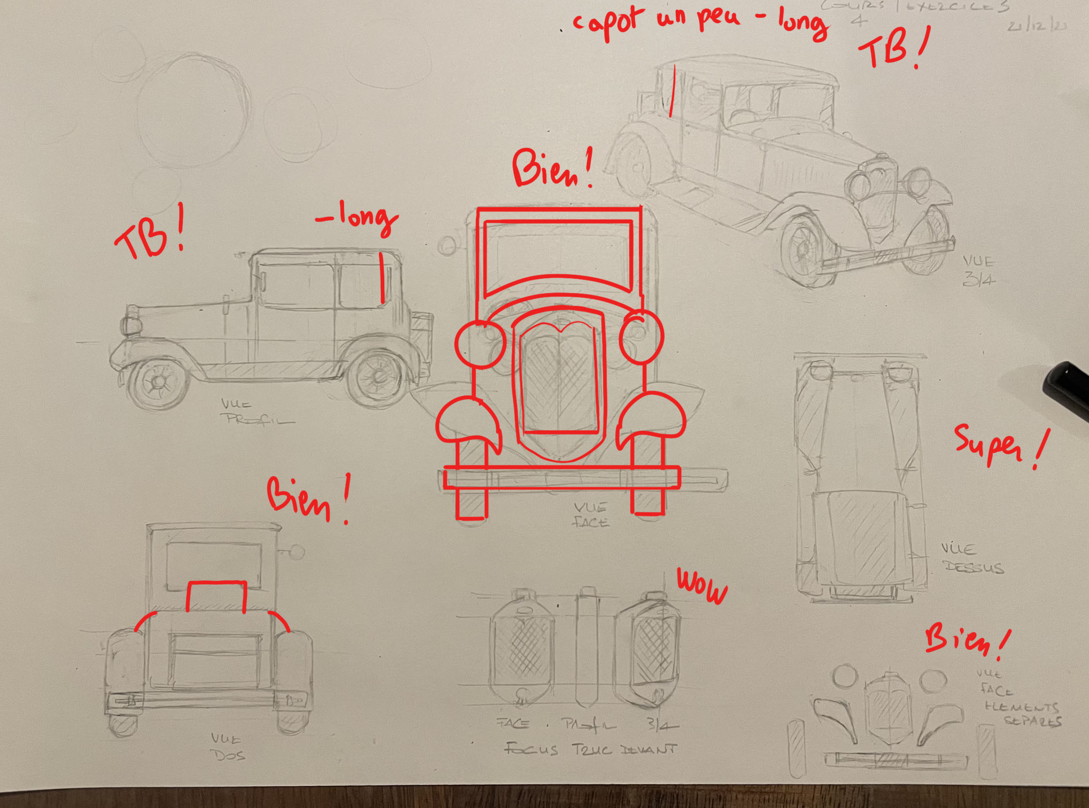 Voici mon premier travail autour de la voiture et ma correction suit, mais sans les détails par faute de temps.