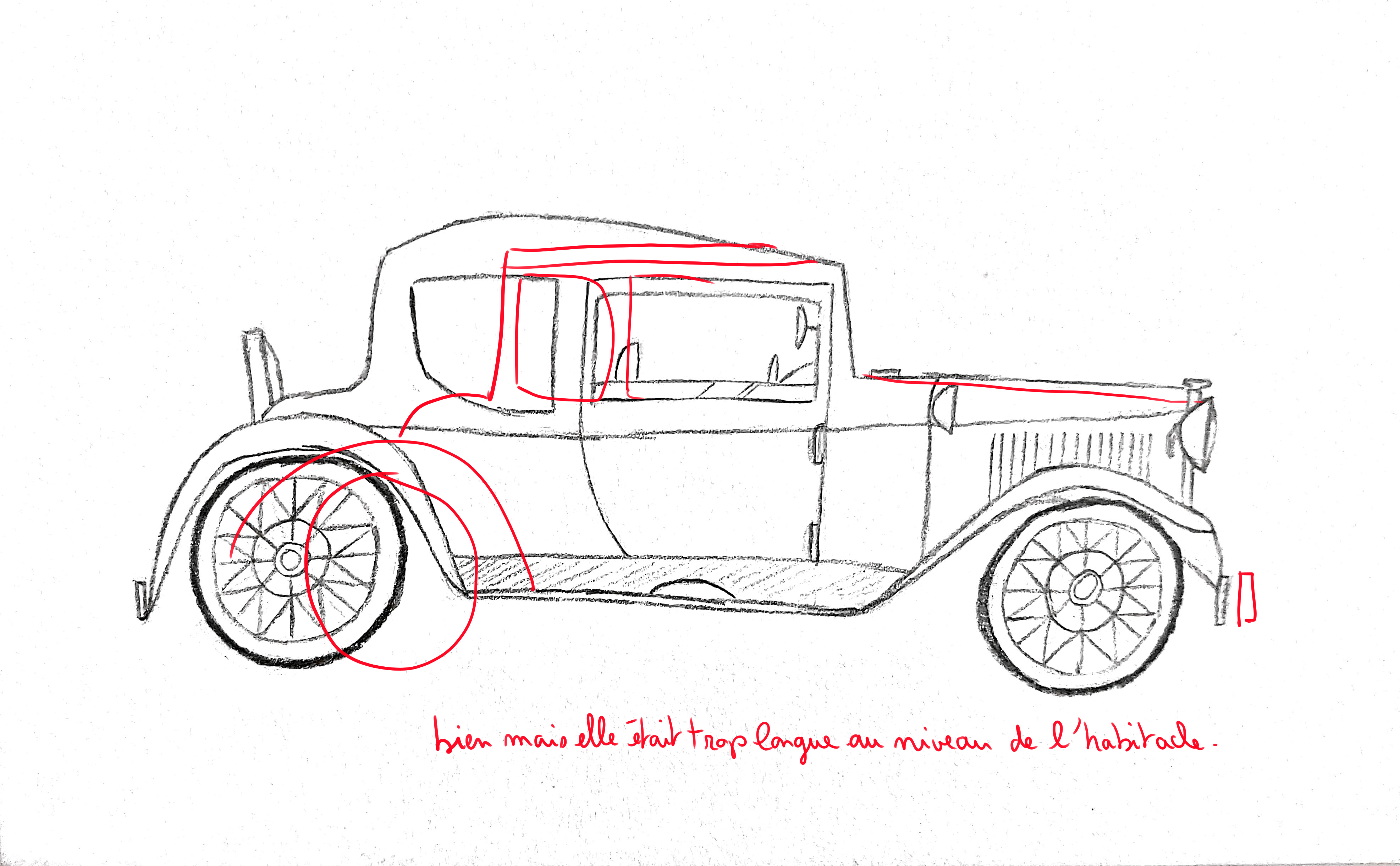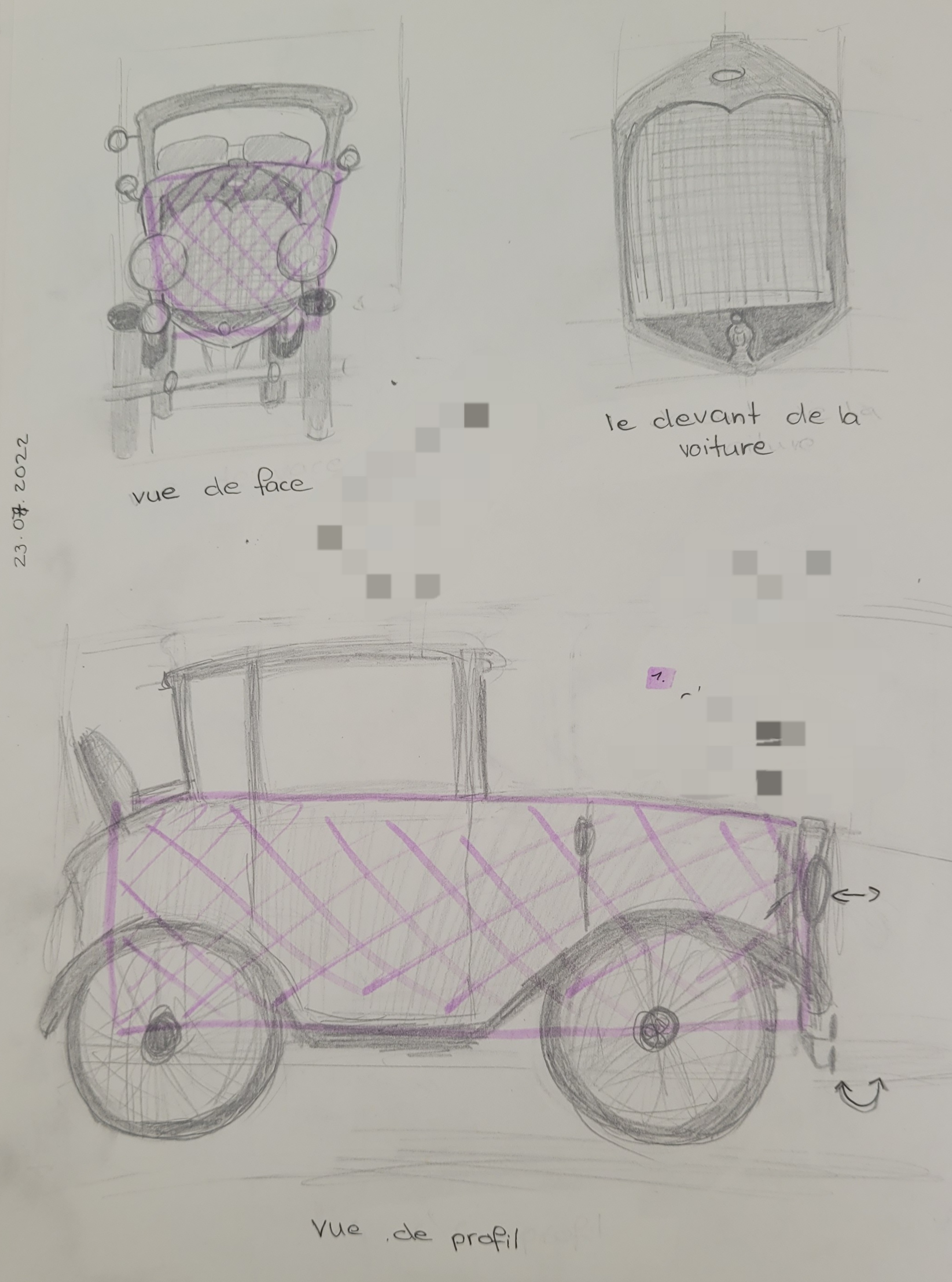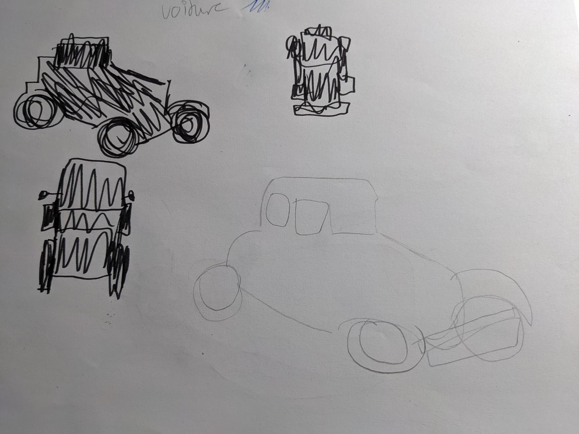 Bonjour, je vais envoyer mes dessins de la voiture en 3 x car j'ai fait sur différentes feuilles.