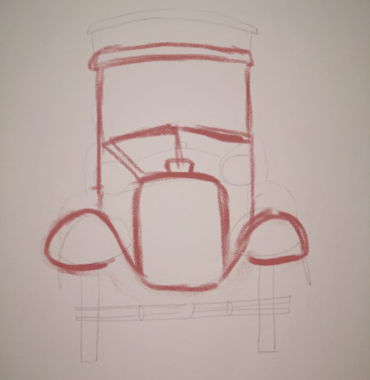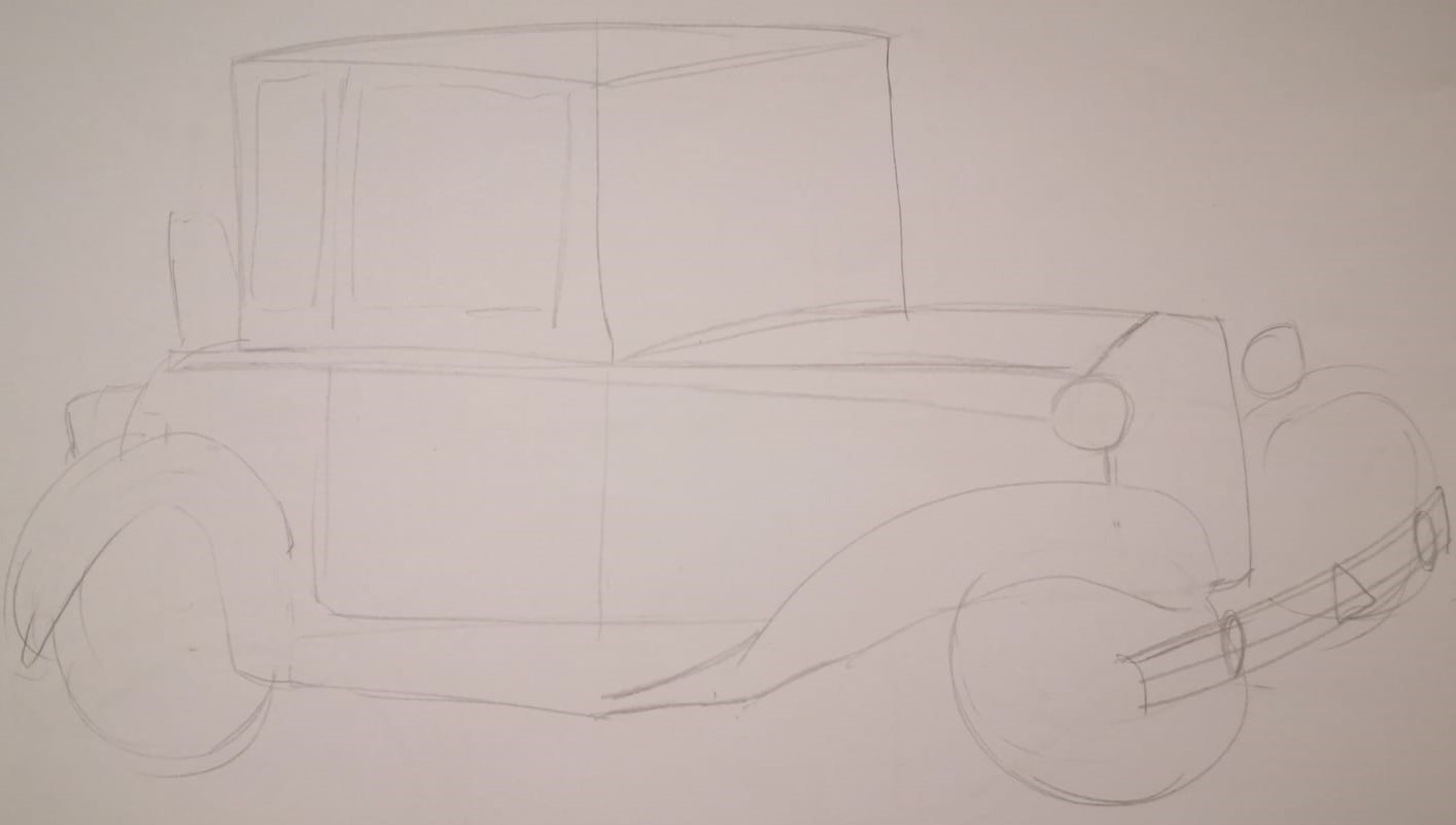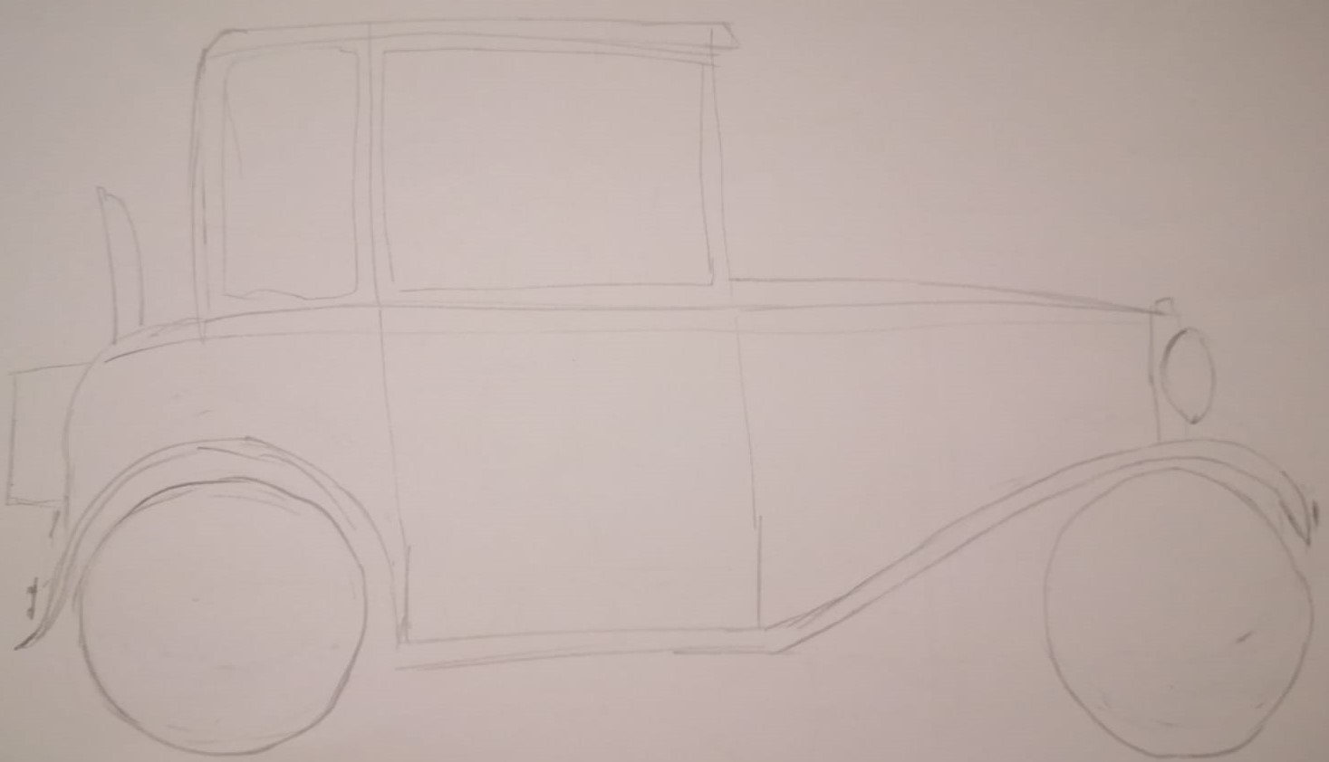 Bueno, mi corrección será menos hablar sin soporte visual, pero tengo el problema de publicar mis imágenes durante algún tiempo ... en la vista de perfil, preste atención a las ruedas para que estén en el mismo eje y haga la misma dimensión. El capó debe inclinarse ligeramente y detenerse en el centro de la rueda delantera.