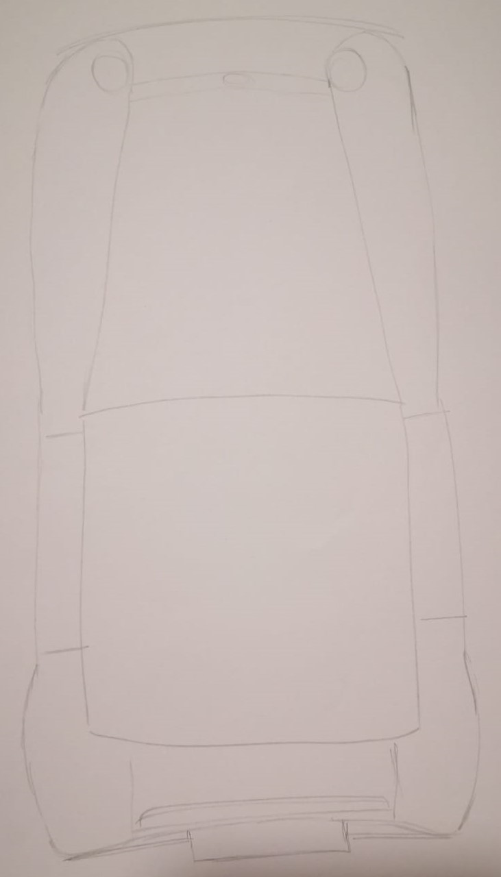 Pour la vue de dessus, je vois ce que tu veux dire. Essaie de visualiser plus en terme de forme géométriques, et essaie de moins accentuer le côté trapèze de l'avant.