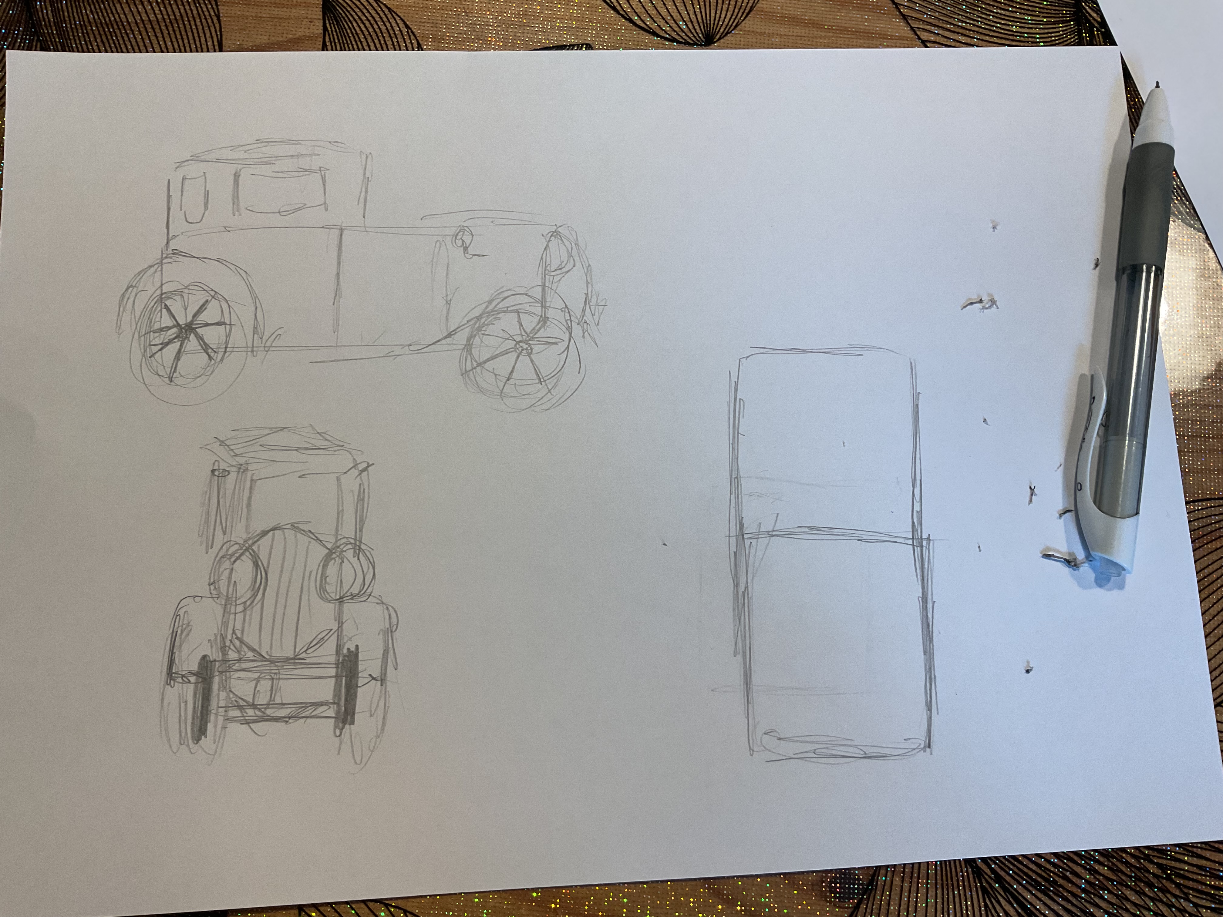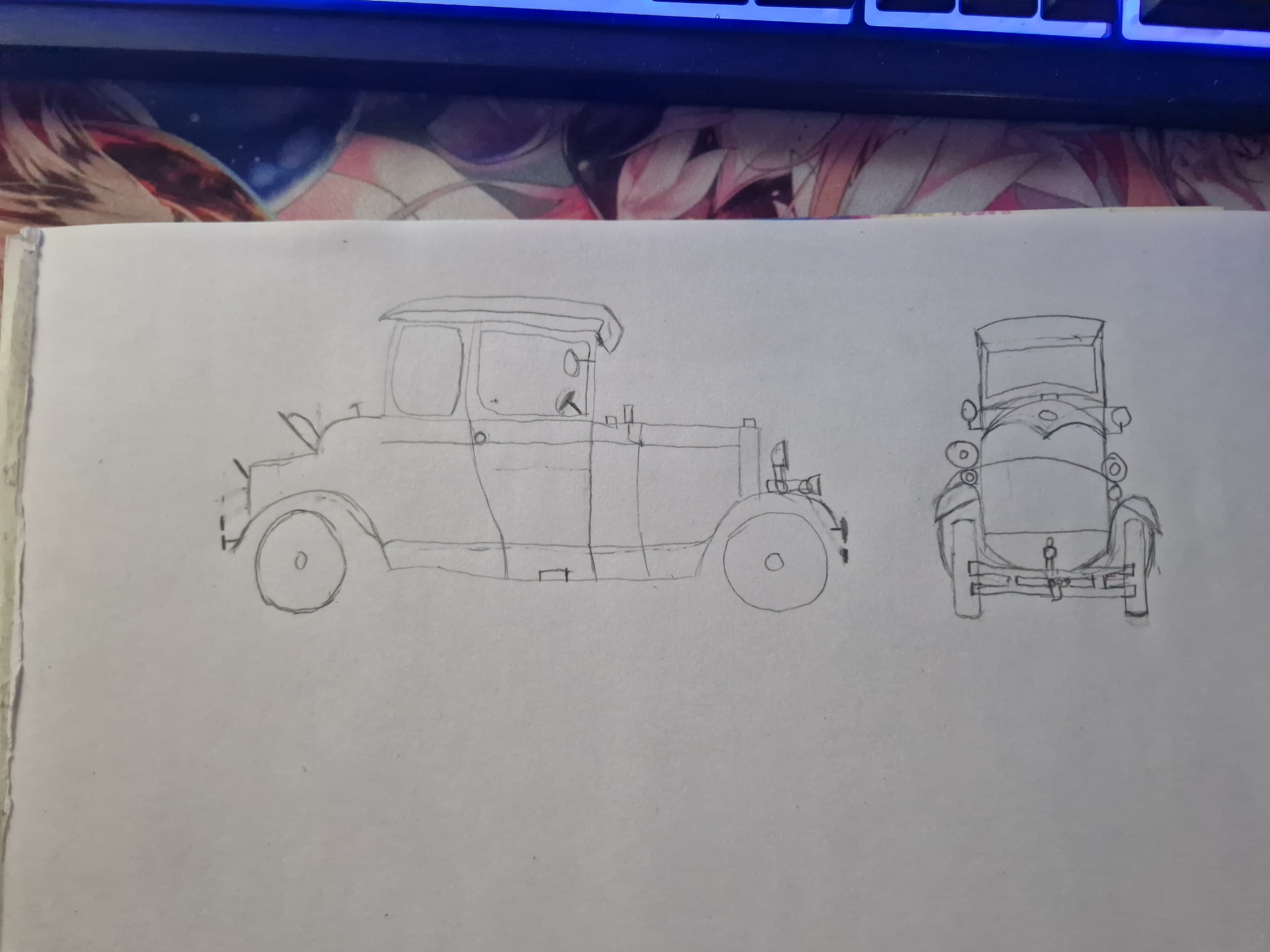 Buenas noches Glokta, ¡realmente tu auto! Ligeras preocupaciones de proporciones, pero nada terrible. Solo hay en el primer dibujo en vista de detrás donde el auto claramente carece de ancho, ¡pero por lo demás es un buen trabajo! : D