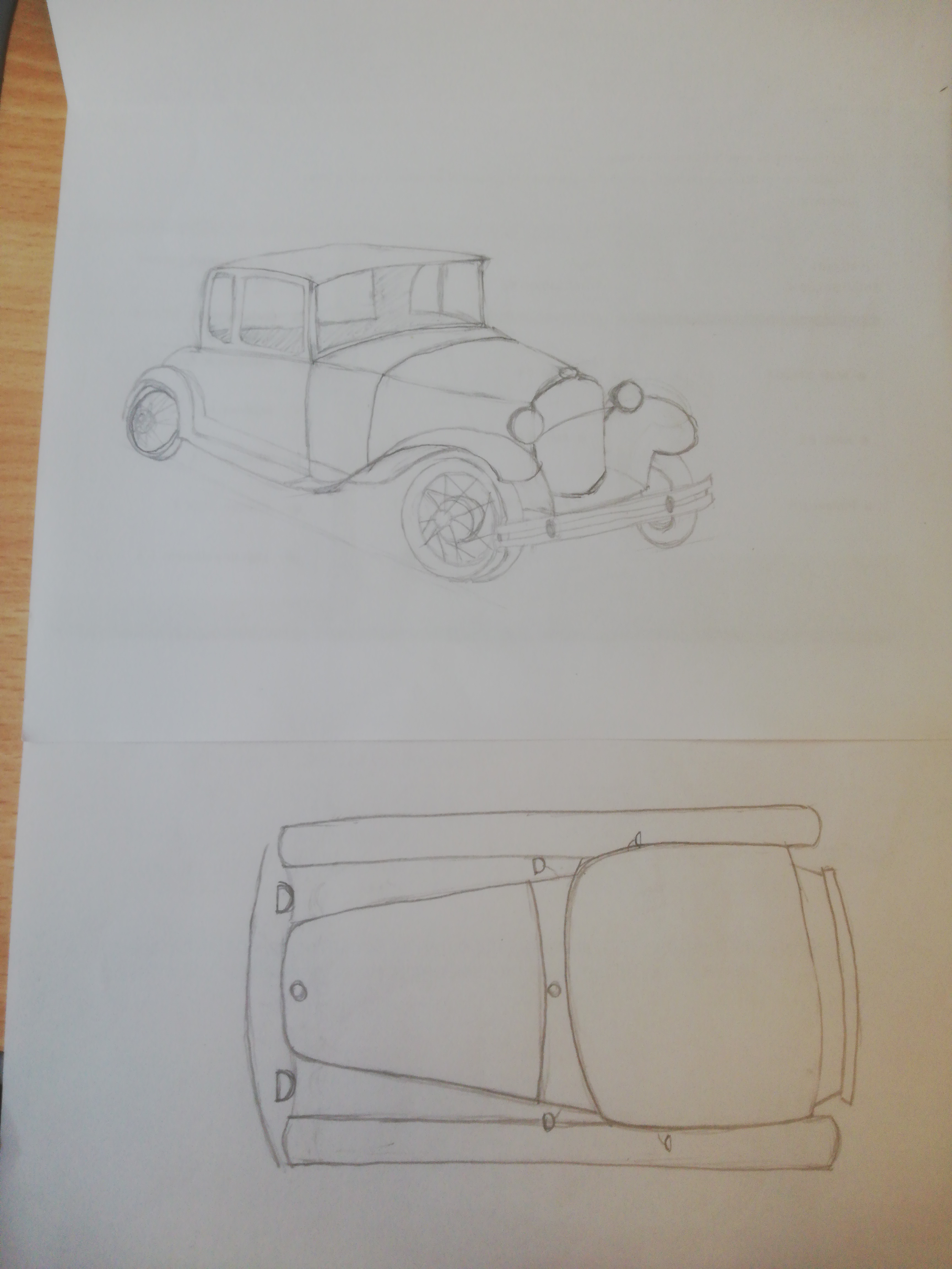 Hola Akya, no te preocupes por hacer hermosas características por el momento, viene con tiempo y práctica. Para facilitar la tarea en la vista en perspectiva, haga su automóvil en un bloque general que incluirá la cabina, el capó, el tronco, ¡le permitirá tener un resultado más equilibrado entre las diferentes partes! Para la vista desde el frente, realmente no está mal, es solo una leve preocupación para la proporción, ¡pero nada demasiado malo! ^^ Trate de hacer más ángulos de visión (desde el frente, el lado, arriba, etc.), el propósito del ejercicio y poder comprender su sujeto desde diferentes ángulos desde alguna información disponible para usted en la foto. ¡Hermoso trabajo! :)