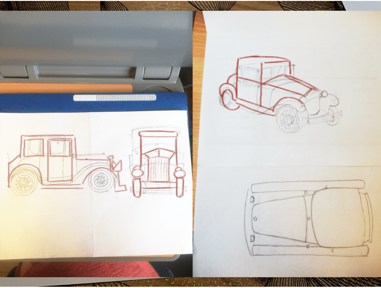 En ce qui concerne tes voitures, elle sont vraiment bien, celle de face est presque parfaite, le capot arrive juste légèrement plus haut et l'habitacle est un peu plus carré mais dans l'ensemble tout est au bonnes proportions avec les bons détails, pour celle de profil, elle s'y un peu plus allongé et le capot est un peu plus bas, mais là aussi ça reste vraiment bien, bravo 😀