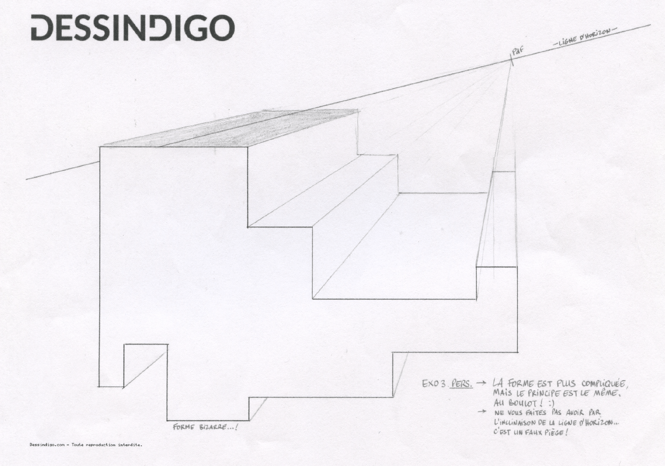 Et bien ça me paraît nickel aussi pour ce 3ème exercice! Tu as bien chopé les bases pour la perspective! Attention, comme je disais sur l'autre forum, la résolution de ton image est très basse, du coup difficile de distinguer tous les détails. Ce n'est pas encore trop gênant sur ce type d'exercice, mais pour la suite ça risque de poser un souci...