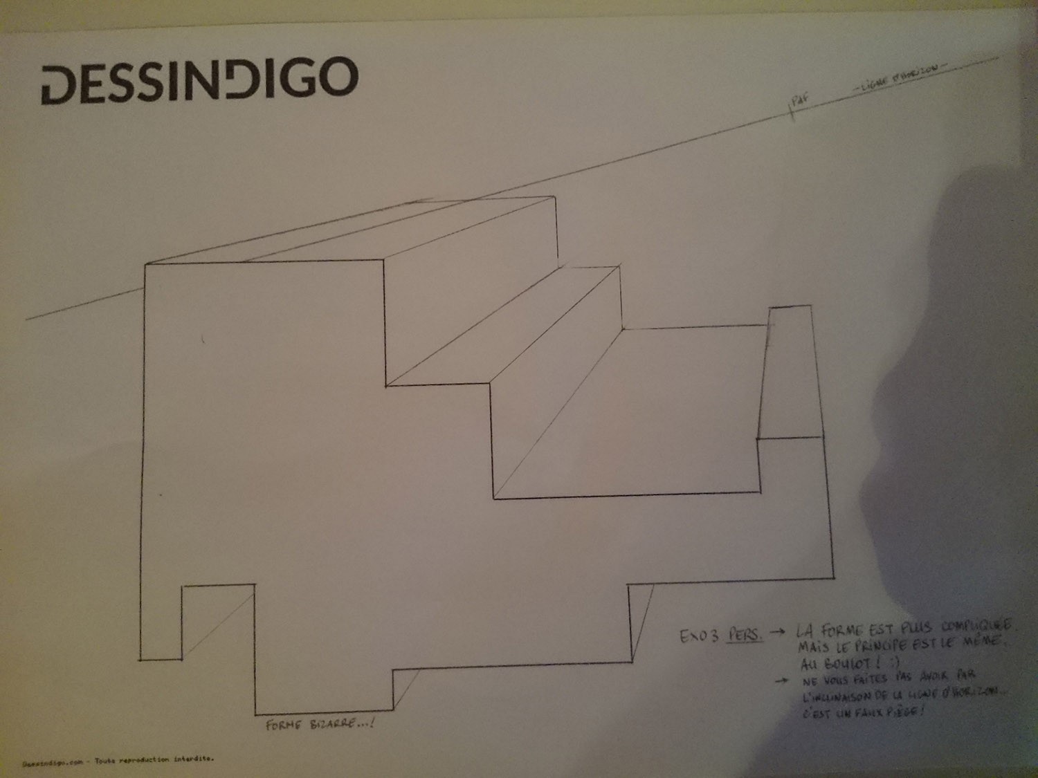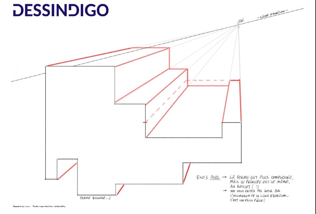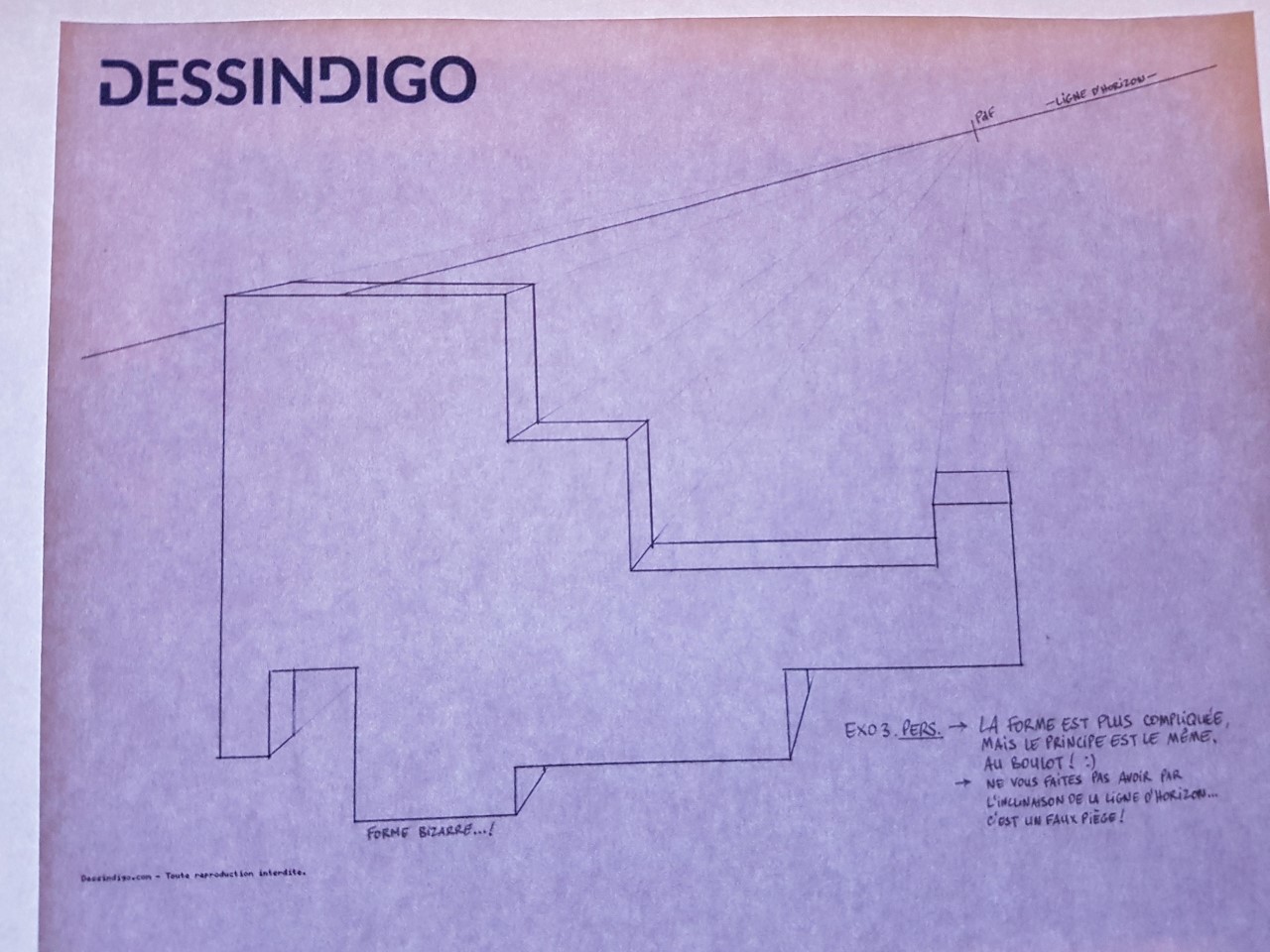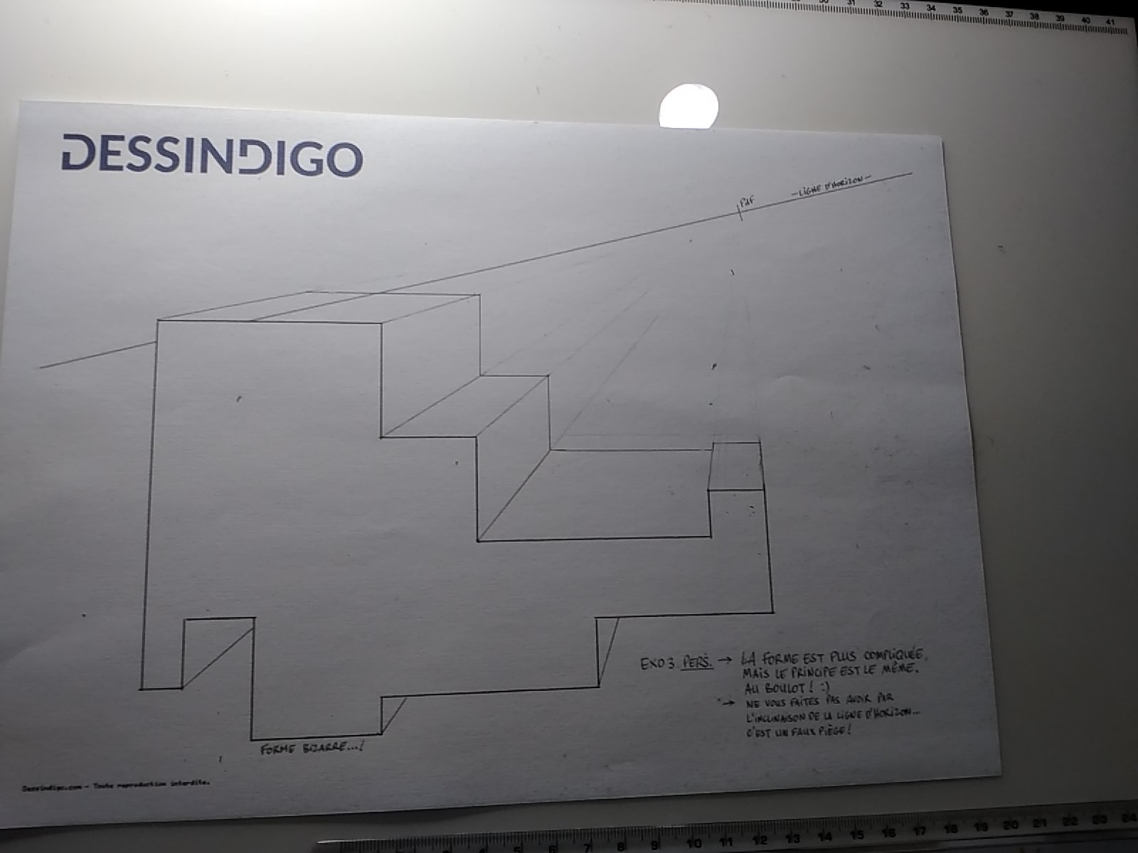 Et enfin la dernière. J'ai beaucoup apprécié ce cours, mais j'ai d'autant plus hâte aux prochains qui vont rentrer plus en détail dans les dimensions des droites fuyantes (ce que je ne maîtrise pas du tout).