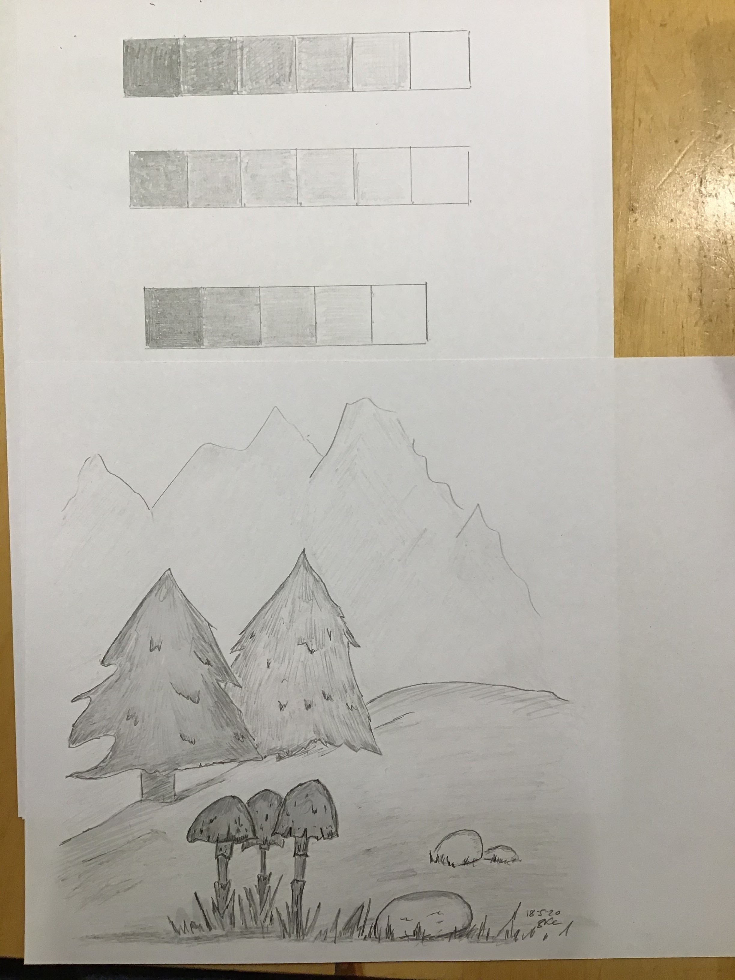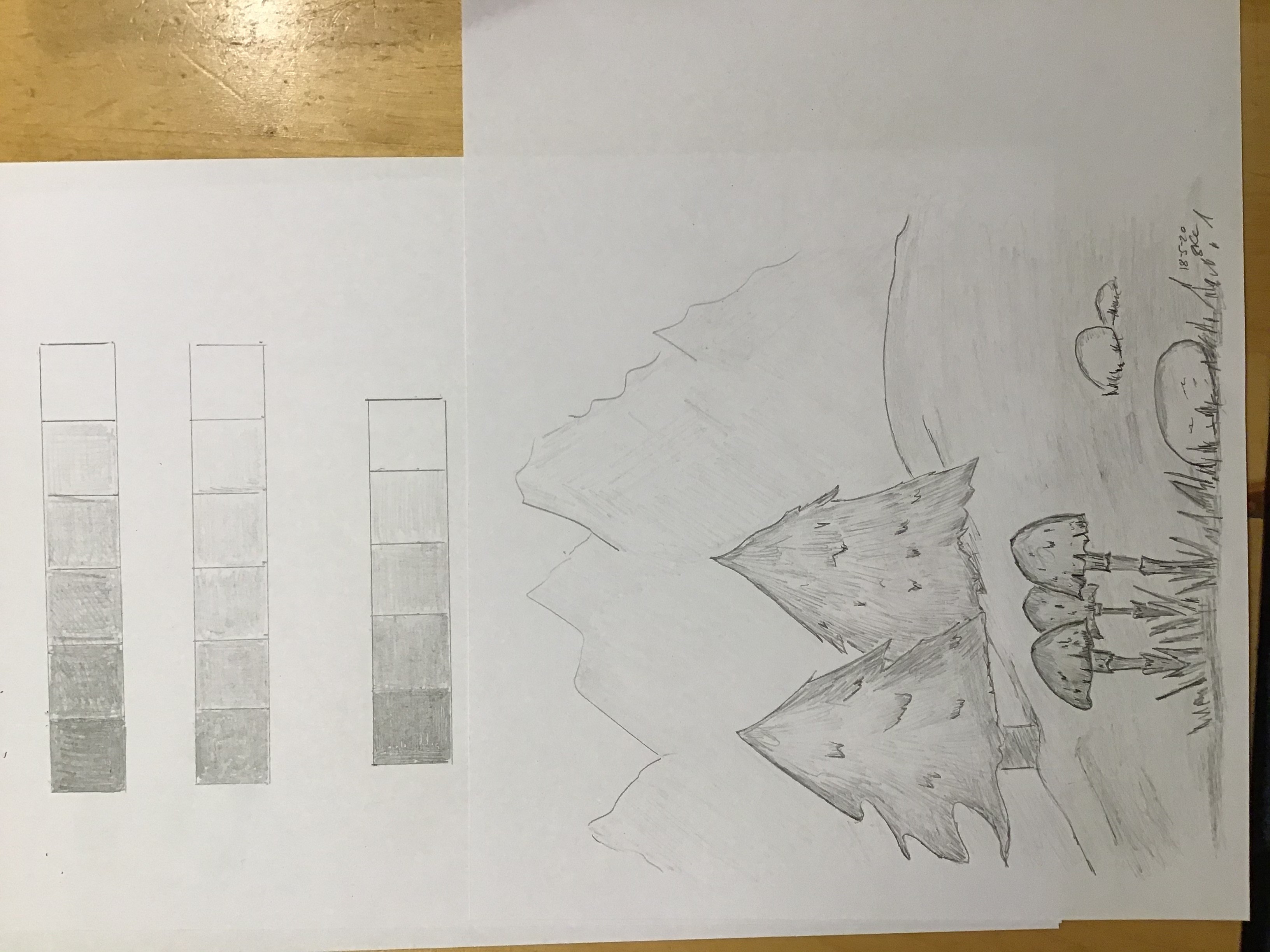 Buenas noches, aquí hay algunas escalas de valor y un paisaje. Difícil de dosificar entre los abetos más oscuros pero más distantes y el primer plano. Gracias por tus comentarios, Sandra