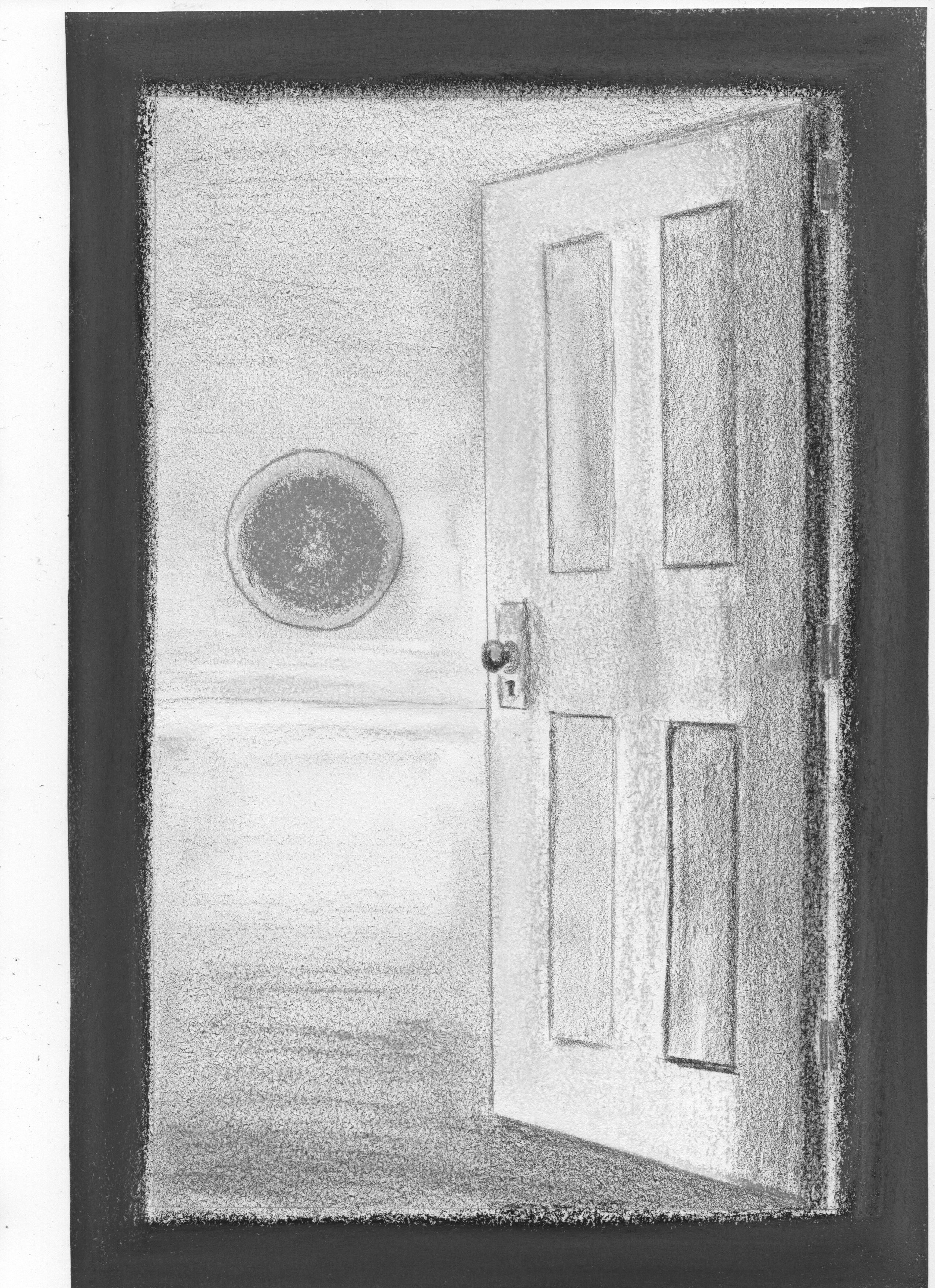 Pour ton premier exercice, sur l'escalier à proprement parler, il y a peu d'erreur. La tranche des marche ne devrait pas être si claires vu qu'elles ne prennent pas la lumière. C'est surtout le fond qui n'est pas juste. Si la lumière sort de la porte tout en haut, elle ne peut pas descendre en cône et créer des ombres fortes autour de la porte elle-même. Comme ne serait compliqué à expliquer je t'ai joint une correction (bon j'ai un peu forcé le trait pour les lumières autour de la porte, mais tu vois l'idée ^^) :)