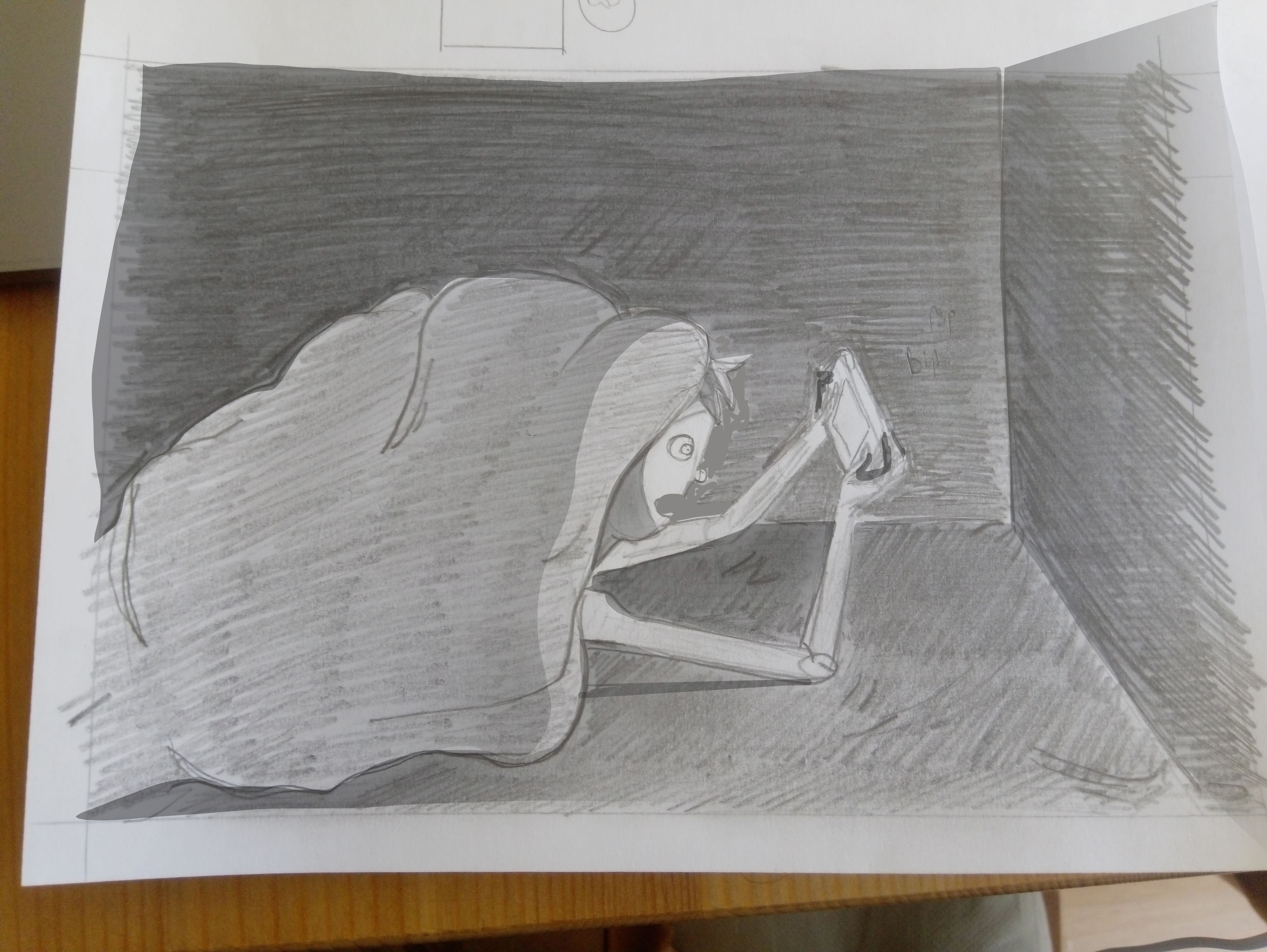 Para el segundo, te adjunto una corrección ultra rápida, pero solo entendí revisándolo, que no era el cabello que cubría todo el cuerpo, sino un edredón! Lo mismo ocurre, no sé por qué no empujaste tus escotillas al borde de la cara. Pero aquí tiene una visión general de cómo jugar con los valores para dar información sobre el volumen y un poco de información de luz (en la vida real carece de muchas sombras y luz en todas partes, pero es un punto de partida, digamos). Así que tenga cuidado, no dude en estudiar trabajando de acuerdo con un modelo real o en una foto para entrenar ^^