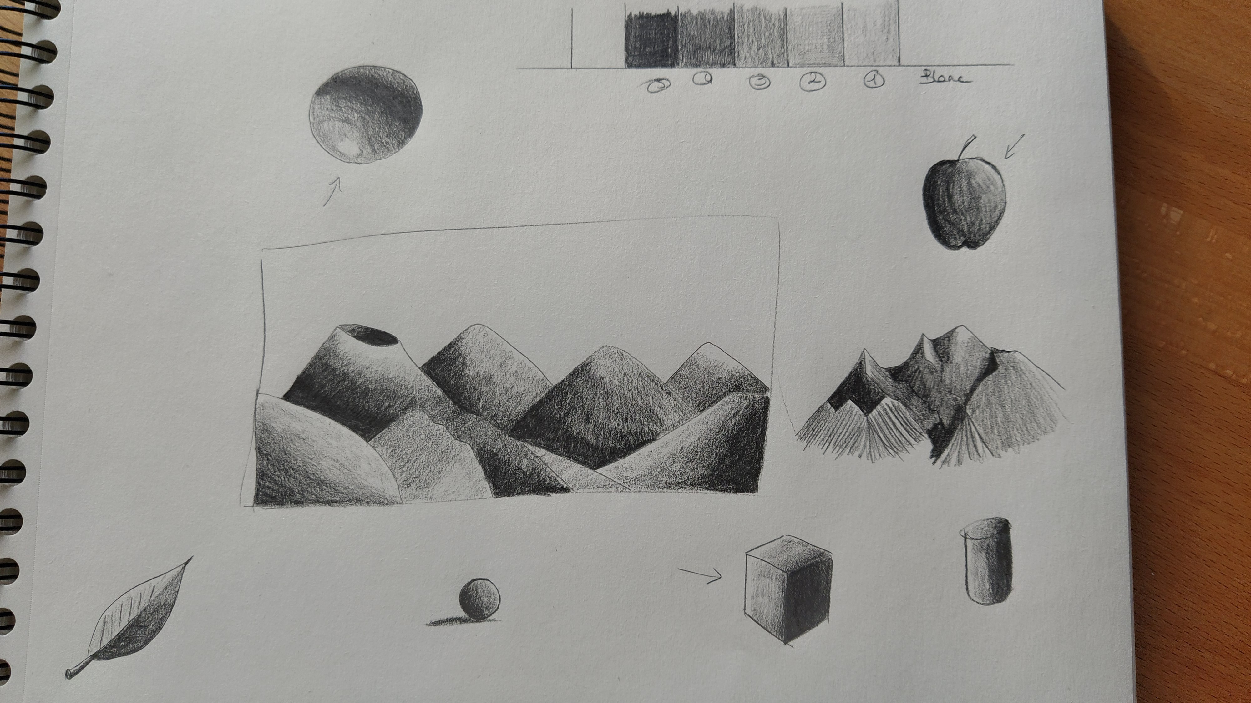 Je n'arrivai pas à appliquer ces valeurs... faire une échelle de valeur c'était bon (essais avec différentes dureté de crayons), mais après appliquer ça sur un dessin je n'y arrivai pas, ça ne donnait rien.