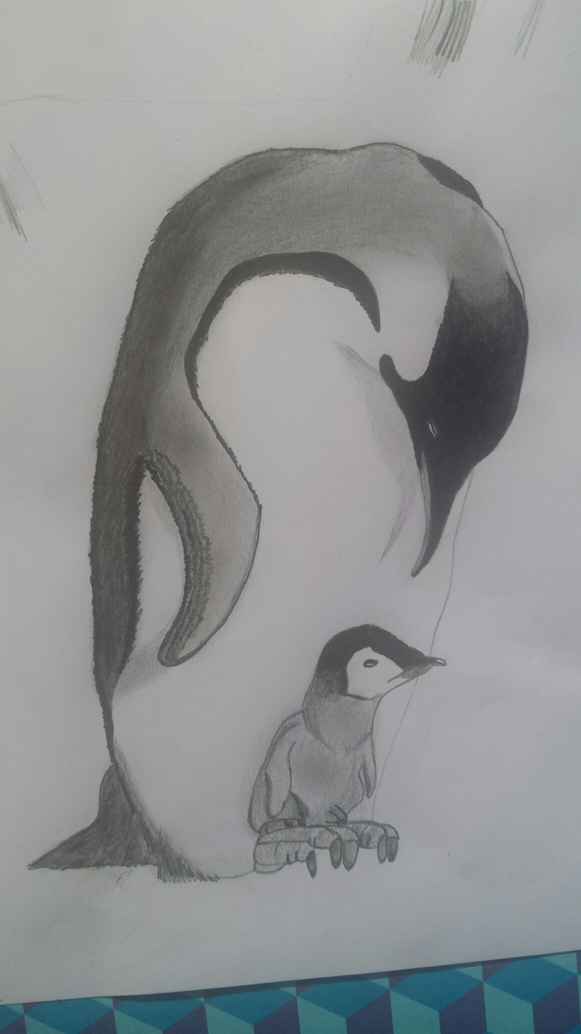 Voici mes dessins: j'ai commencé par un modèle facile avec de forts contrastes... le manchot ! =D