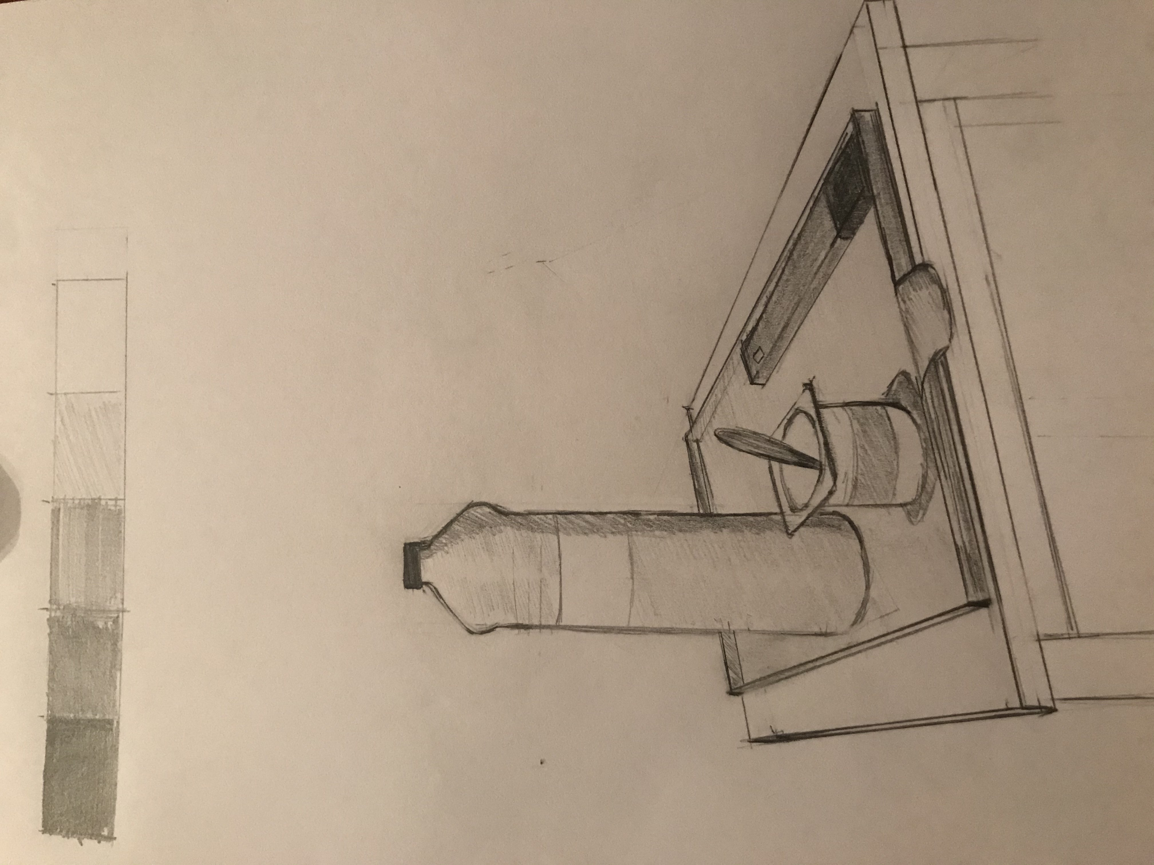 Second essai et je doit avouer être plus content de moi : je me suis limité à trois crayons gris (2H/B/5B) et un blanc. J'ai bien réussi à retranscrire l'objet en une petite heure, et malgré des erreurs évidentes, on comprend les formes et c'est pour moi l'essentiel, mais je dois encore m'améliorer je pense