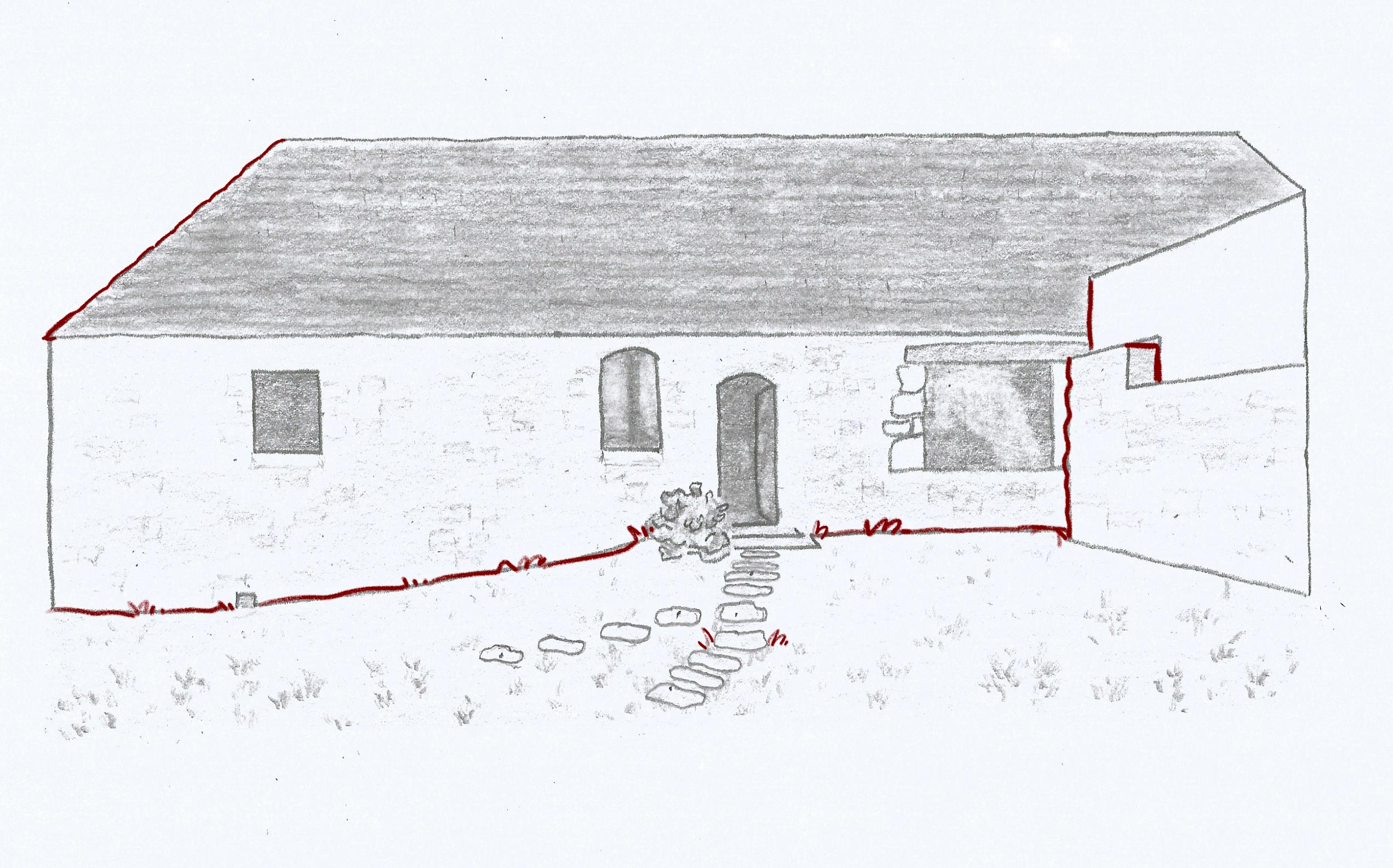Bonjour, J'ai simplifié certaines zones du dessin. Je trouve que ce n'est pas évident de représenter les pierres et les tuiles. Je vous remercie pour le corrigé et vos conseils.