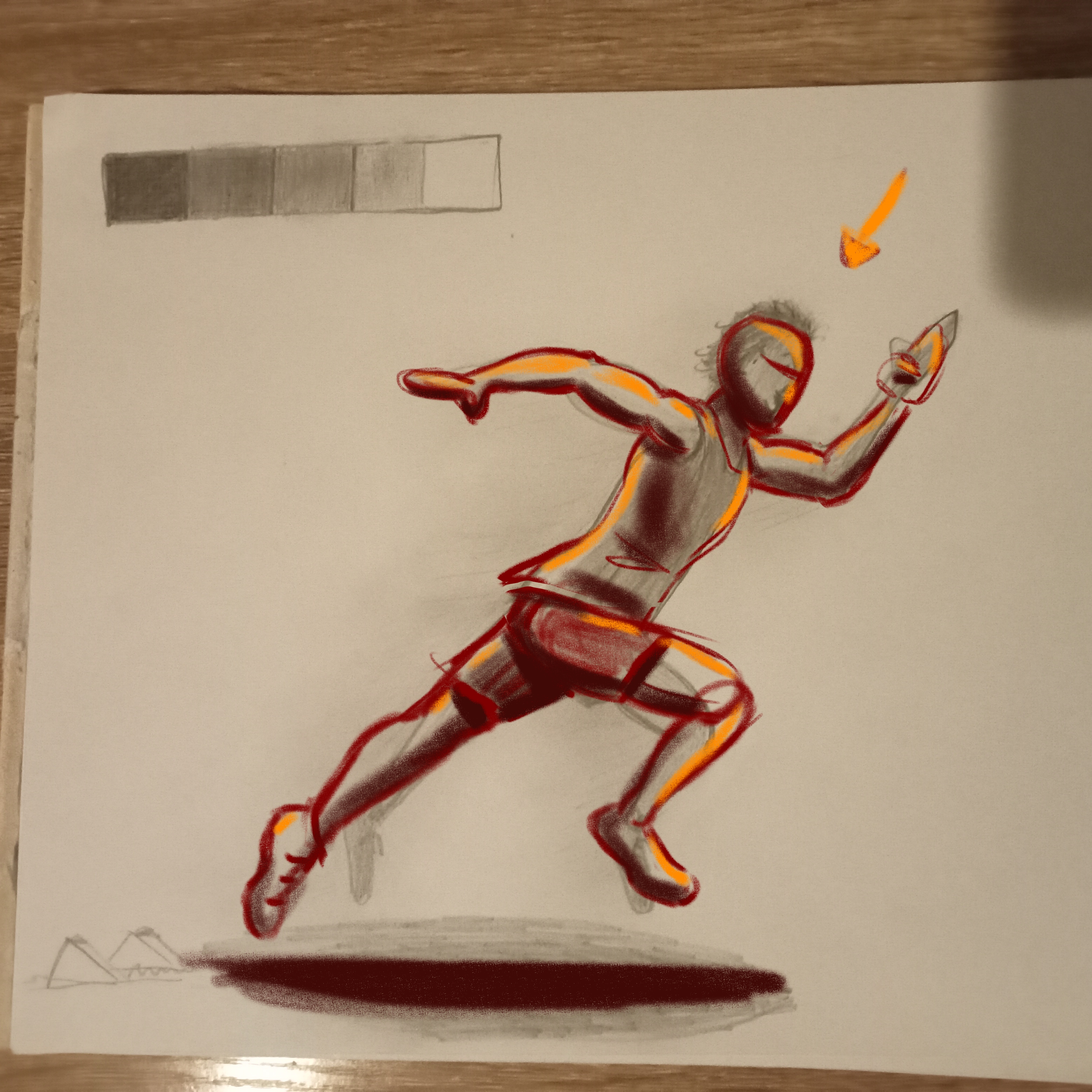Je me suis amusé à faire quelques essais avec un sprinteur, peut être à cause des jo, je ne sais pas pourquoi j ai dessine ça. Bon sa jambe gauche a un léger souci, ou c est la jambe droite, mais je ne me suis pas attarde là dessus, c était surtout un support pour travailler les valeurs. C est hyper intéressant. J en ai fait un deuxième thème sur un sujet complètement différent. Merci pour tes retours