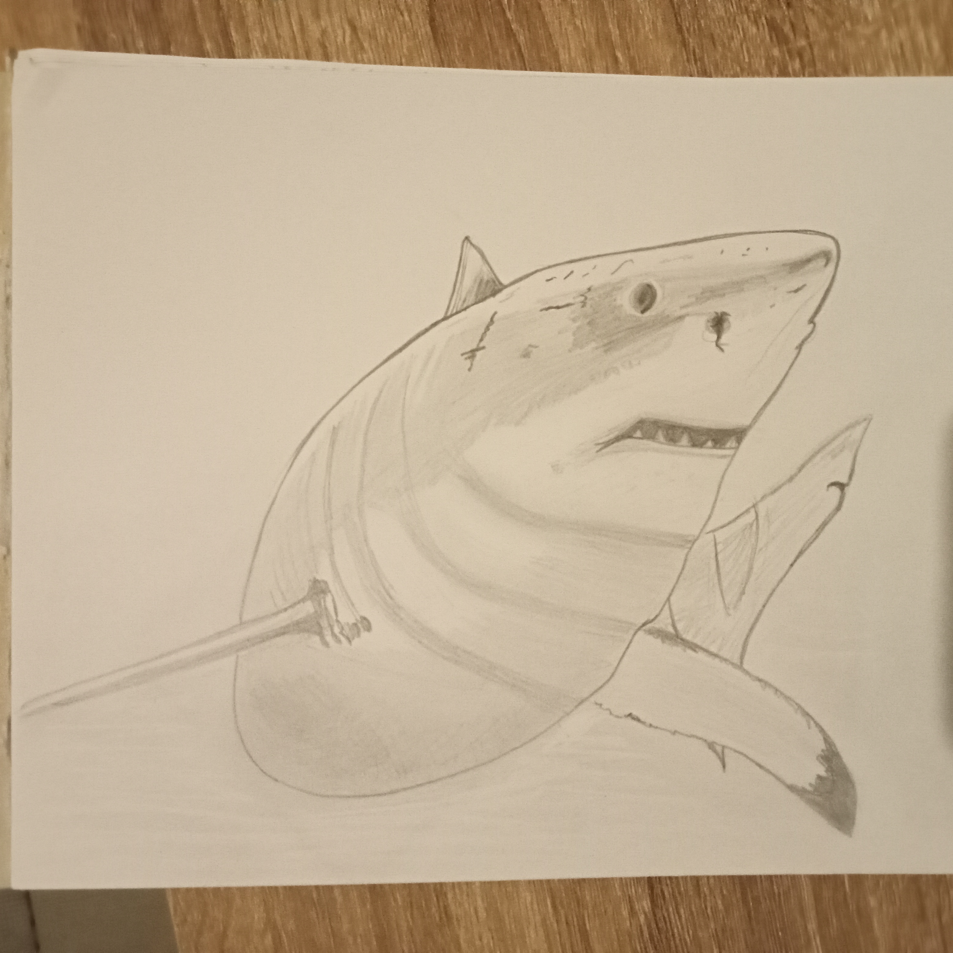 Hello Kitof, bizarre j'ai l'impression que j'avais déjà corrigé cet exercice... Peut-être ailleurs dans le forum? En tout cas, c'est du bon boulot. Je pense que ça rendrait encore mieux en ne laissant pas ce requin sur un fond blanc... En assombrissant l'arrière plan et en plaçant quelques reflets d'eau le requin ressortirait d'autant mieux!
