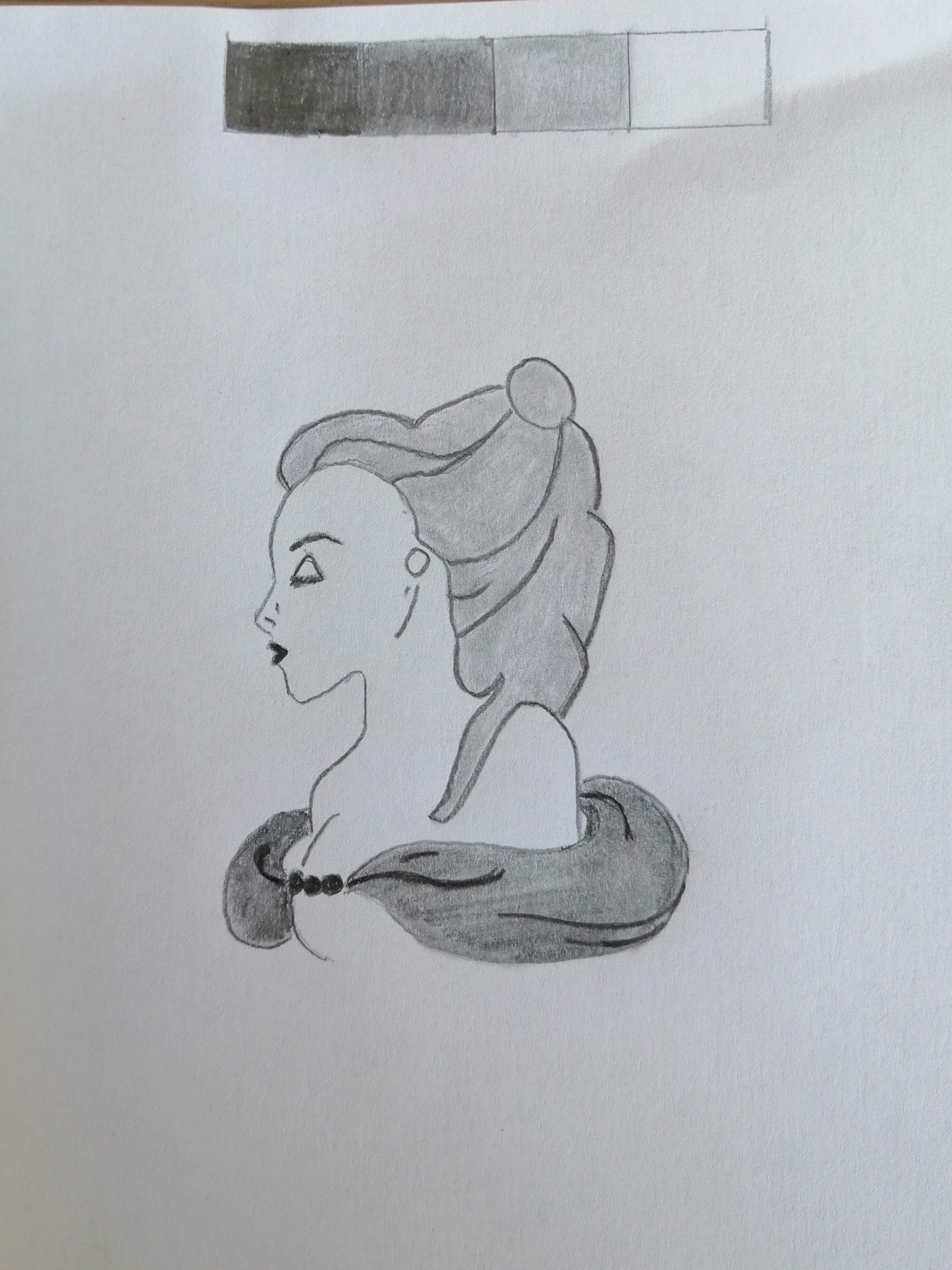 Les valeurs sont un poil proche sur ses vêtements, mais dans l'ensemble ça fonctionne bien et tu as plutôt bien positionné les ombres et lumières, bravo à toi ! :D