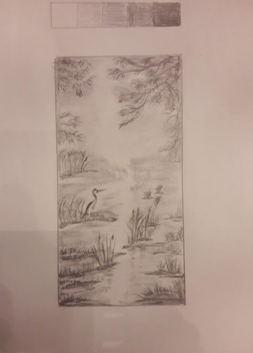 Tes valeurs sont très chouettes. Je vois bien les différentes valeurs que tu as utilisées, on sent du volume et du contraste et ça c'est cool. Même s'il y a des petites erreur de volume par endroit, en terme de gestion des valeurs c'est très très bien. Bravo !