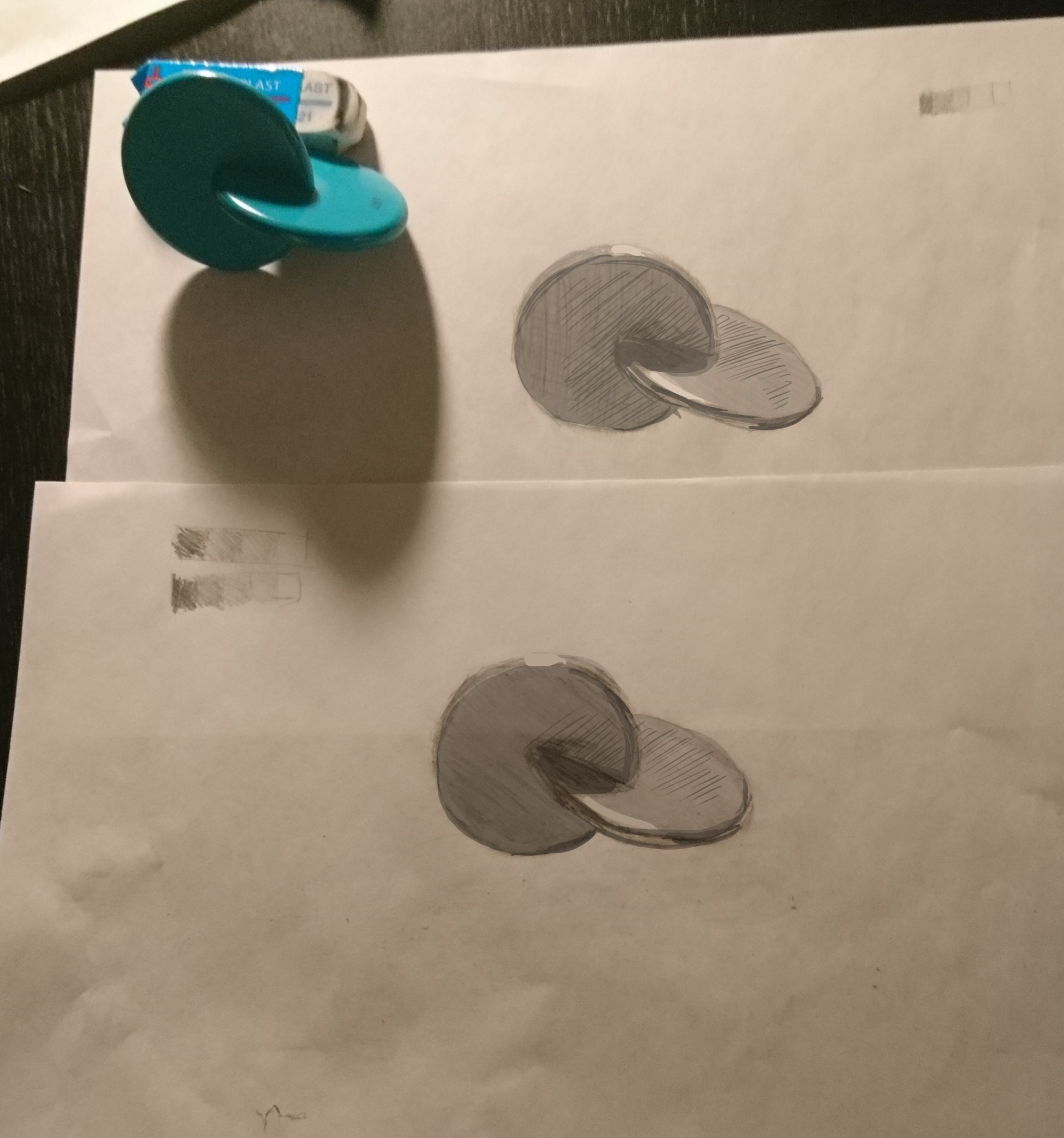 Preferí tomar un objeto IRL para desafiarme a mí mismo para hacer un dibujo sin un modelo que ya sea masticado por otra persona. Mi juguete de camarones tiene una forma interesante para trabajar los elips. Pero el lado brillante/reflexión es una verdadera molestia para reproducirse.