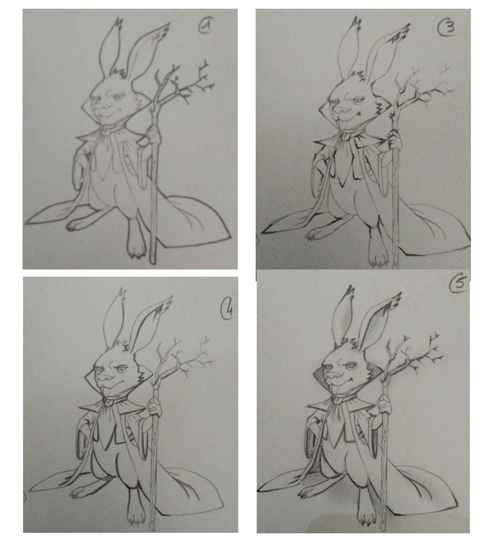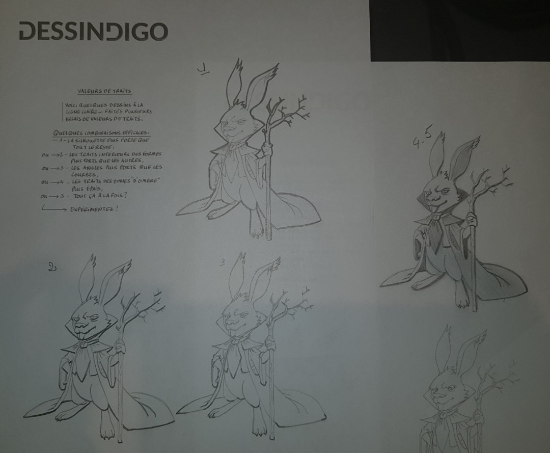 Realmente no entiendo qué instrucciones basadas en sus conejos. Cuando usa una instrucción para cambiar los valores de línea, es necesario que sea homogéneo, de modo que el mismo código uno mismo aplicado en todas partes, allí para sus dos conejos trabajados, realizó algunas áreas de color, pero no trabajó las líneas que deben engrosarse de acuerdo con las instrucciones. En su conejo en la parte inferior derecha, tengo la impresión de que intentó hacer sombras en las piernas del conejo, pero es demasiado grueso para los valores de línea (es más una zona de sombra que una línea espesa) y no aplicó su código en todas partes. Deja bien las instrucciones, un conejo o espesas su silueta exterior, luego una donde las líneas son más gruesas en el costado de las sombras, uno en el que son los ángulos que están engrosados ... dime si tienes preguntas y también puedes ver el video de corrección si no entiendes algo. Buena suerte ;)