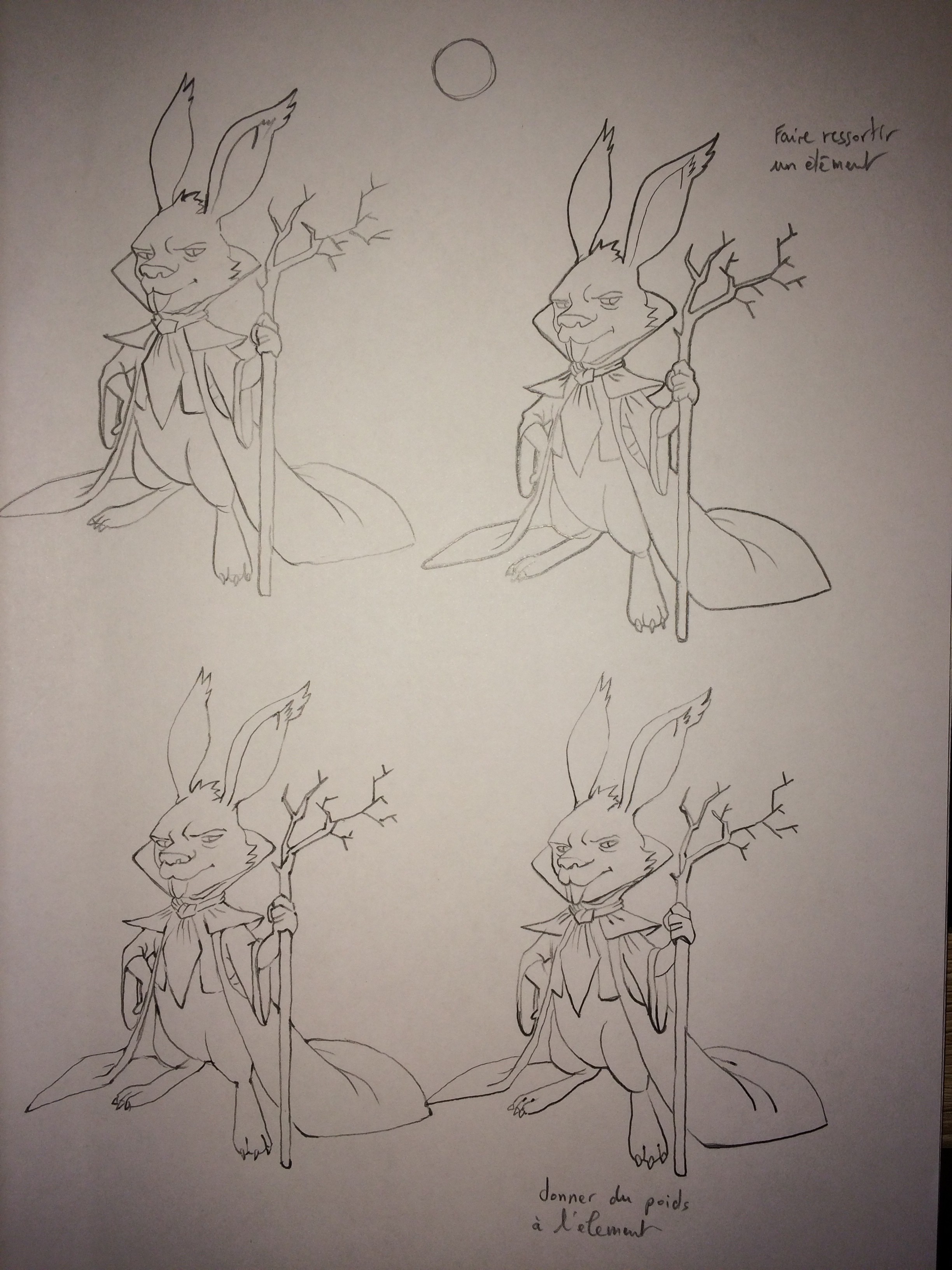 7) ¿Por qué no, pero es un poco extraño para un personaje? Hay planes en un paisaje, es grande, pero tu personaje está más bien en un plan, por lo que es un poco extraño exagerar tus distancias con los espesores de las líneas para tu conejo. Un personaje con un además de un contingue que podríamos hacer más gruesos que está más cerca de nosotros, un personaje que le da un golpe hacia nosotros también podemos resaltarlo engrosando gradualmente. Entonces está la idea, pero eso es usar en otra situación ^^