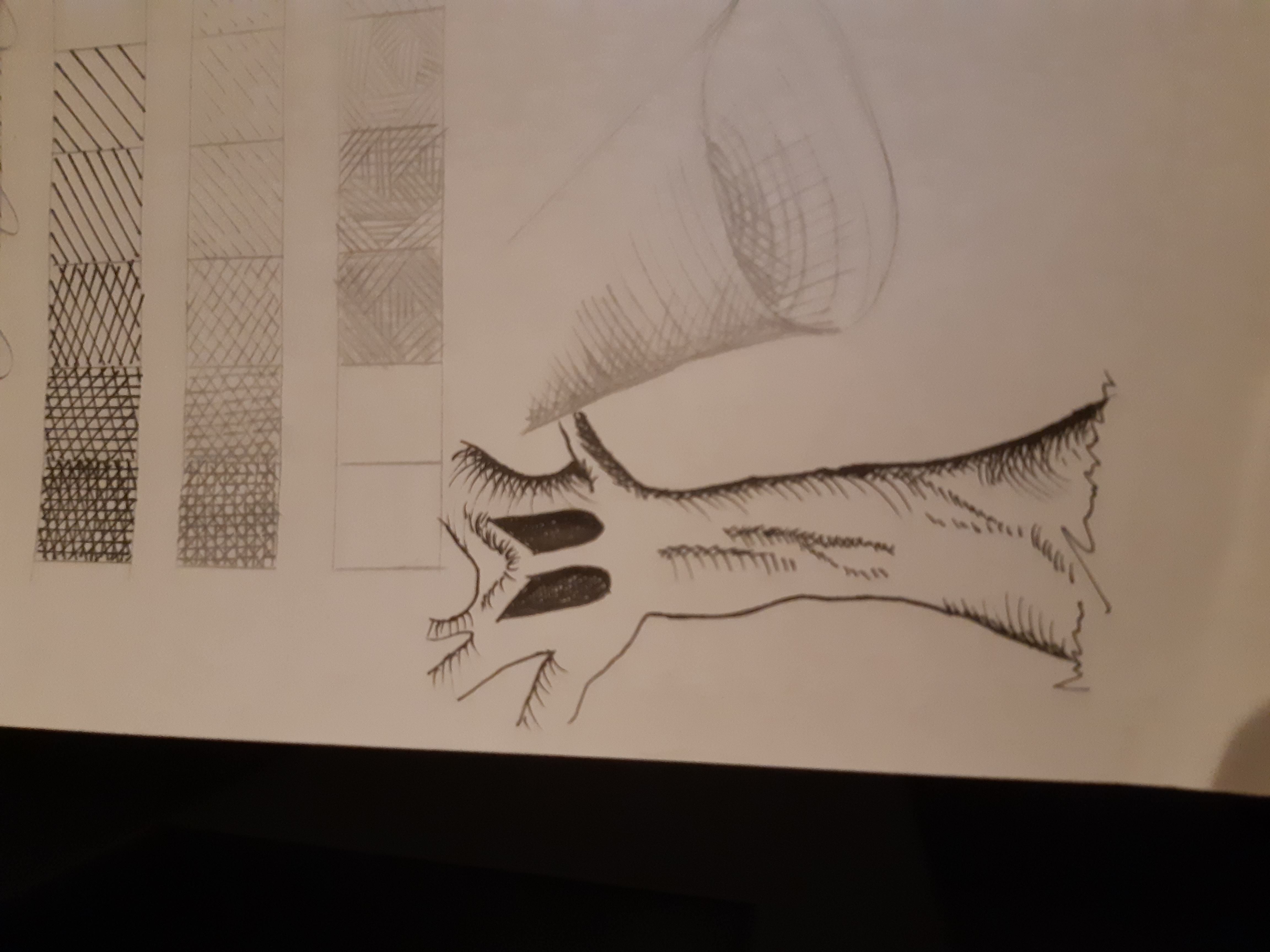 Voilà mon dessin, je ne sais pas si on peut considérer que ce sont vraiment des hâchures mais en tout cas c'est pleins de traits XD
