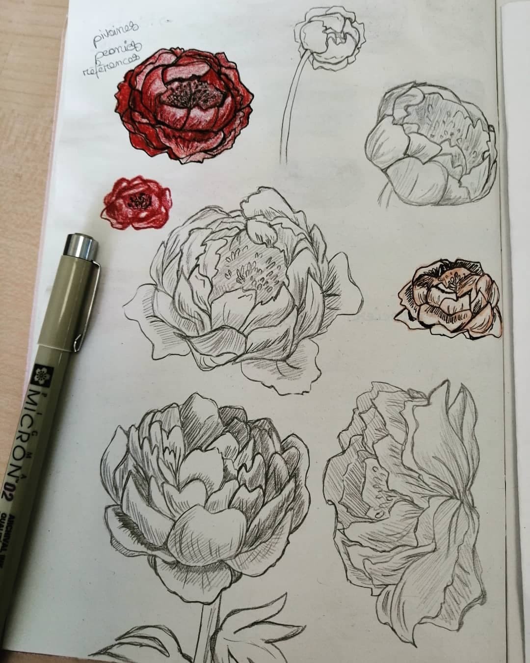 Et récemment après avoir réaliser une planche de recherche sur des pivoines, j'ai laissé les hachures et honnêtement j'aime beaucoup.