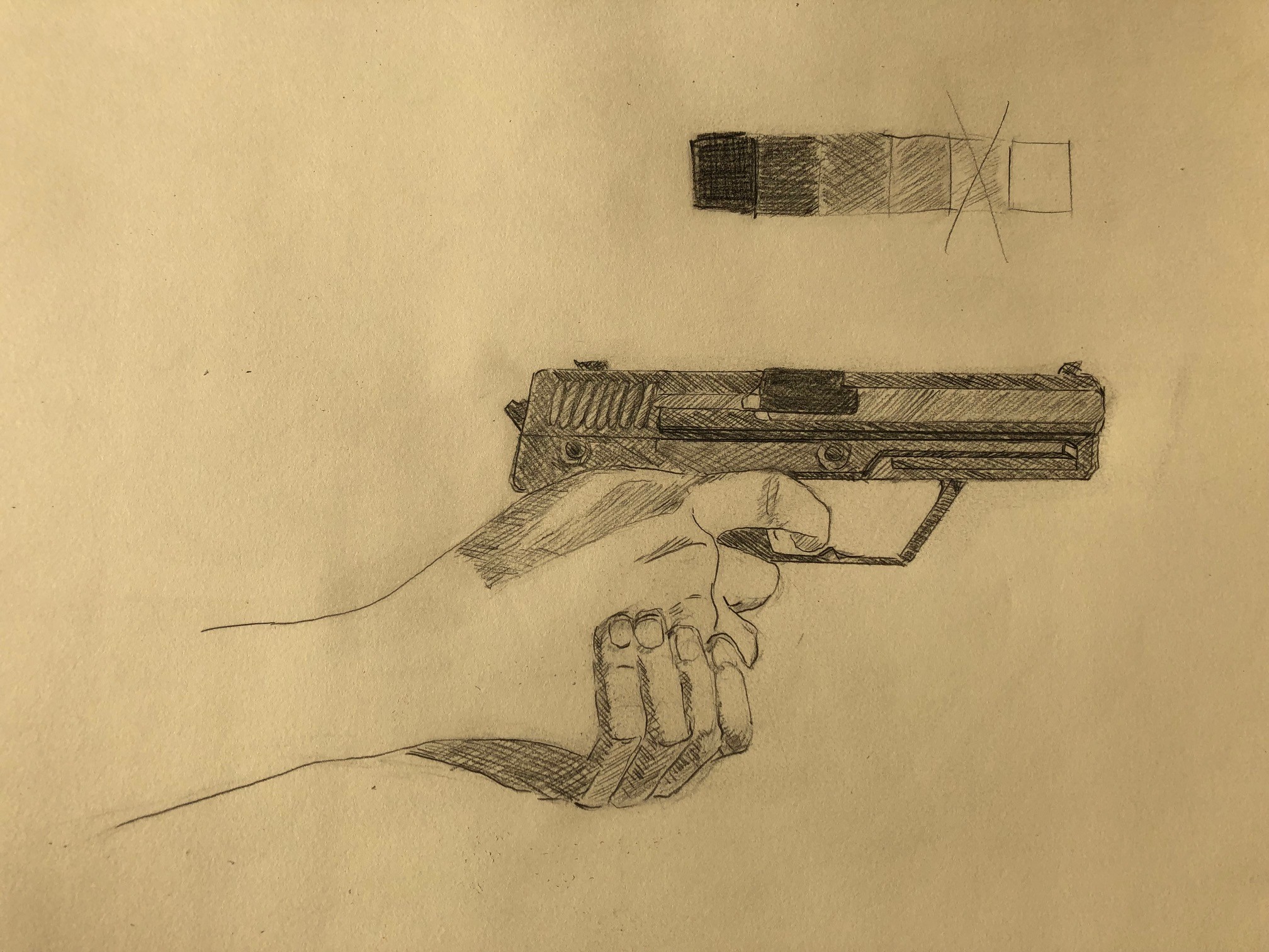 No logré respetar la eclosión de todos los dibujos, me cansé en la parte correcta del arma.