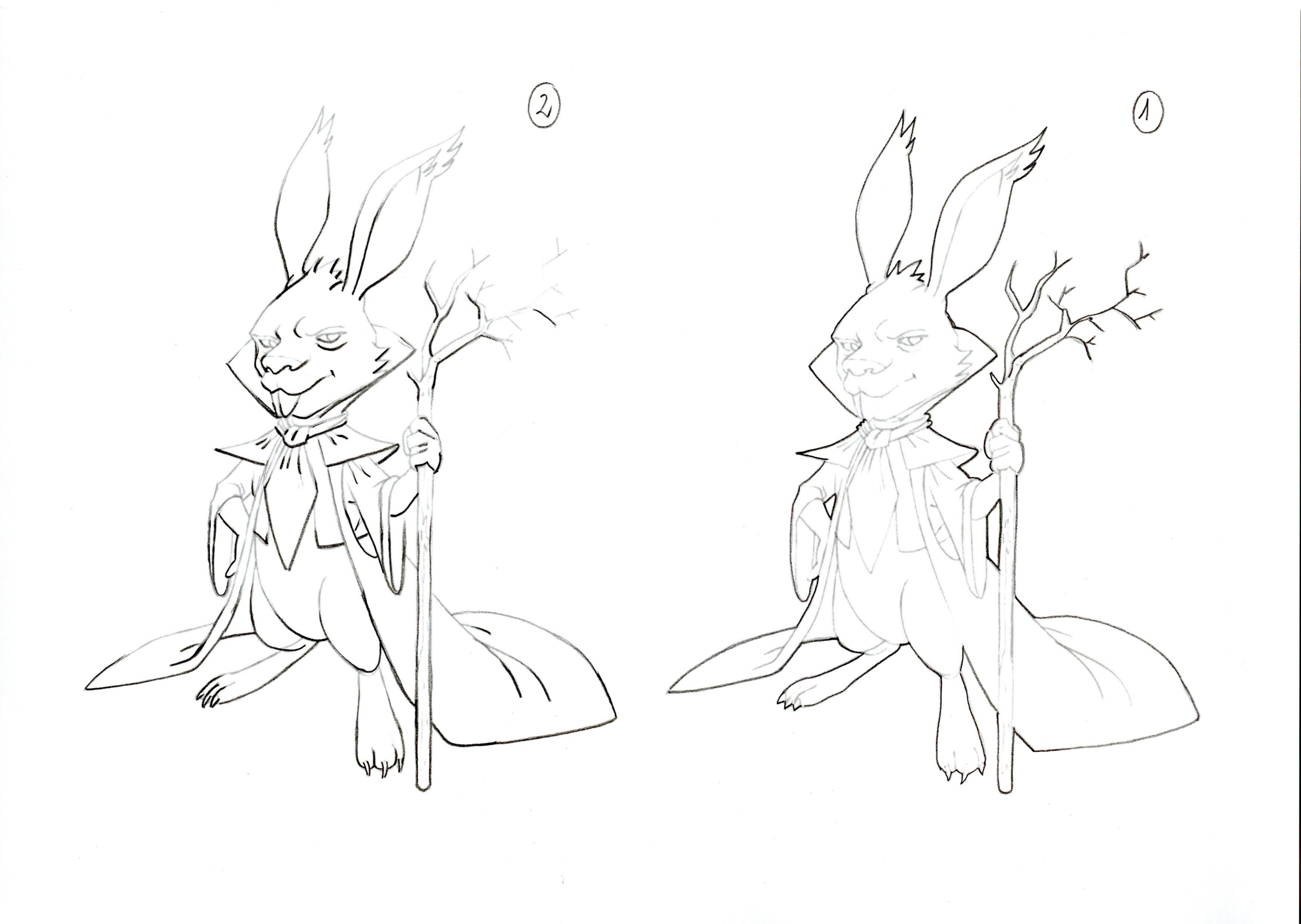 Voici mon exercice que j'ai fait en essayant de faire toutes les combinaisons et en expérimentant l'ombrage (très probablement foireux) notamment sur les deux derniers lapins. Merci d'avance de vos éventuels retours :).
