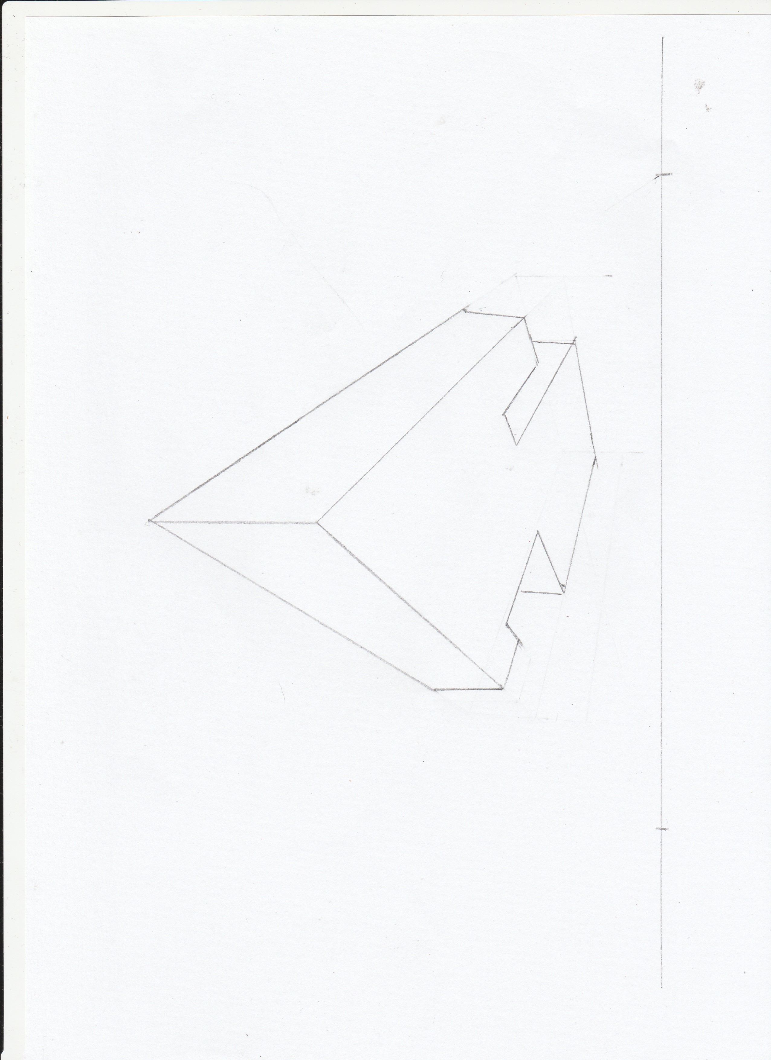 Tu aurais besoin d'un point de fuite si tu avais besoin de faire certains détails suivant la pente (des fenêtres par exemple) et dans ce cas-là, spontanément, je ferais fuir les droites en haut et en bas du cubes pour trouver leur intersection et donc le point de fuite utilisé :3