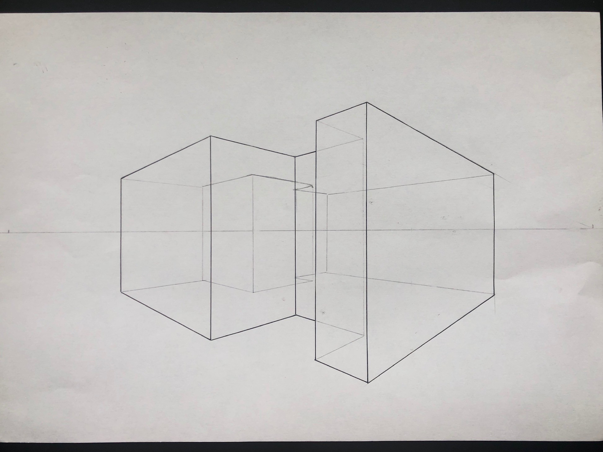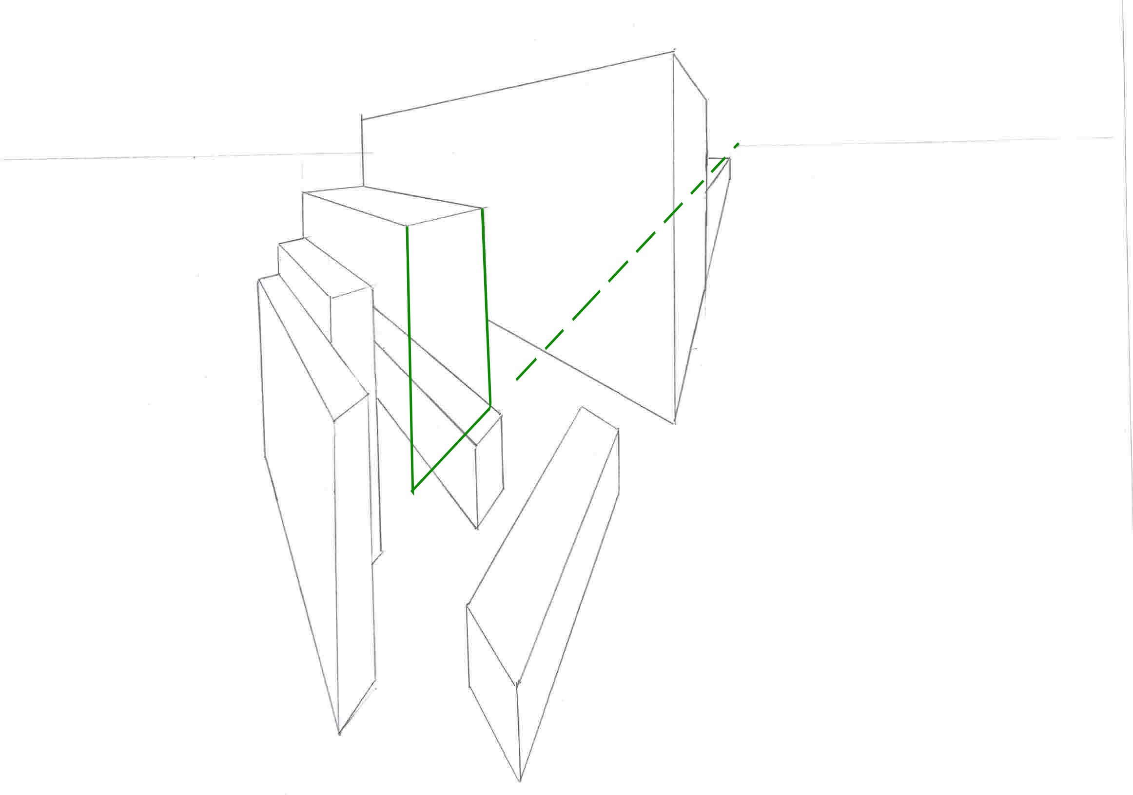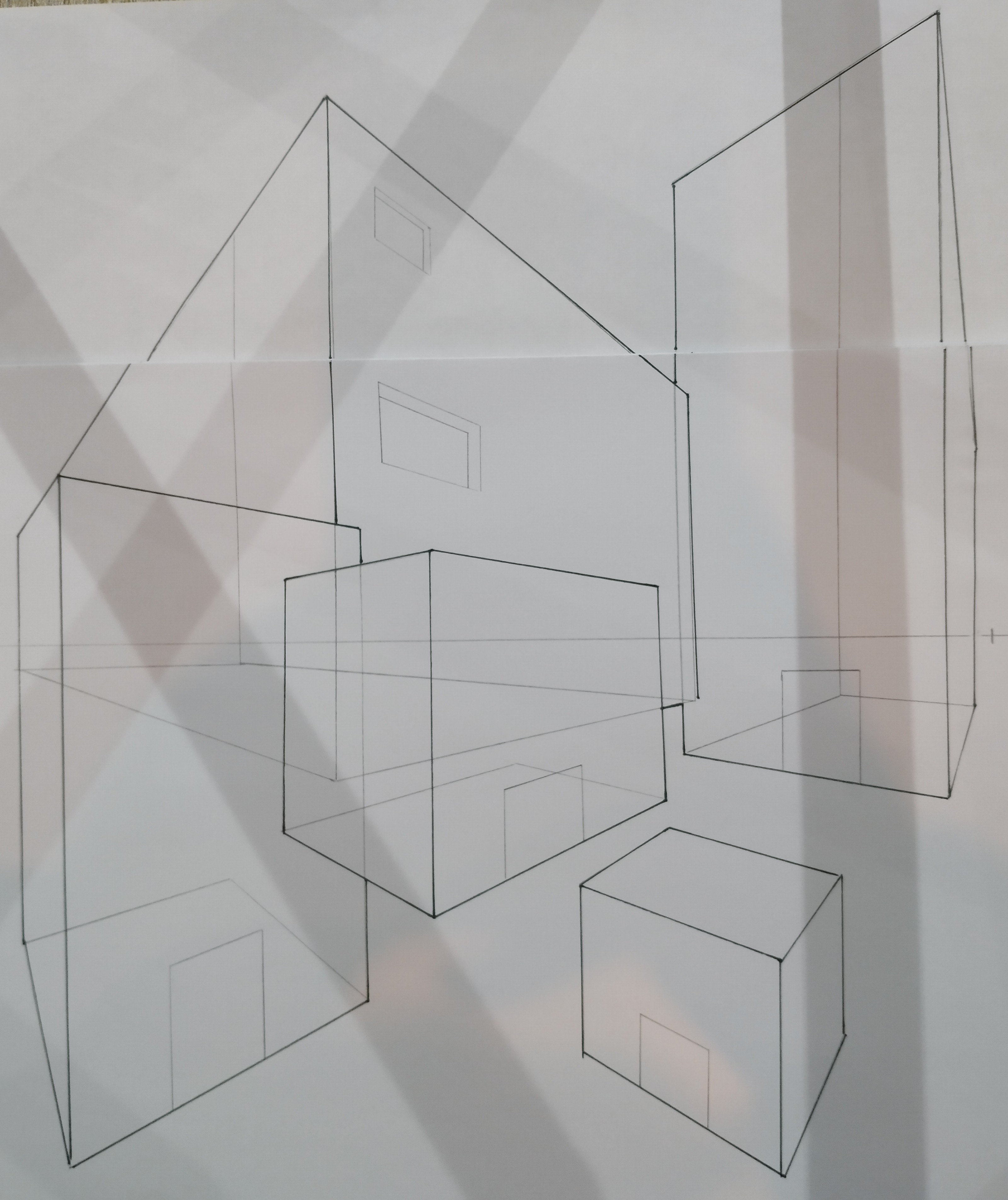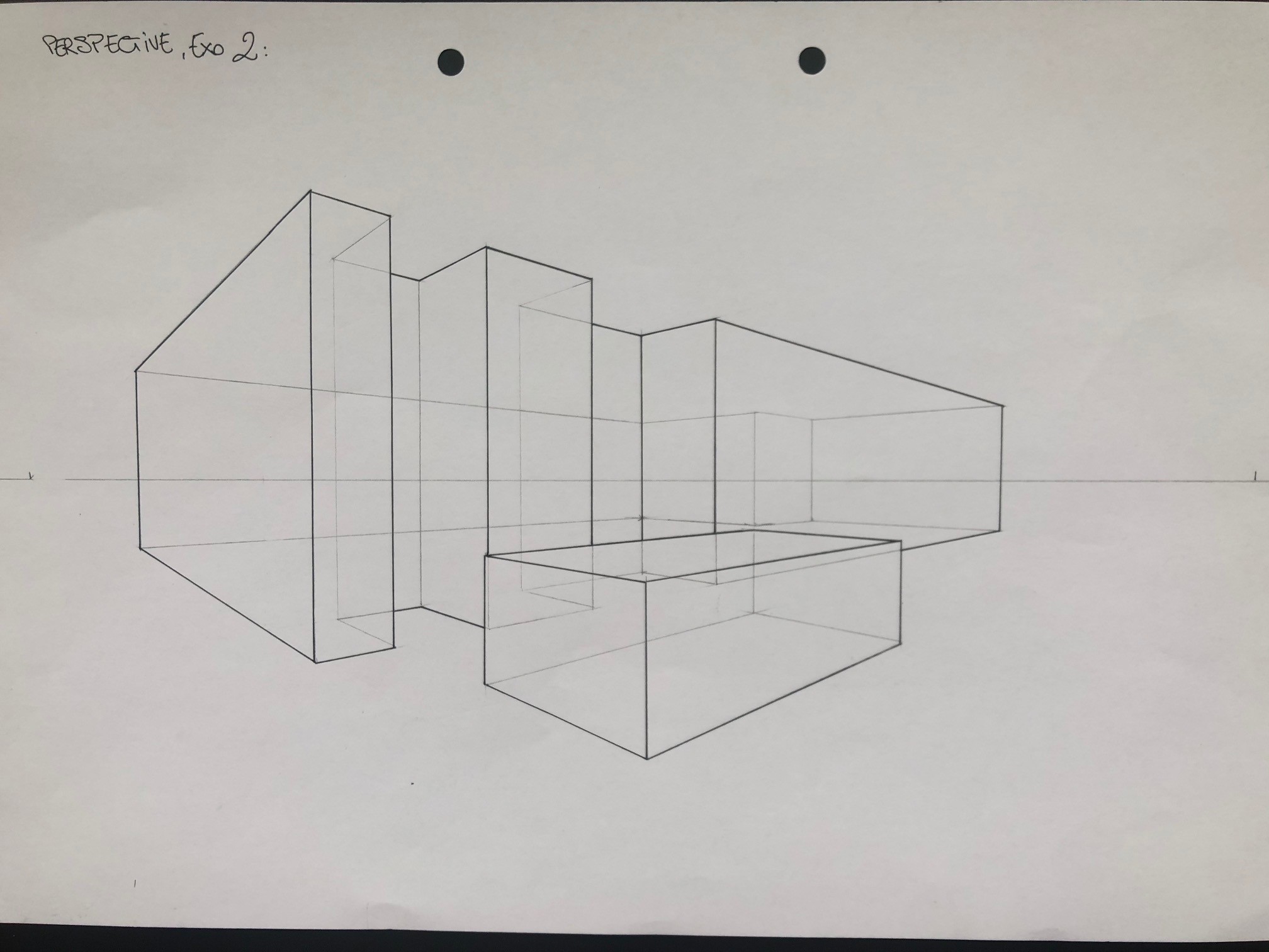 Voici mes deux essais pour les perspective à deux points de fuite. Comme j'ai choisi des dimensions de part et d'autre de la ligne d'horizon, j'ai fait l'arrière des forme en "transparence". Merci du retour ;)