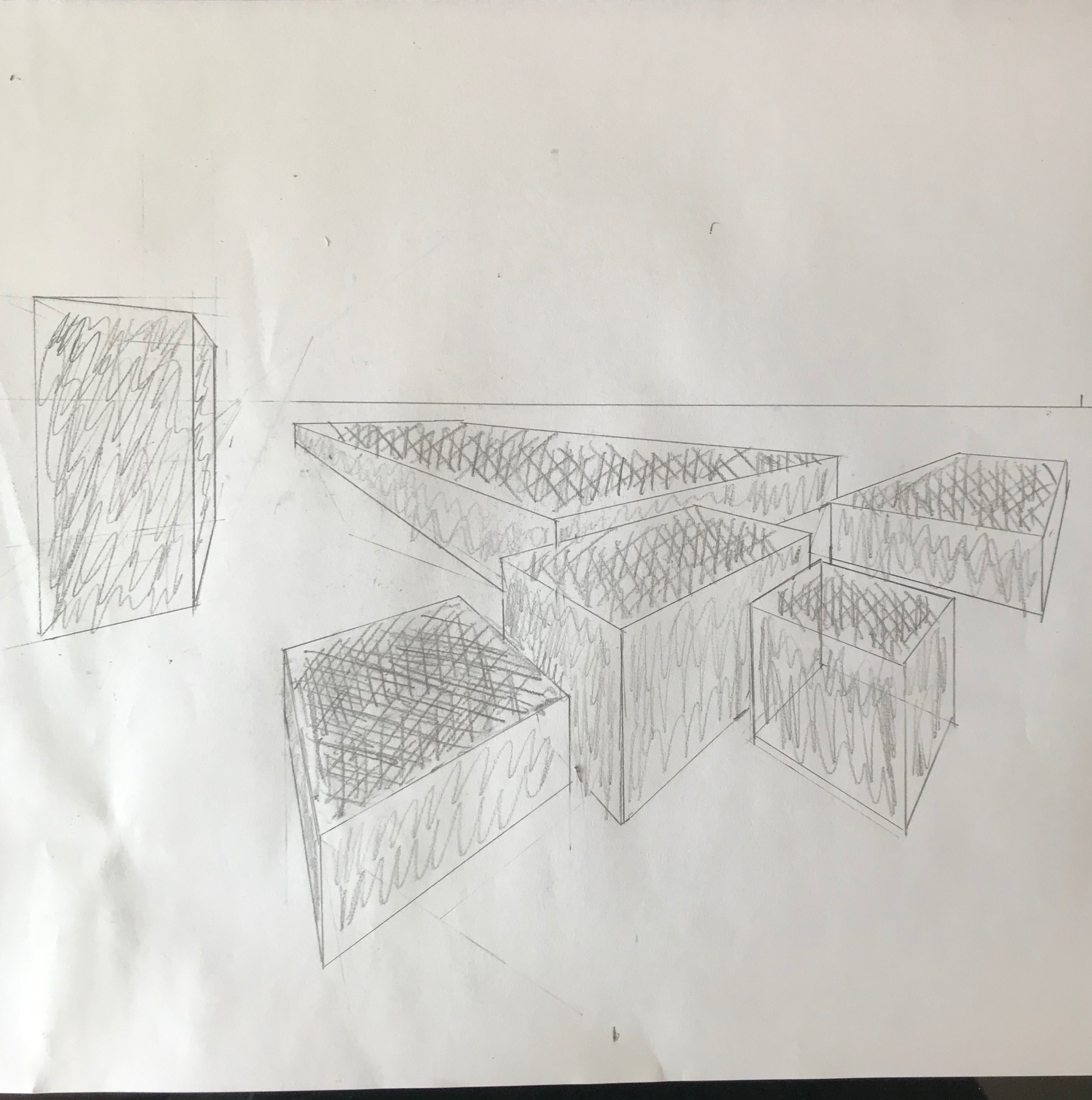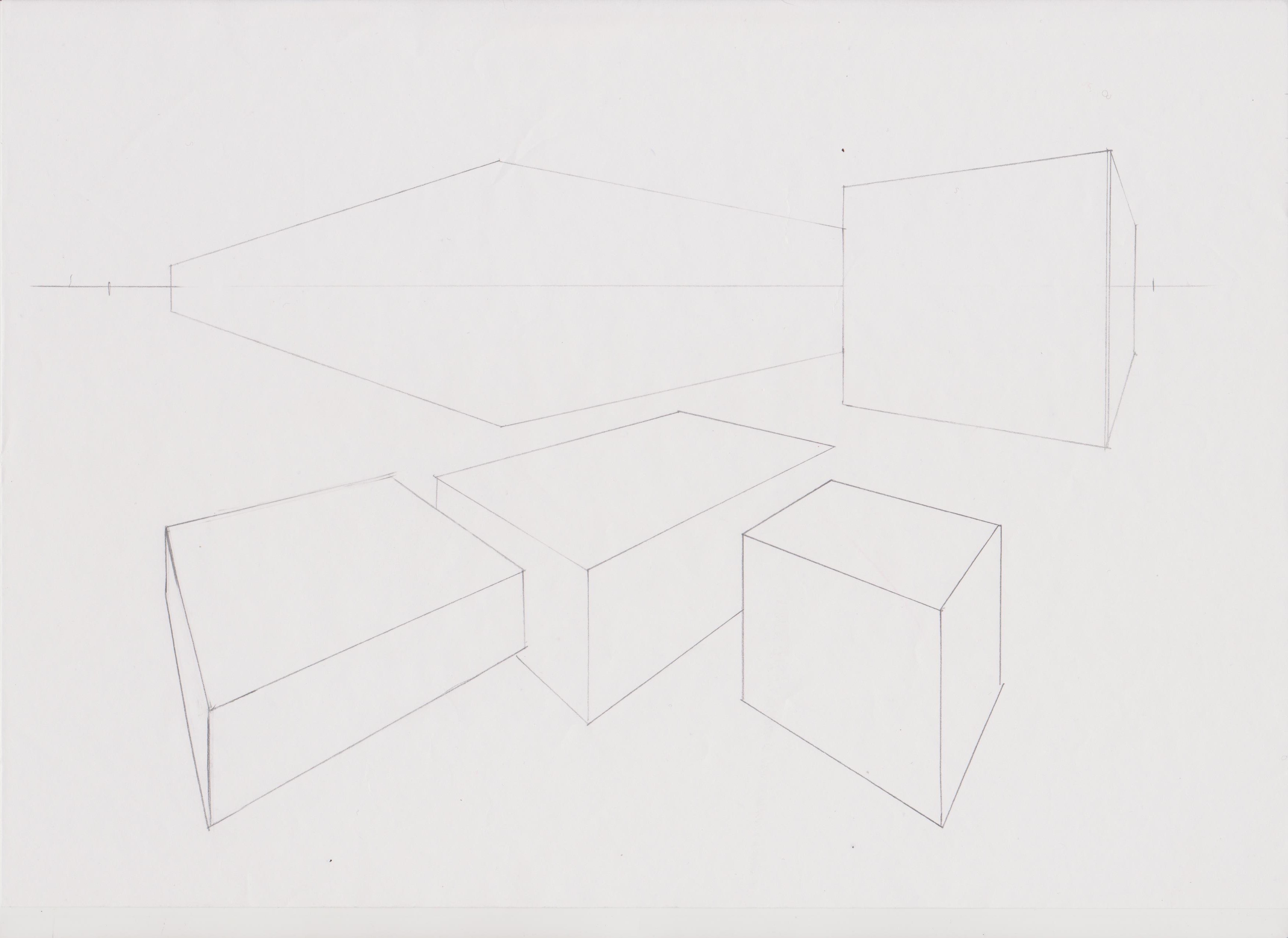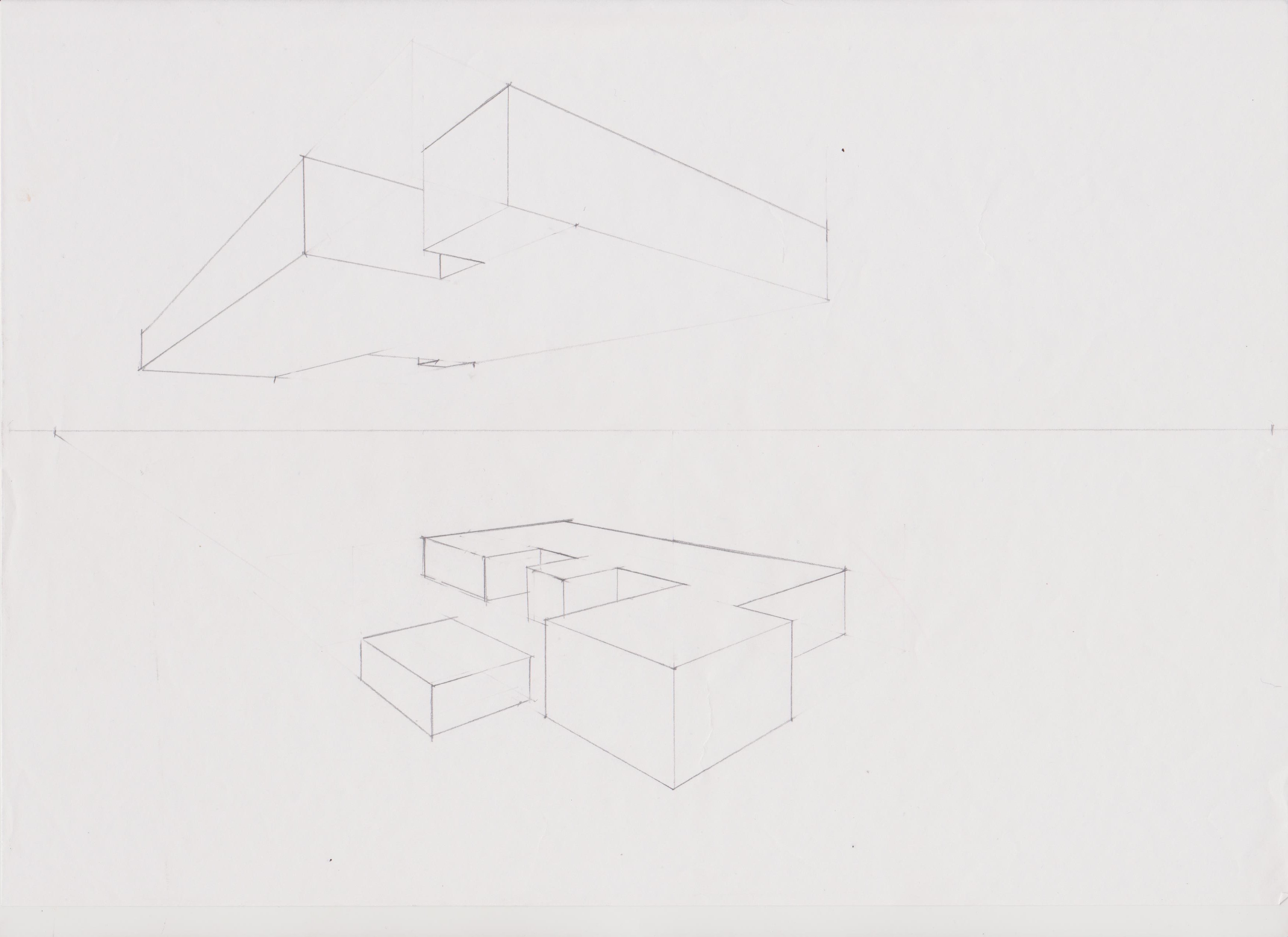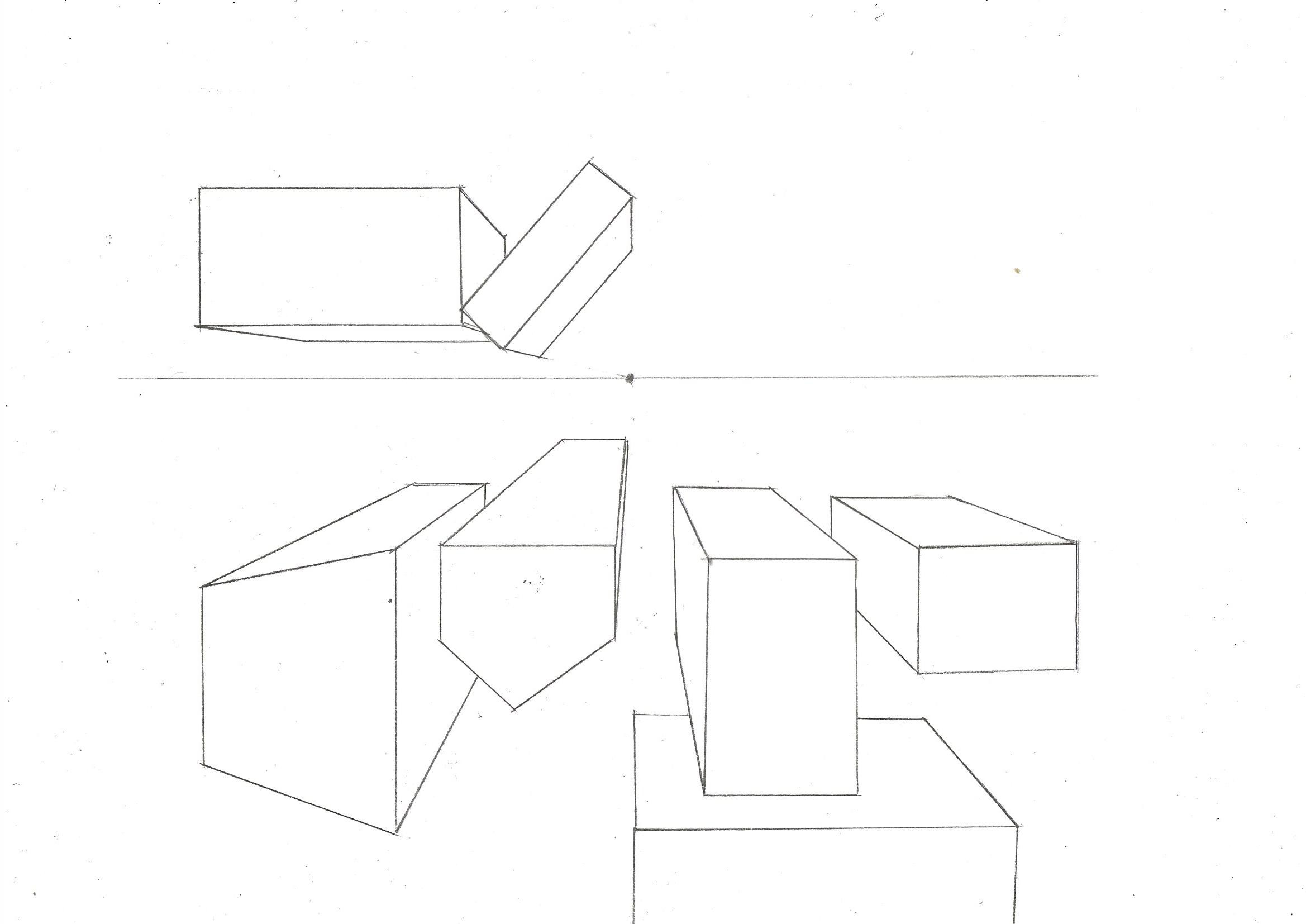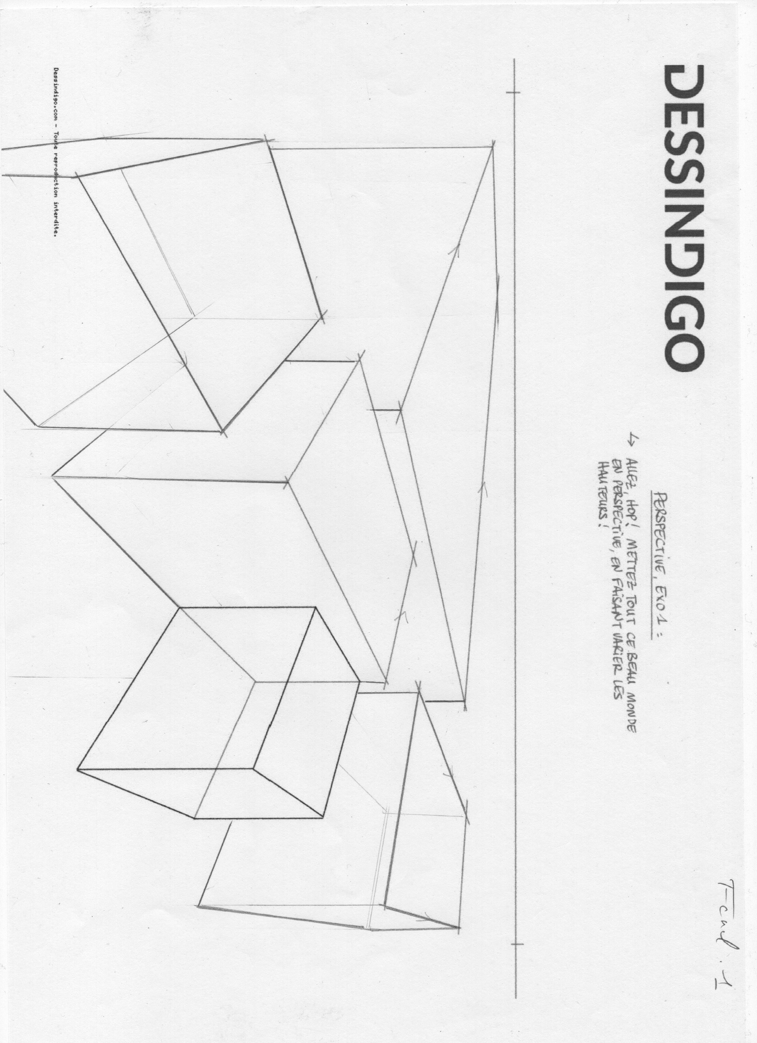 Voici mon premier exercice , je suis parti vers le bas et a la fin j'ai tenté un cube vers le haut ( coté gauche)
