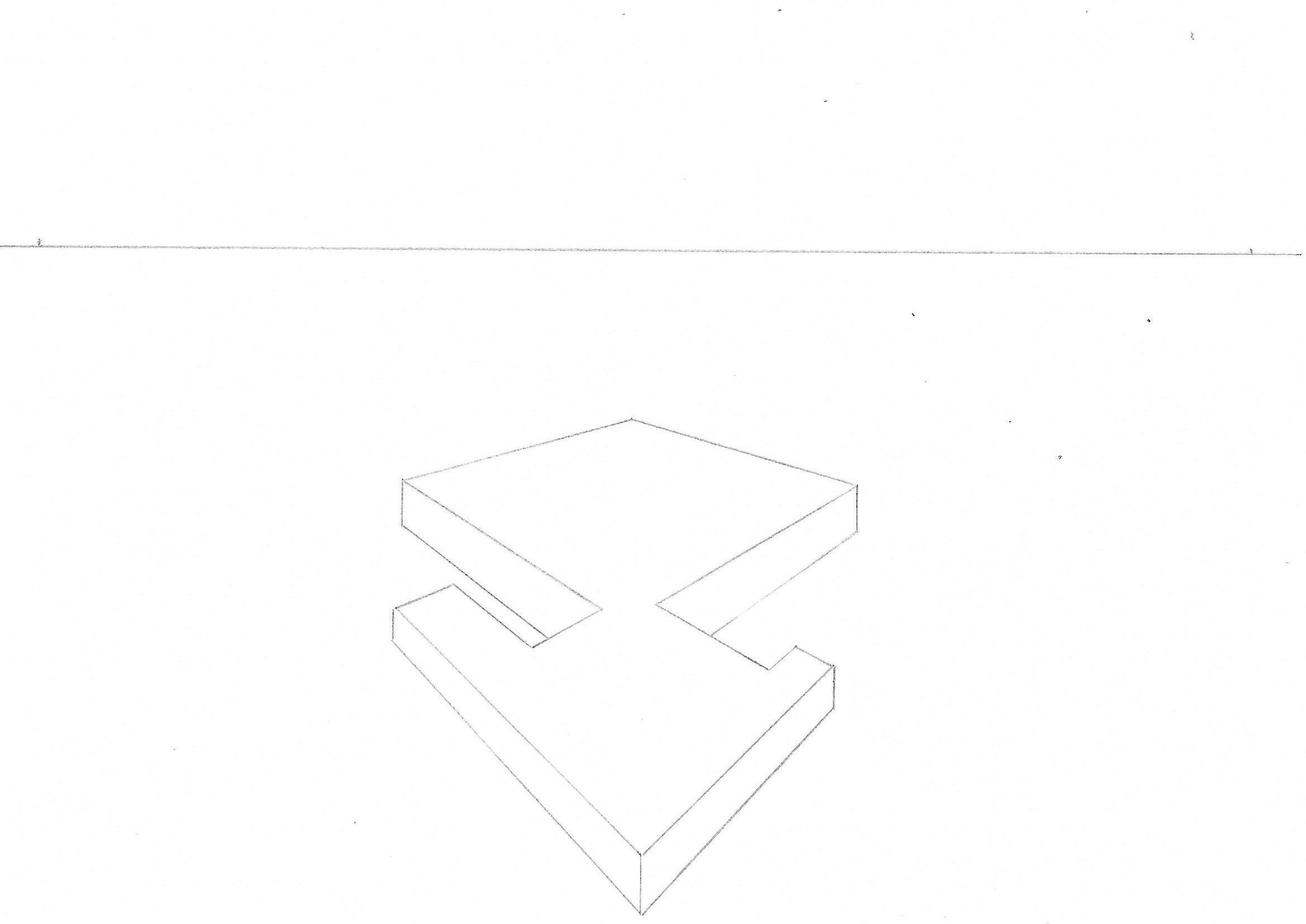 ► Deux points de fuite : Les droites dans la profondeur fuient vers un point de fuite, les droite horizontales (qui ne seront donc plus horizontales) fuient vers le deuxième point de fuite.