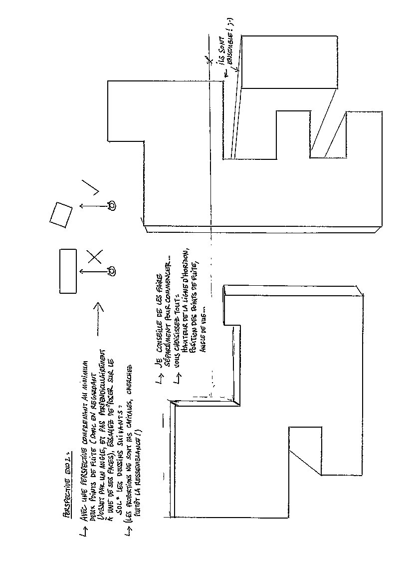 En este exo (nr 2), corté desde el punto de vista de la línea recta del elemento derecho. Luego hice como ejemplo en el video tomando un solo punto de escape para el elemento izquierdo. ¿Es eso lo que se esperaba de nosotros? ¡Gracias por sus respuestas y un buen domingo!