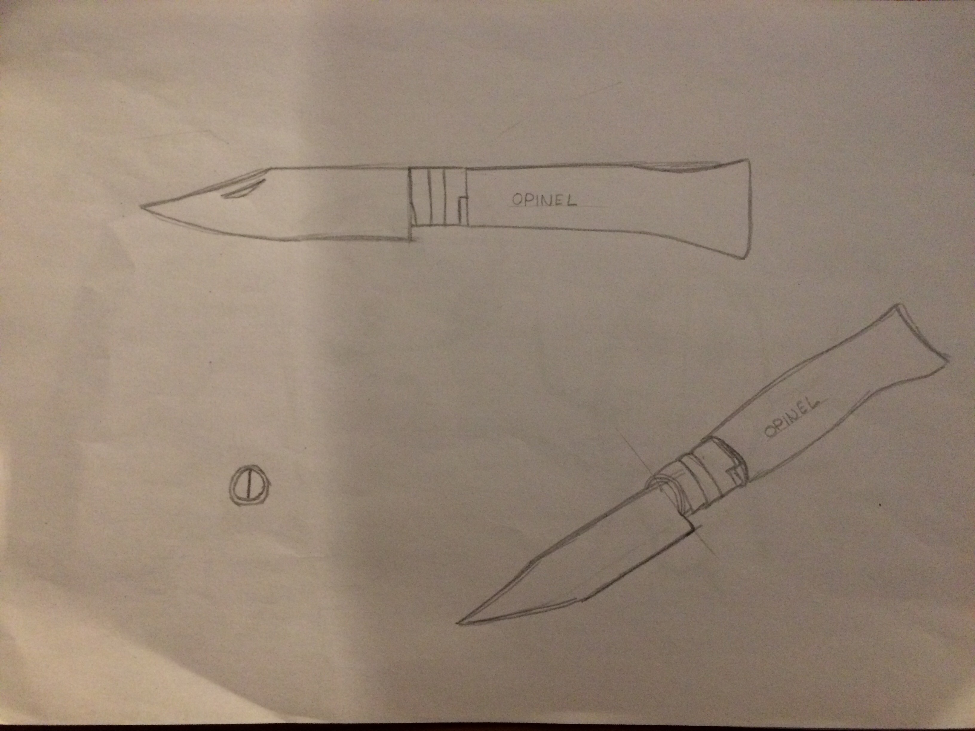 Pour l'opinel, tu vas manquer d'informations cependant, car certains volumes et reliefs ne peuvent pas être montrés sur des vues aussi "simples" que face/profil/etc (ex : fuselage de la poignée, biseau à la fin du manche... Trop subtil !)