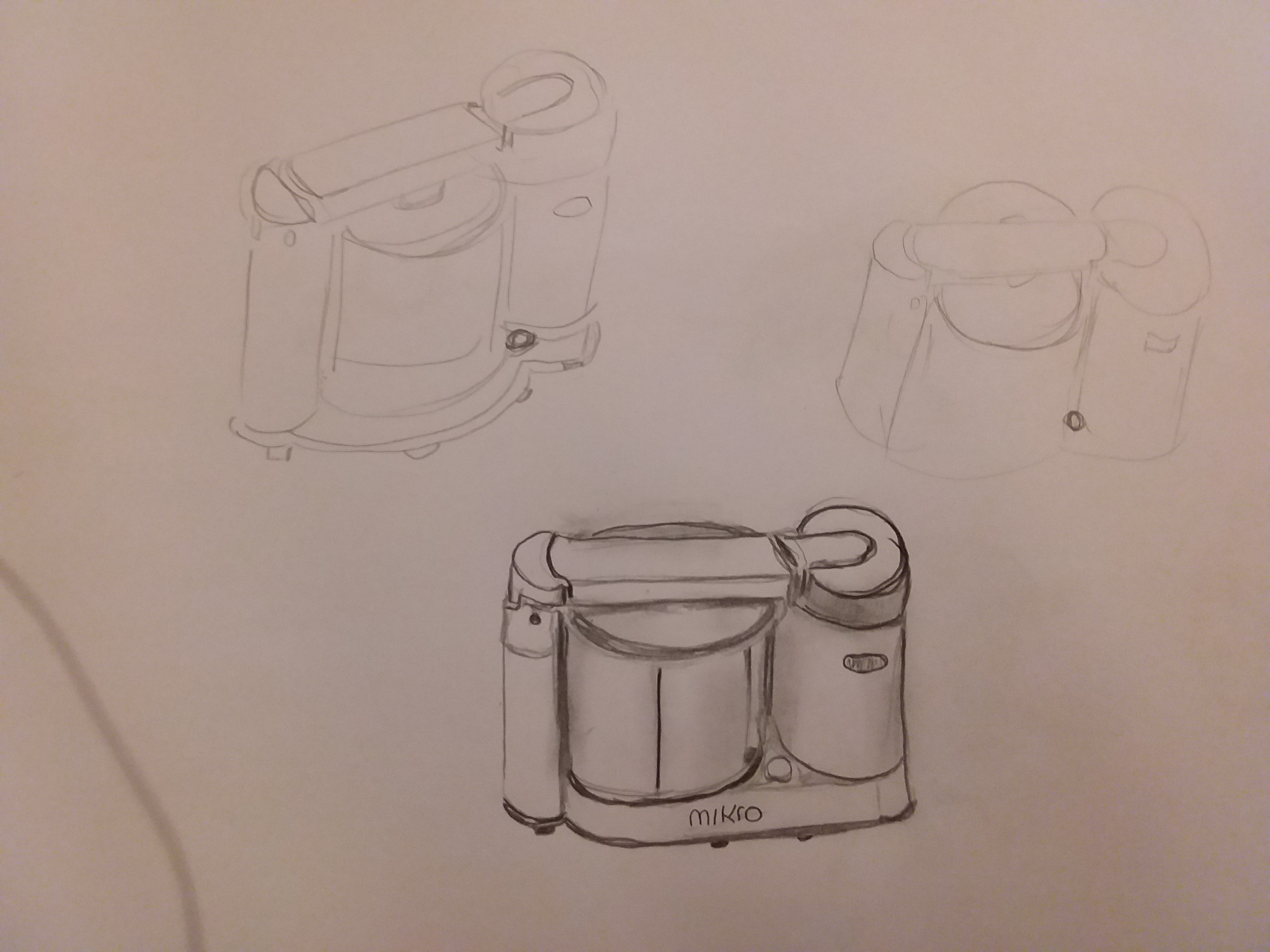 Voilà mon premier essai selon les conseils d'observation de Grégoire. Pas très concluant! Je n'ai aucune idée de comment représenter l'appareil ménager depuis derrière... J'ai lu qu'un correctif avec les dessins de Grégoire allait être proposé. Je n'ai pas eu le courage de parcourir les 99 pages d'échanges pour le trouver. Ce serait possible d'y avoir accès? Merci pour votre retour. Je vais dès que possible m'attaquer à la coccinelle...mais je ne me réjouis pas de tenter la vieille voiture! 😉 Merci de votre retour.
