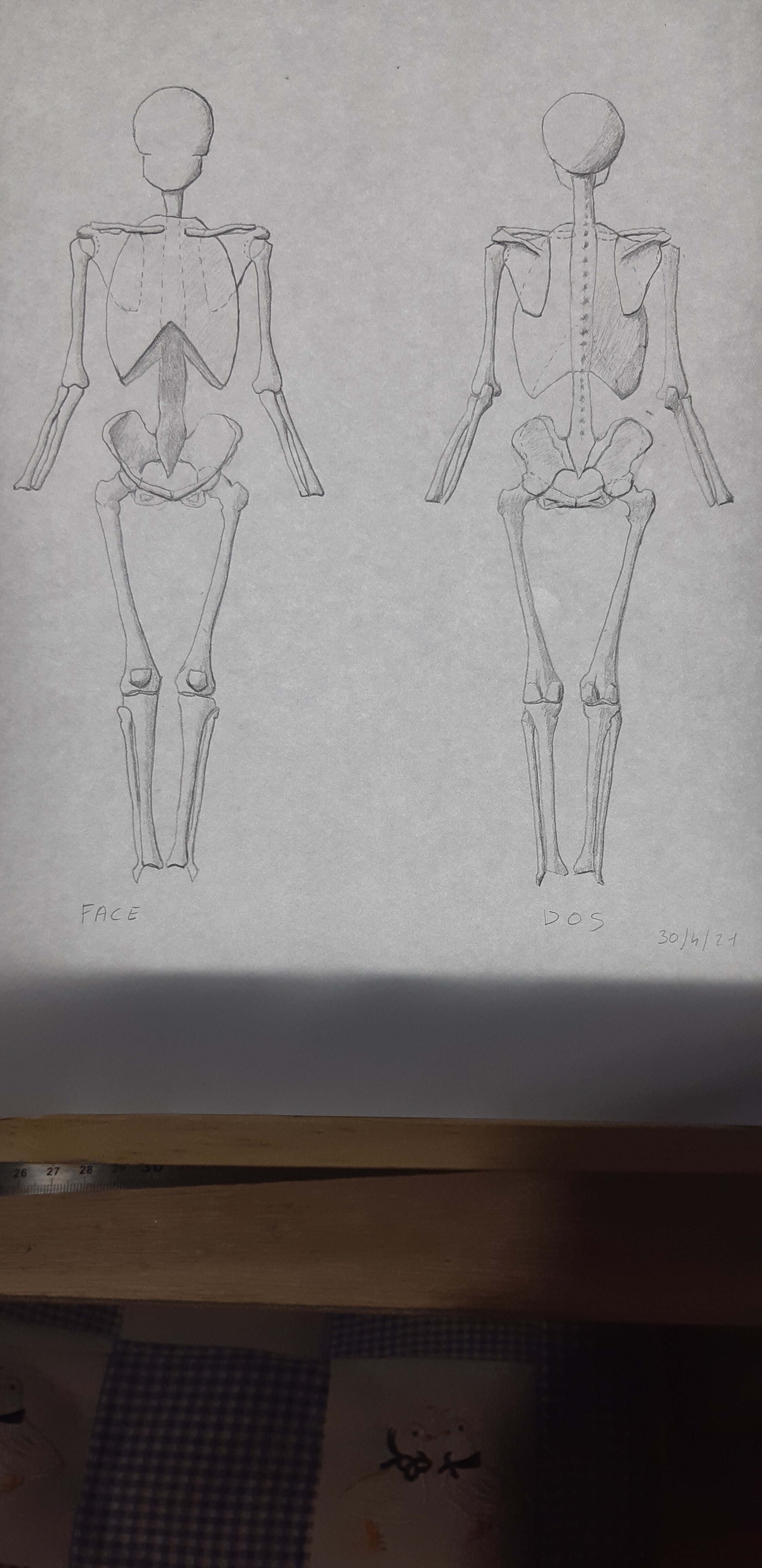 Joli travail, réussi niveau structure et proportion ! Vu qu'il y a une direction assez détaillée, je dirai juste que le sacrum et coccyx descendent jusqu'à encore un peu plus bas. Je valide en tous cas :)