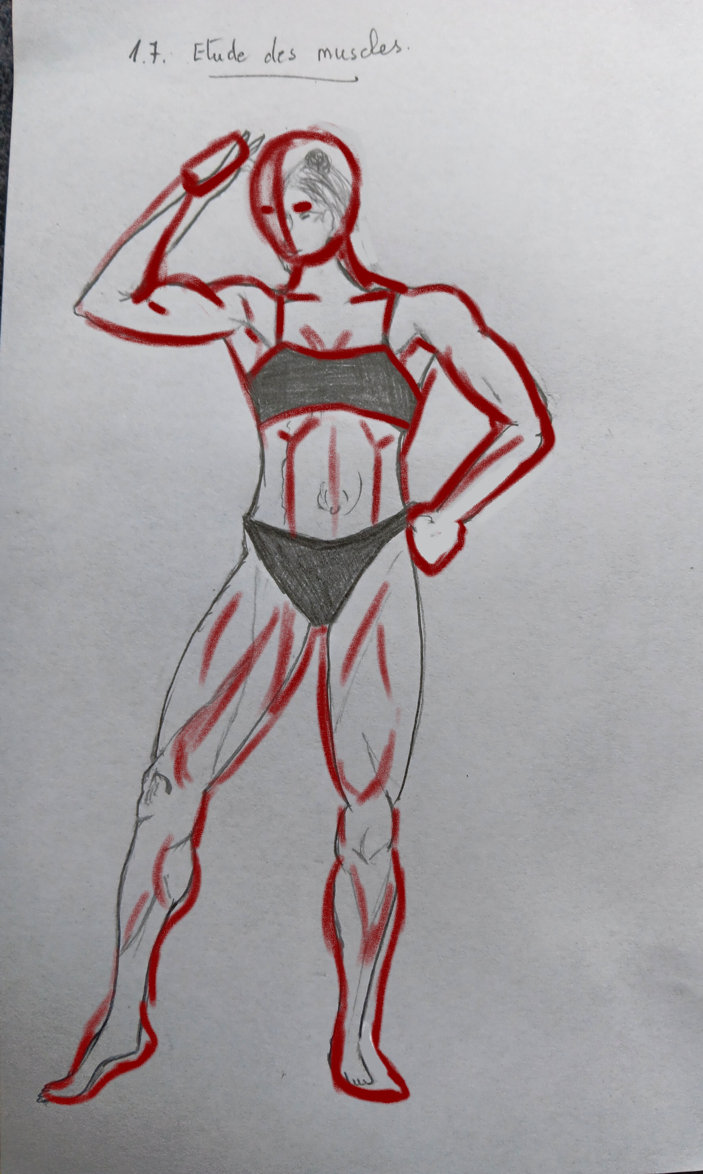Travail préliminaire sur un "écorché", avant de passer aux muscles :-).