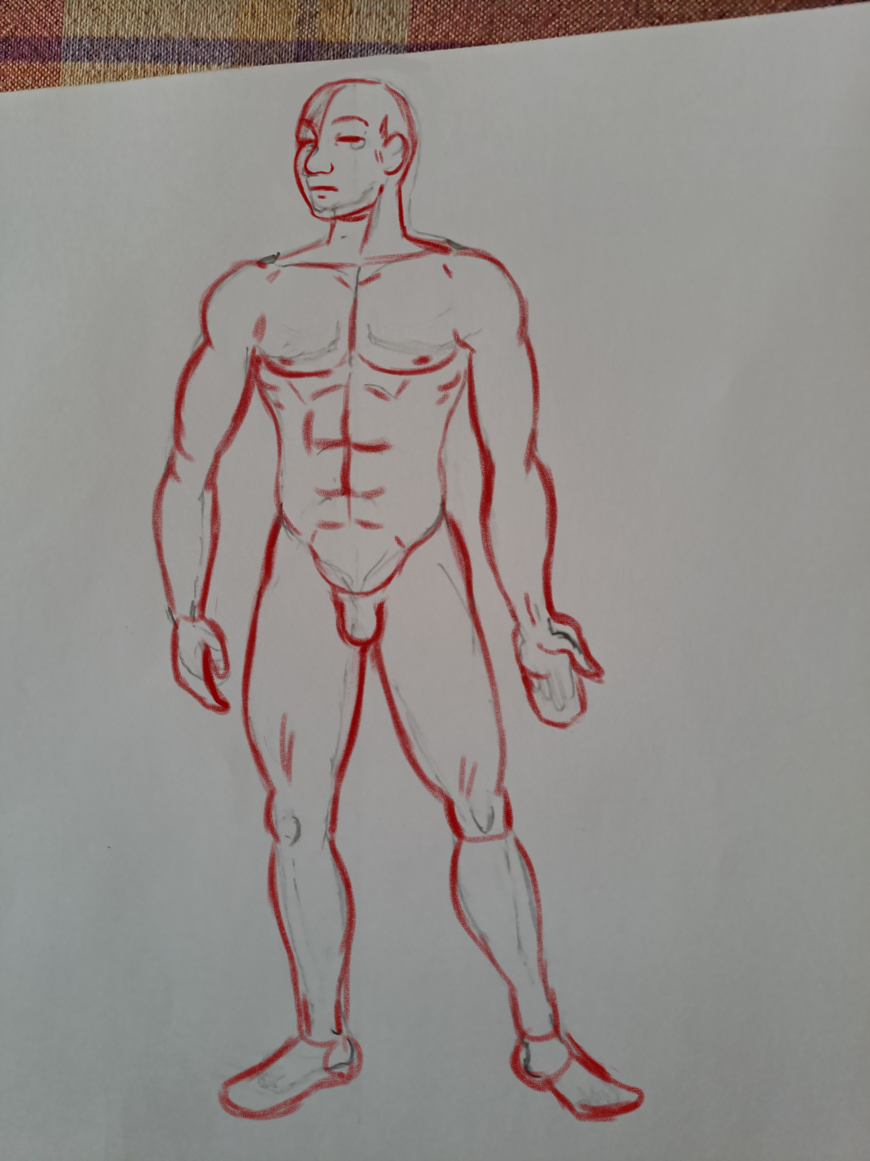 Bonsoir HYPOCAMPE. Des petits soucis de proportions (notamment la taille de la tête, des mains et des pieds), mais ça reste du bon travail! Essaie de détailler un peu plus la découpe des muscles pour bien comprendre comment ils se placent.