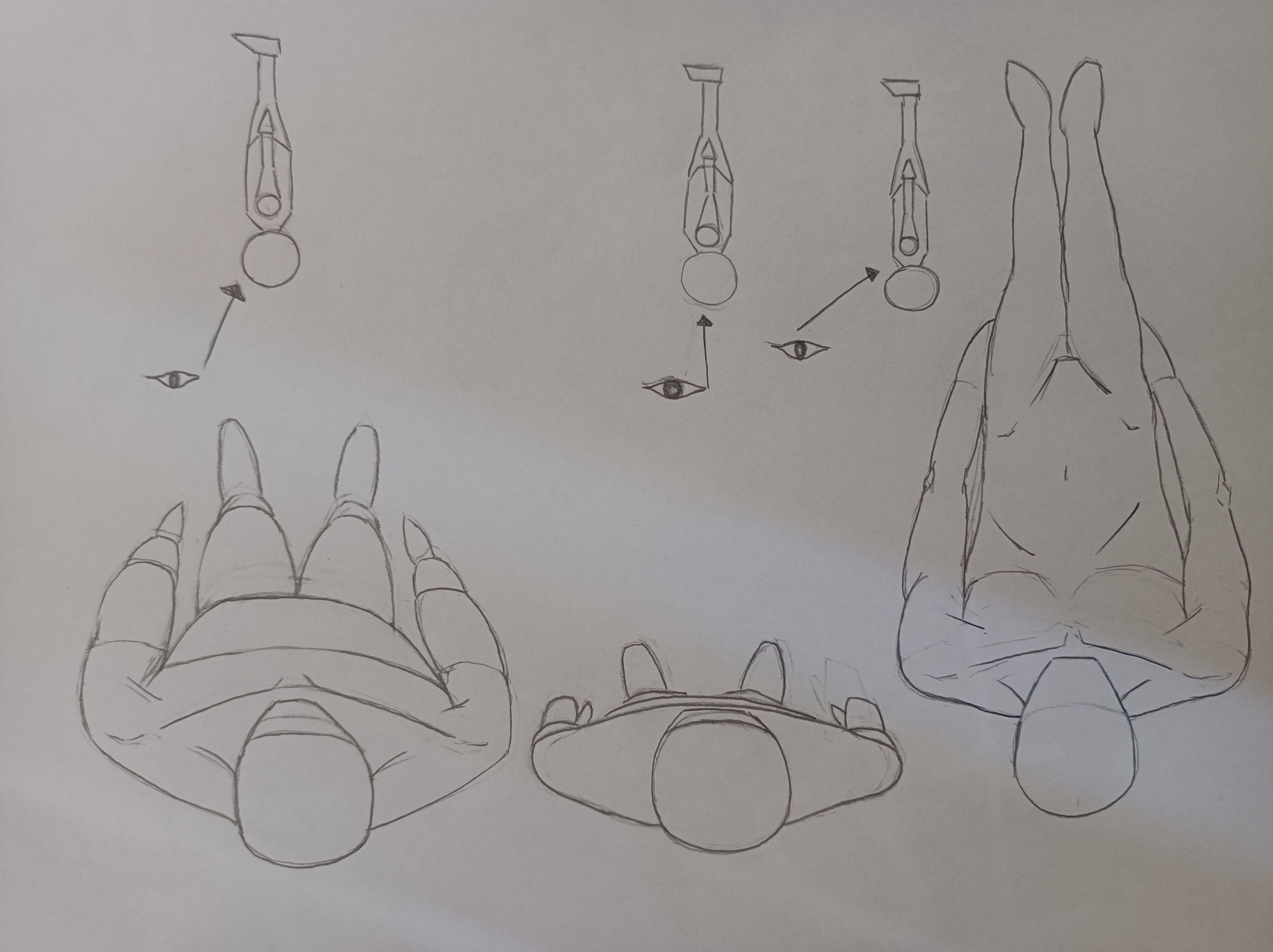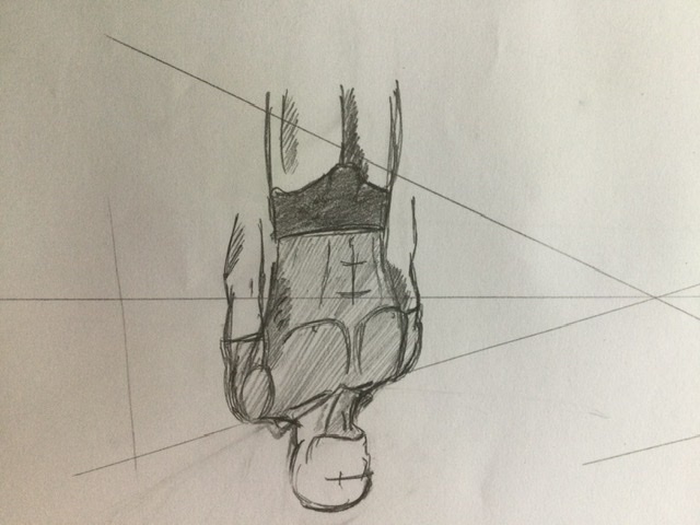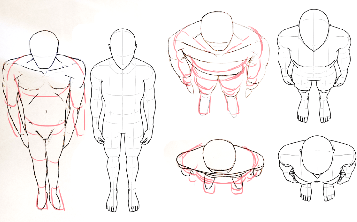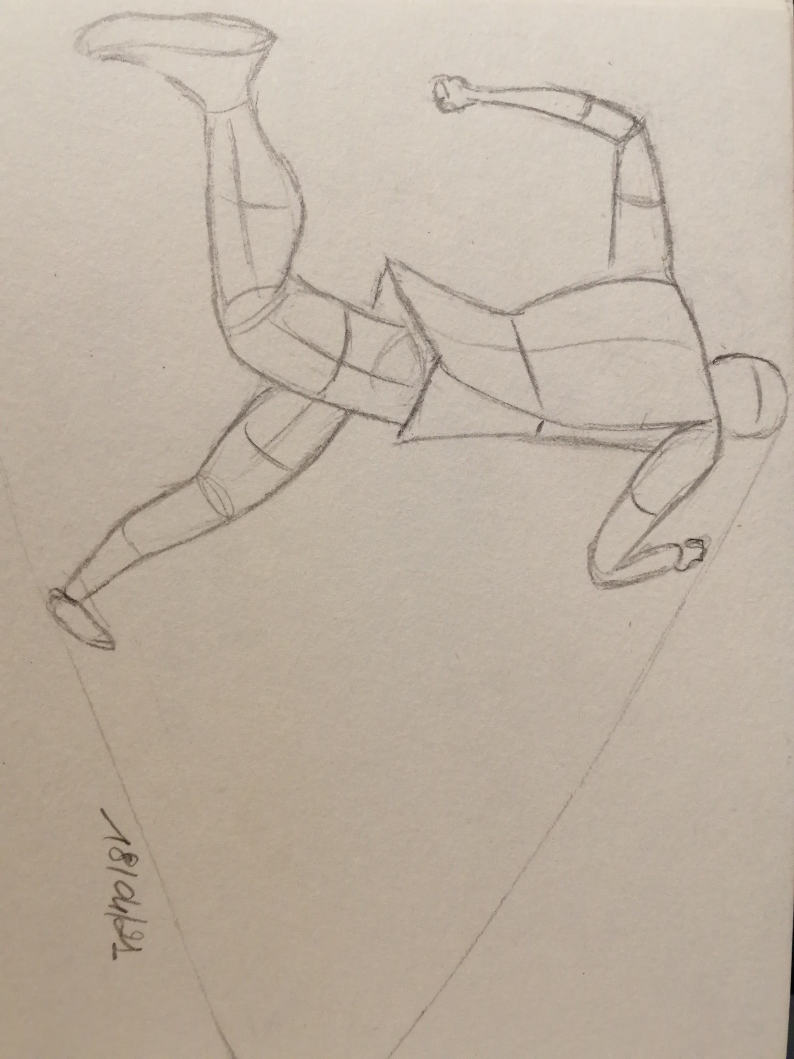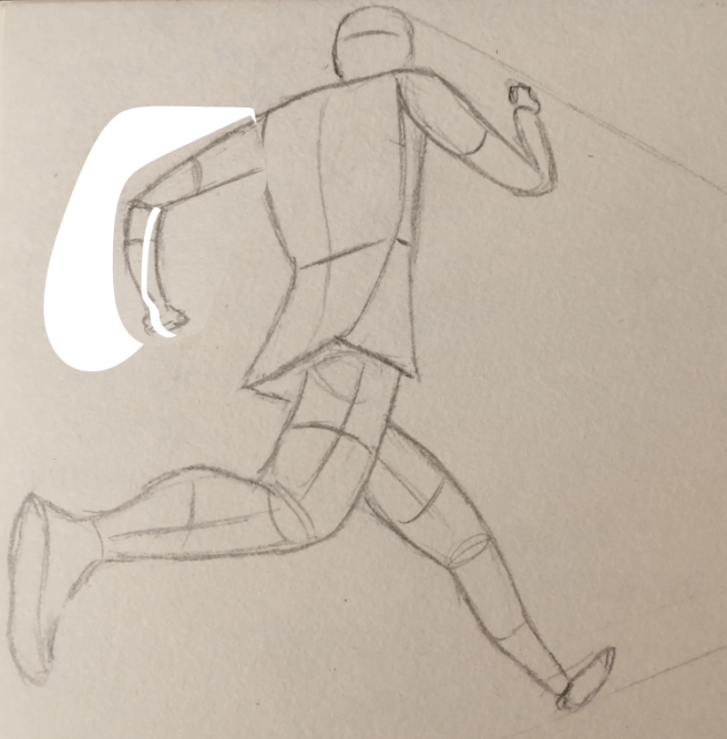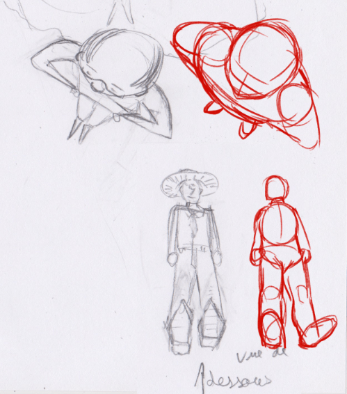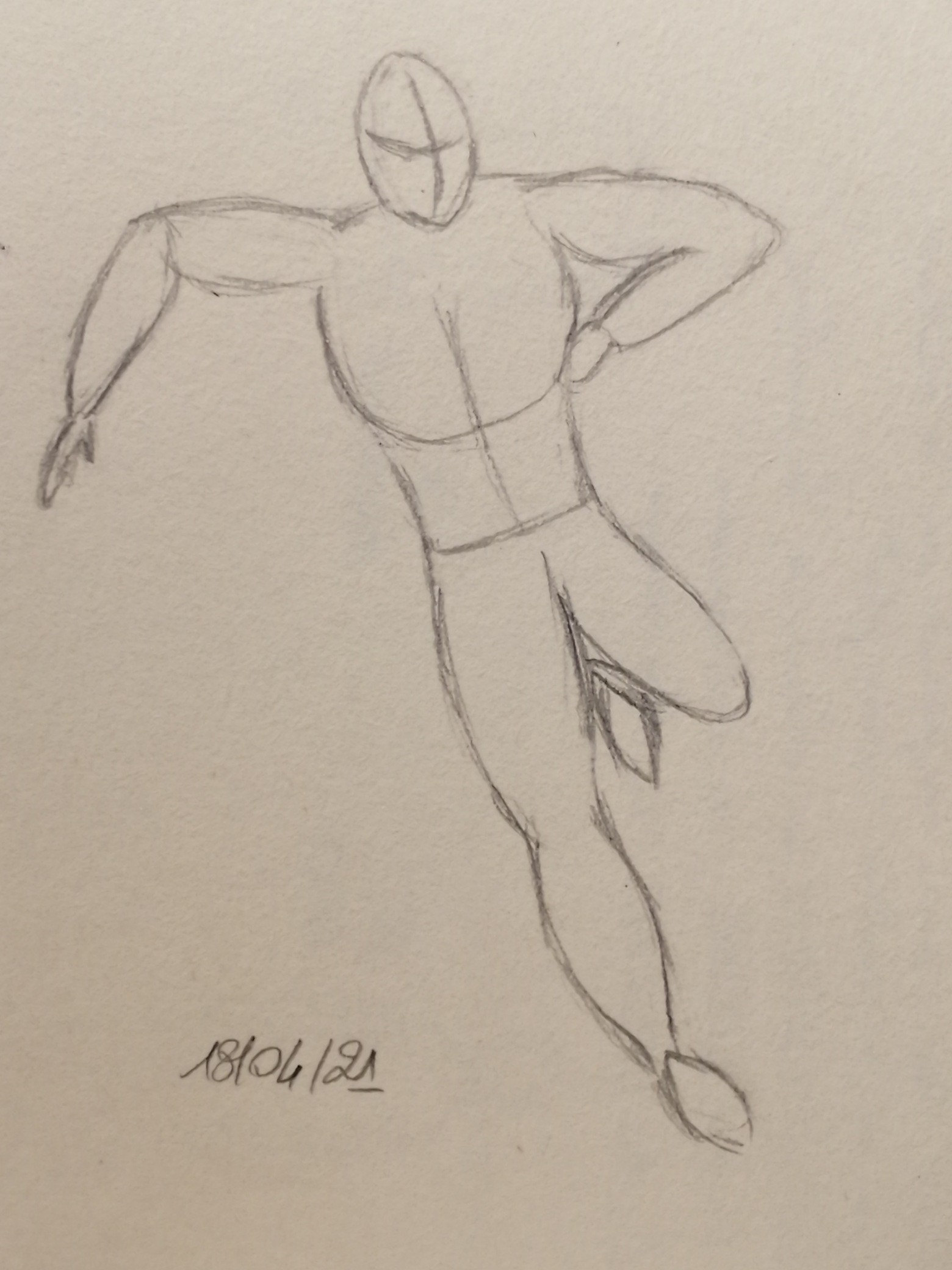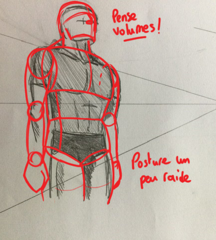 Les formes sont en fait synthétisées, les détails des muscles et les précisions des lignes du corps viendront après. Là, on cherche à construire et poser notre personnage de façon juste dans une perspective ou un angle particulier.