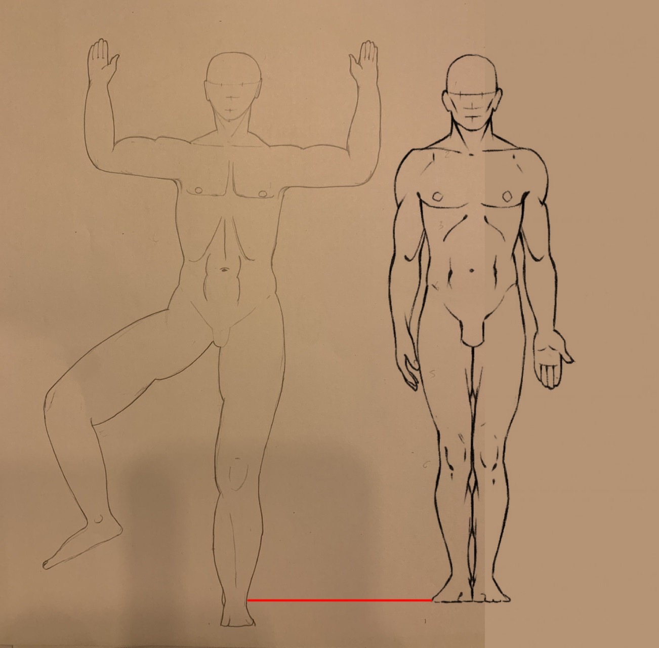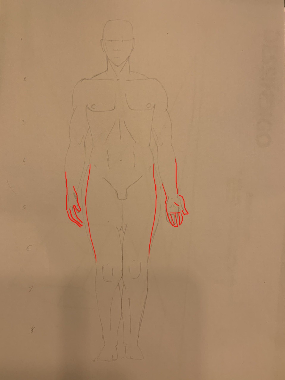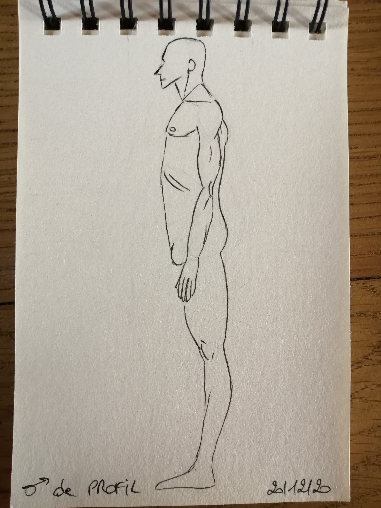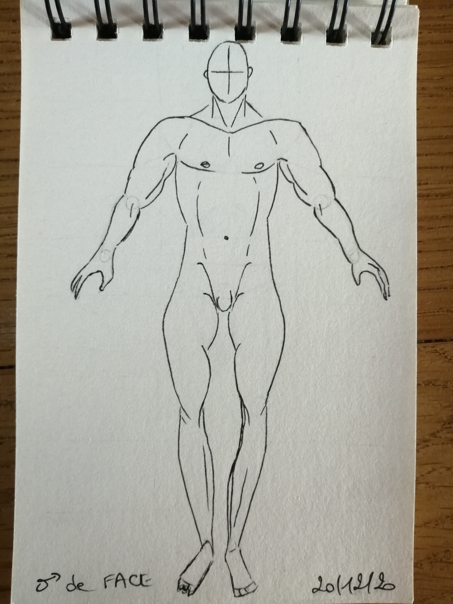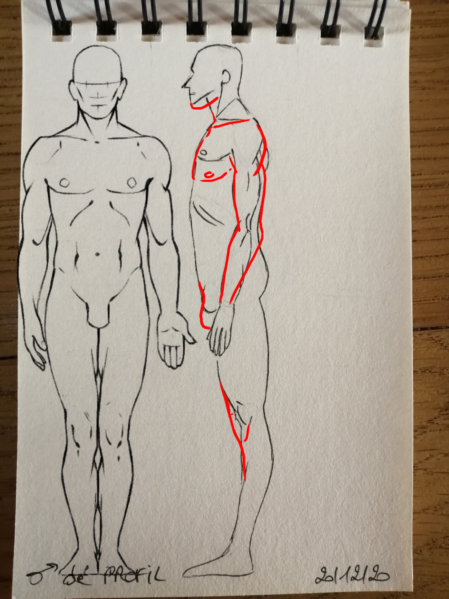 Pour le deuxième dessin, les mains qui sont aussi un peu trop petites, sinon c'est bien. Il a beaucoup de hanches, ce qui lui donne une morphologie un peu féminine.