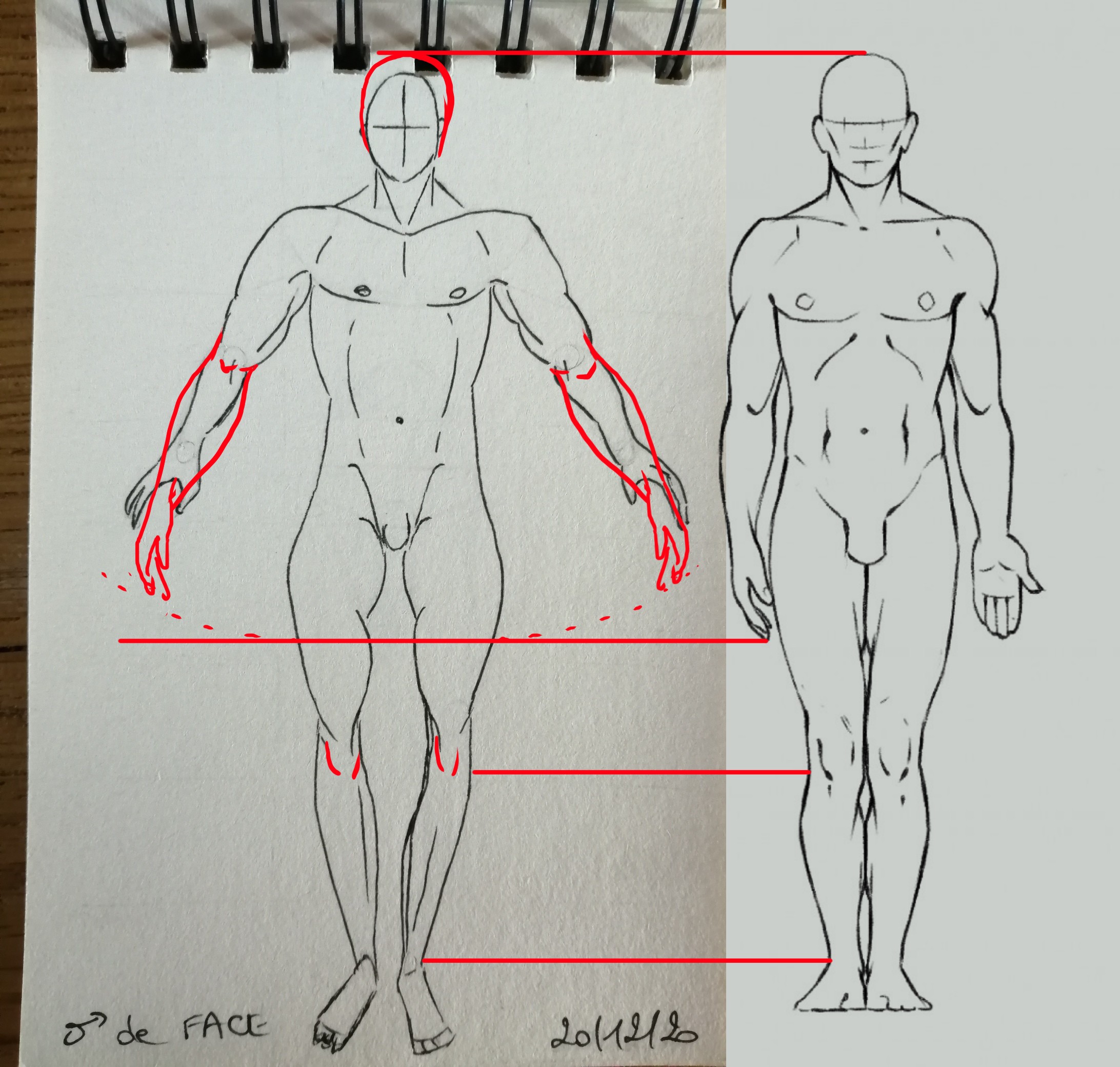 C'est du bon travail :) Niveau proportion c'est pas mal, c'est au niveau des formes du corps surtout qu'il peut y avoir un peu de travail, mais ça sera vu au cours sur les muscles :)
