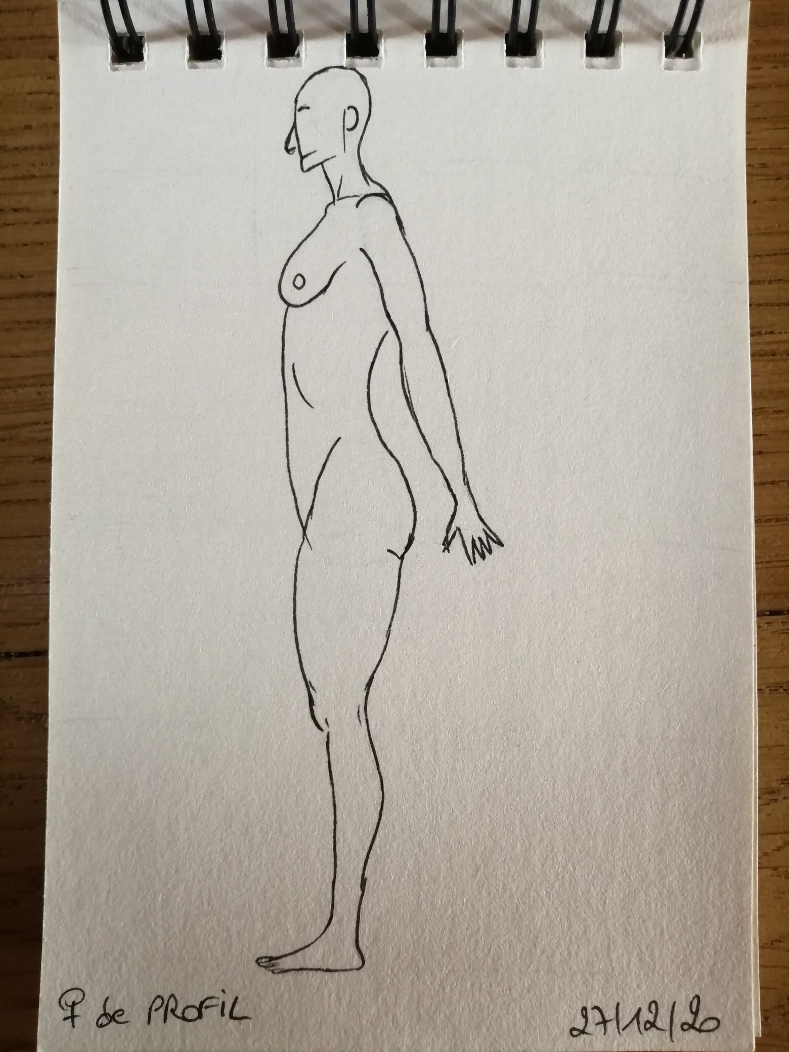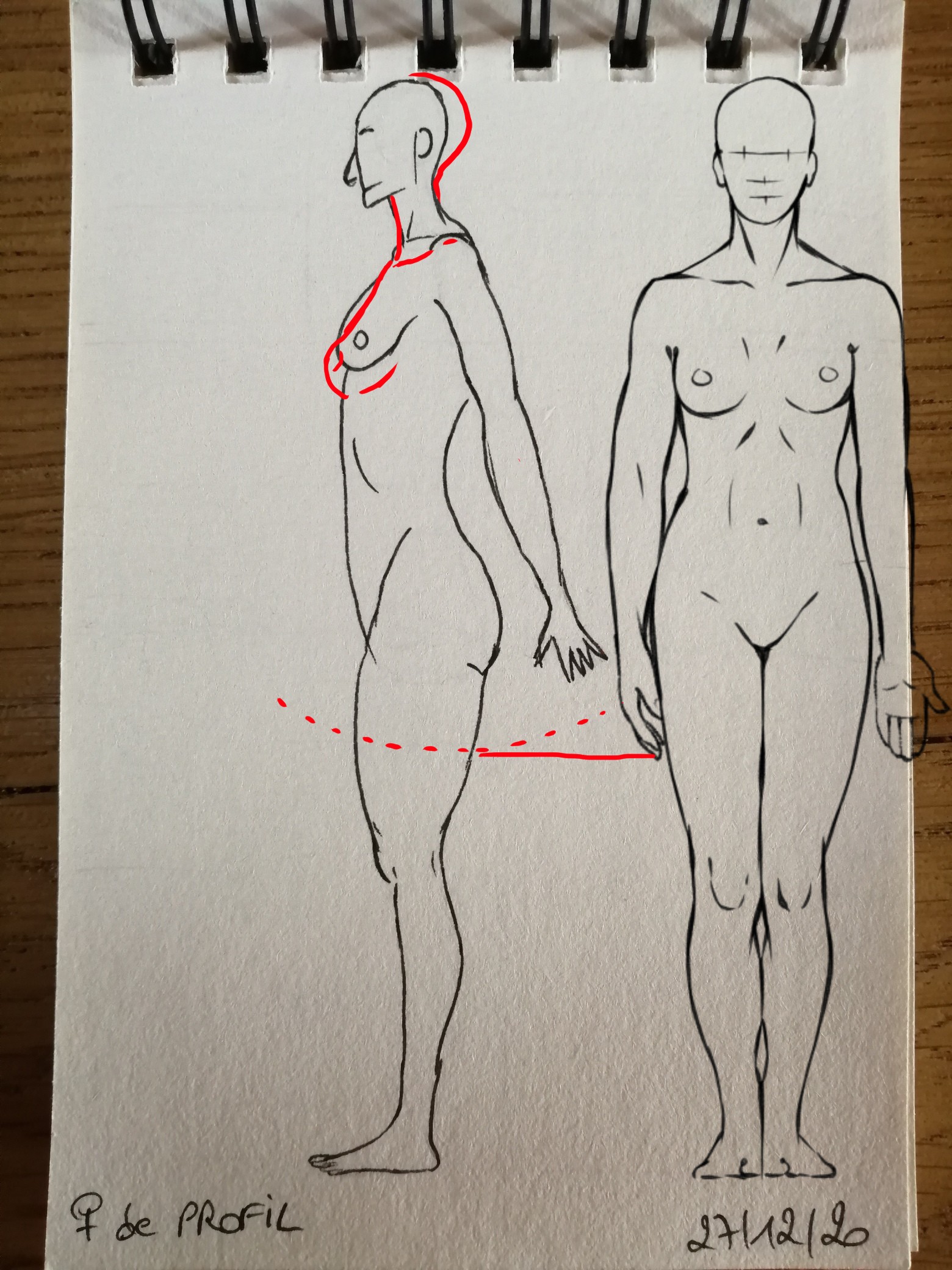 Ce profil est bien réussi, et les formes sont plutôt bien faites :) Les bras sont toujours un peu courts mais ça se sent moins que sur les autres dessins où j'ai pu le remarquer. La poitrine est un peu trop haute mais c'est léger.