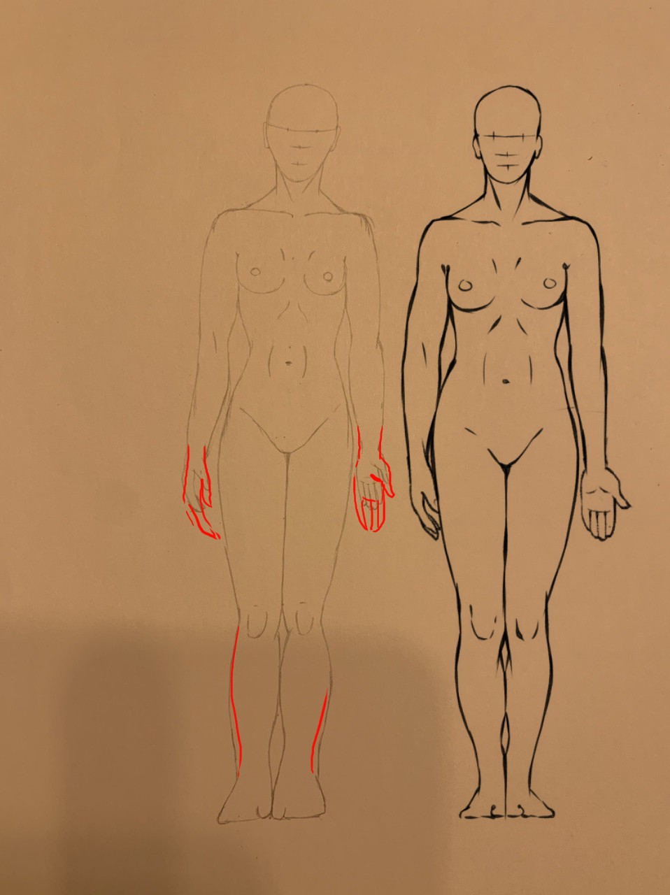 Para el segundo dibujo, las manos que también son demasiado pequeñas, de lo contrario es bueno. Tiene muchas caderas, lo que le da una morfología algo femenina.