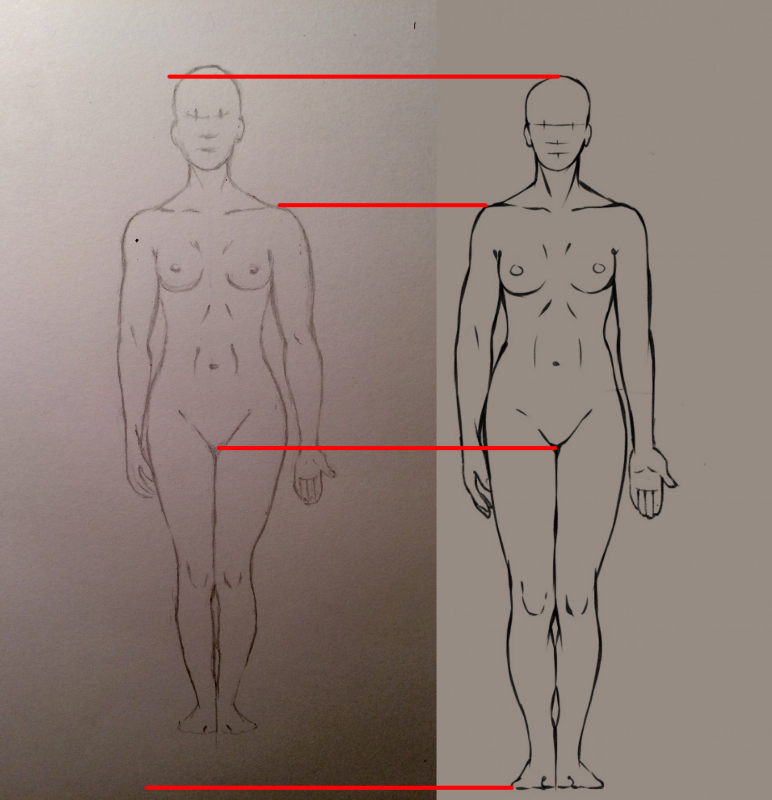 Bien hecho ! Para el hombre está bien :) Para la mujer, todo está bien excepto las piernas que son demasiado cortas (y la cabeza un cabello alto), muestro en la imagen;)